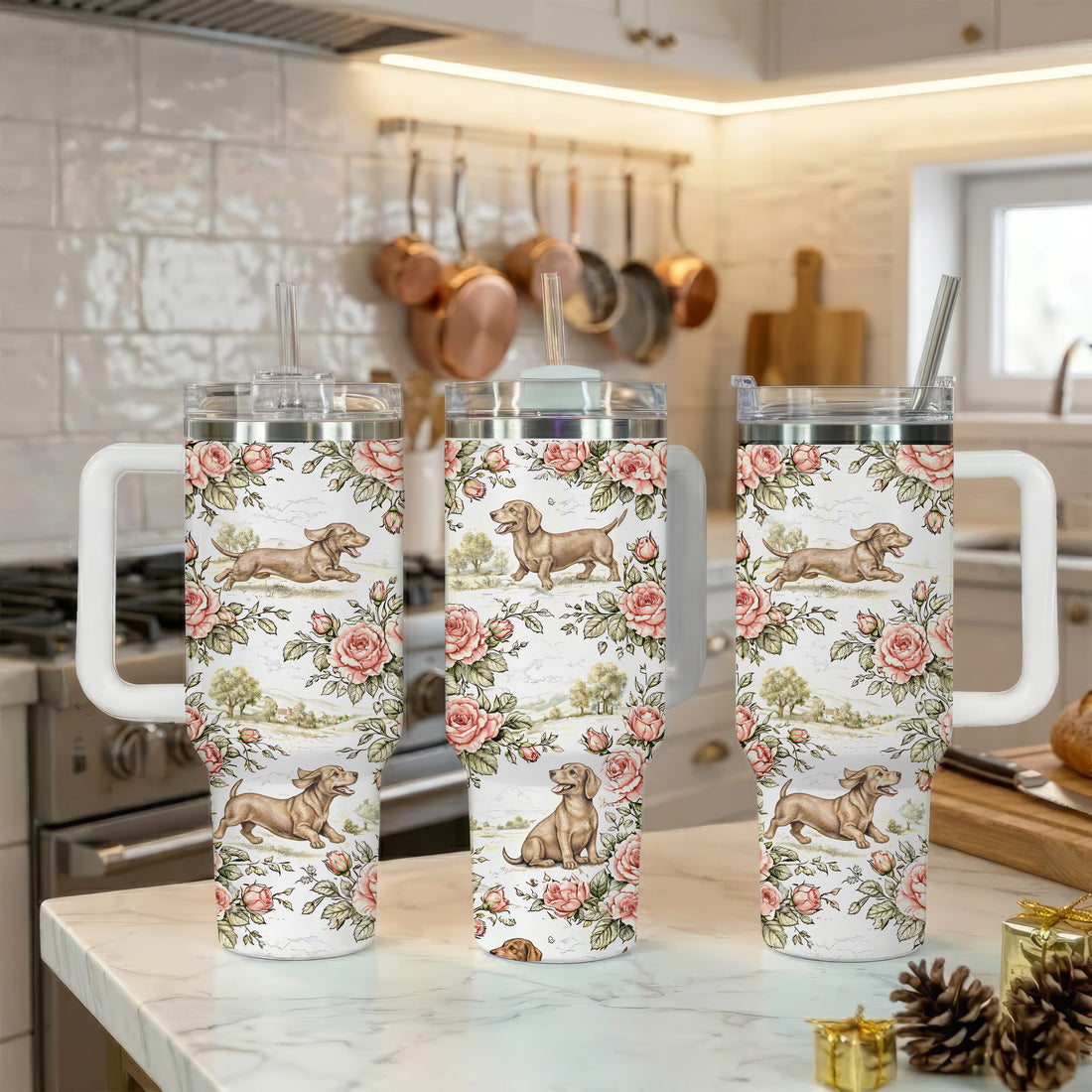 Vintage Dachshund Toile Pattern 40oz Insulated Tumbler