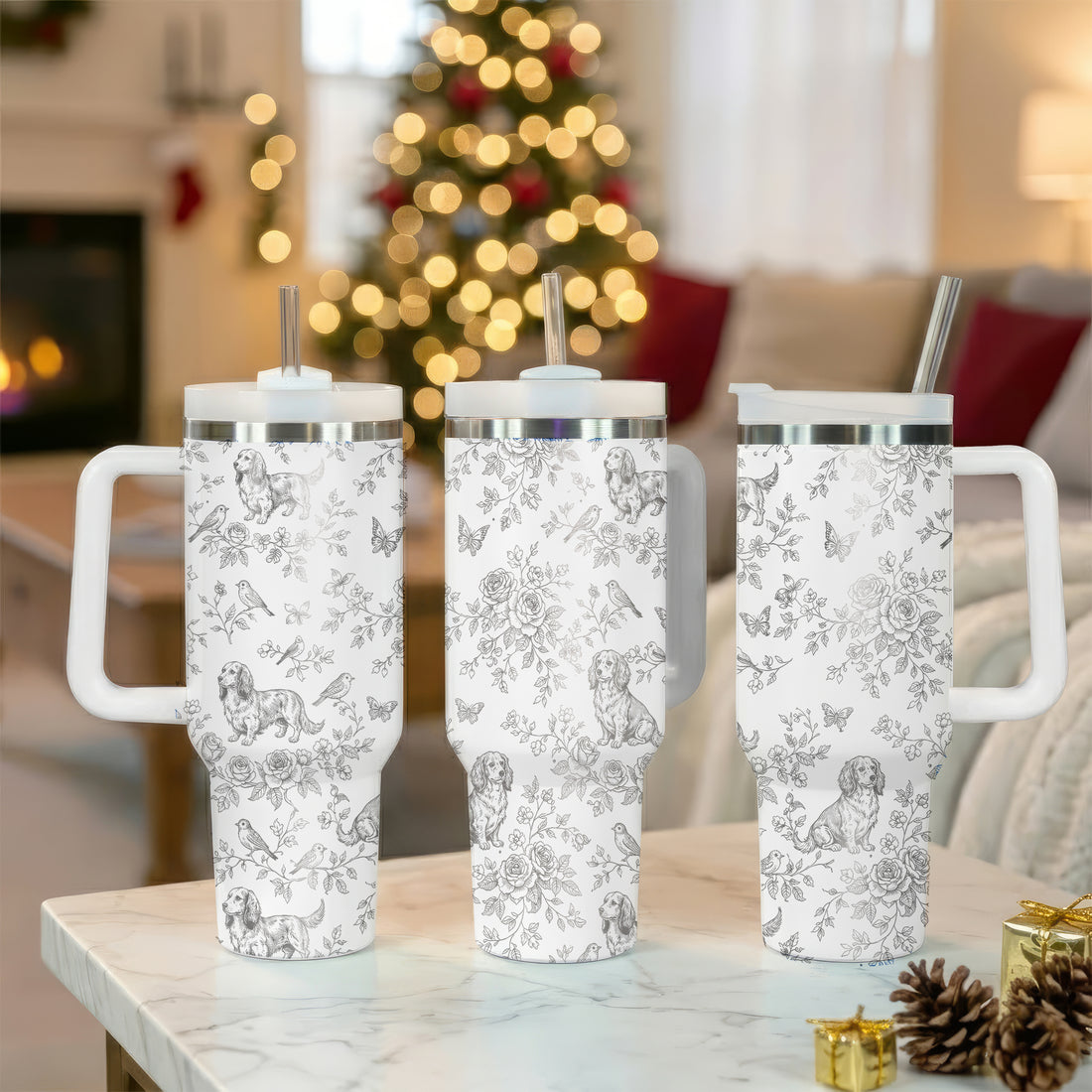 Dachshund Toile de Jouy 40oz Insulated Tumbler Dog Lover Gift