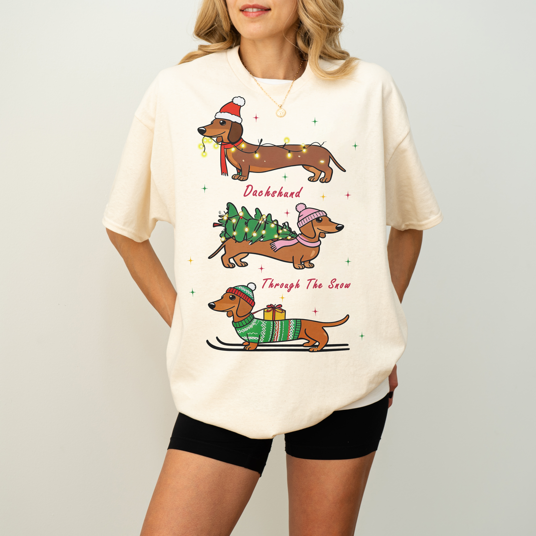 Dachshund Through the Snow Christmas Shirt – Cute Wiener Dog Holiday Tee for Dog Lovers