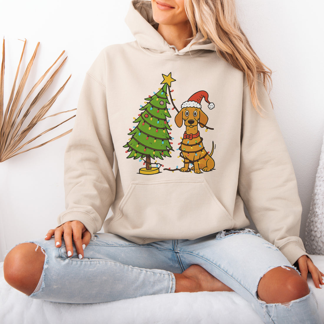 Sausage Dog Christmas Lights Shirt Dachshund Decorating Tree Hoodie