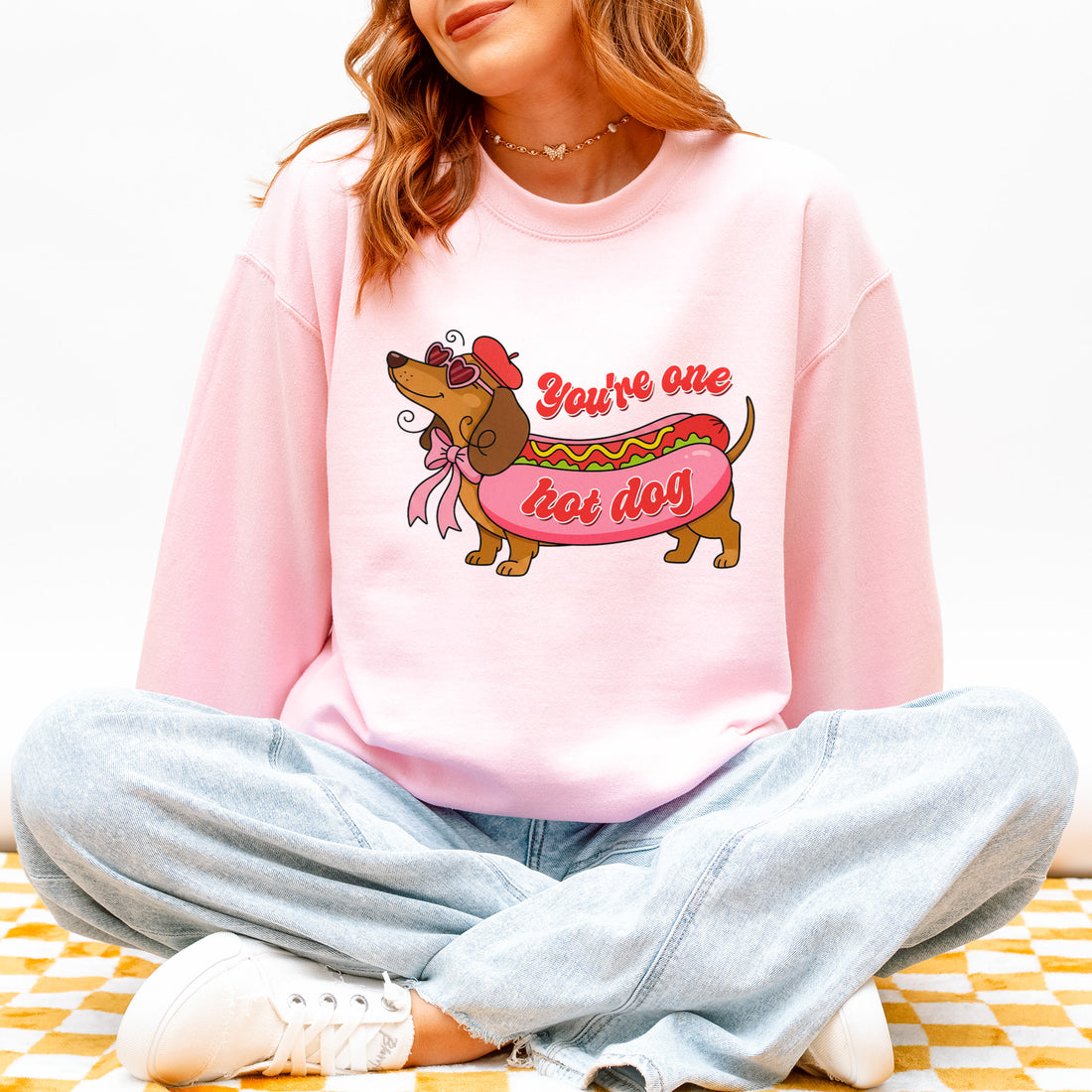 You Are One Hot Dog Dachshund Valentine Sweatshirt – Funny Wiener Dog Love Pullover for Dog Lovers