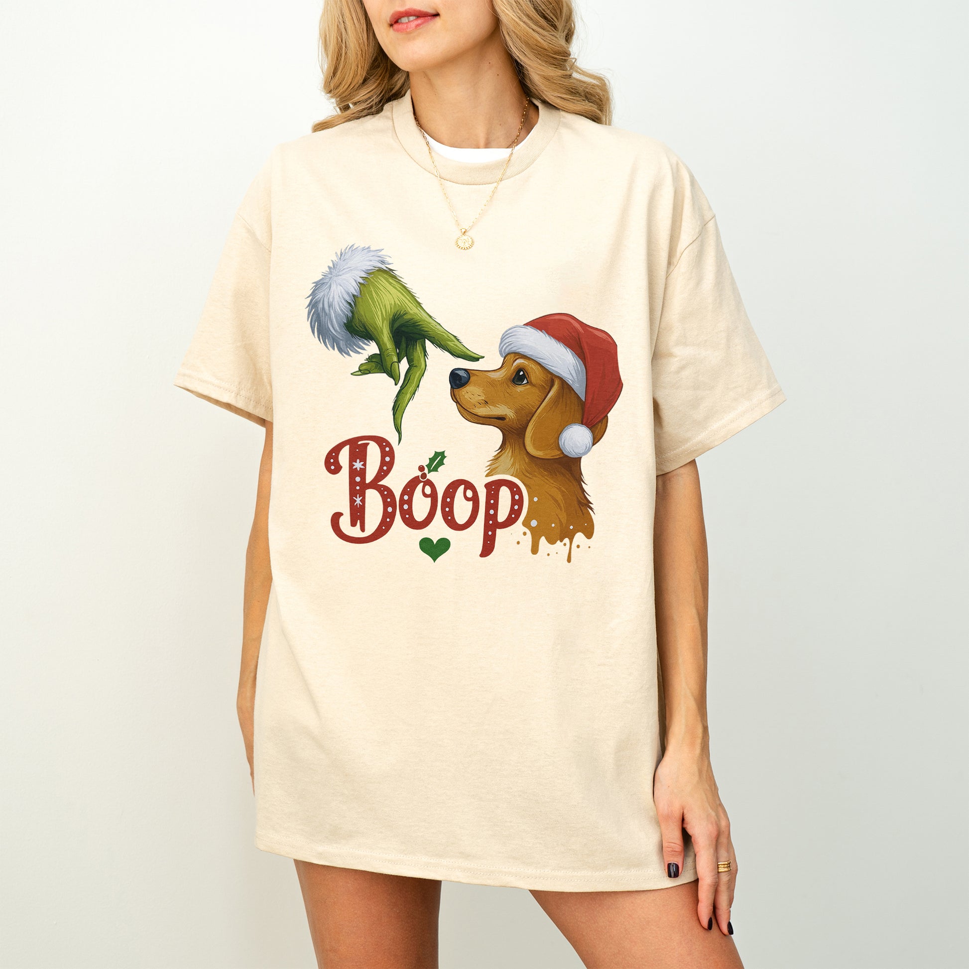 Boop Dachshund Shirt – Funny Wiener Dog Tee with Green Mischief Hand, Cute Dog Lover Gift