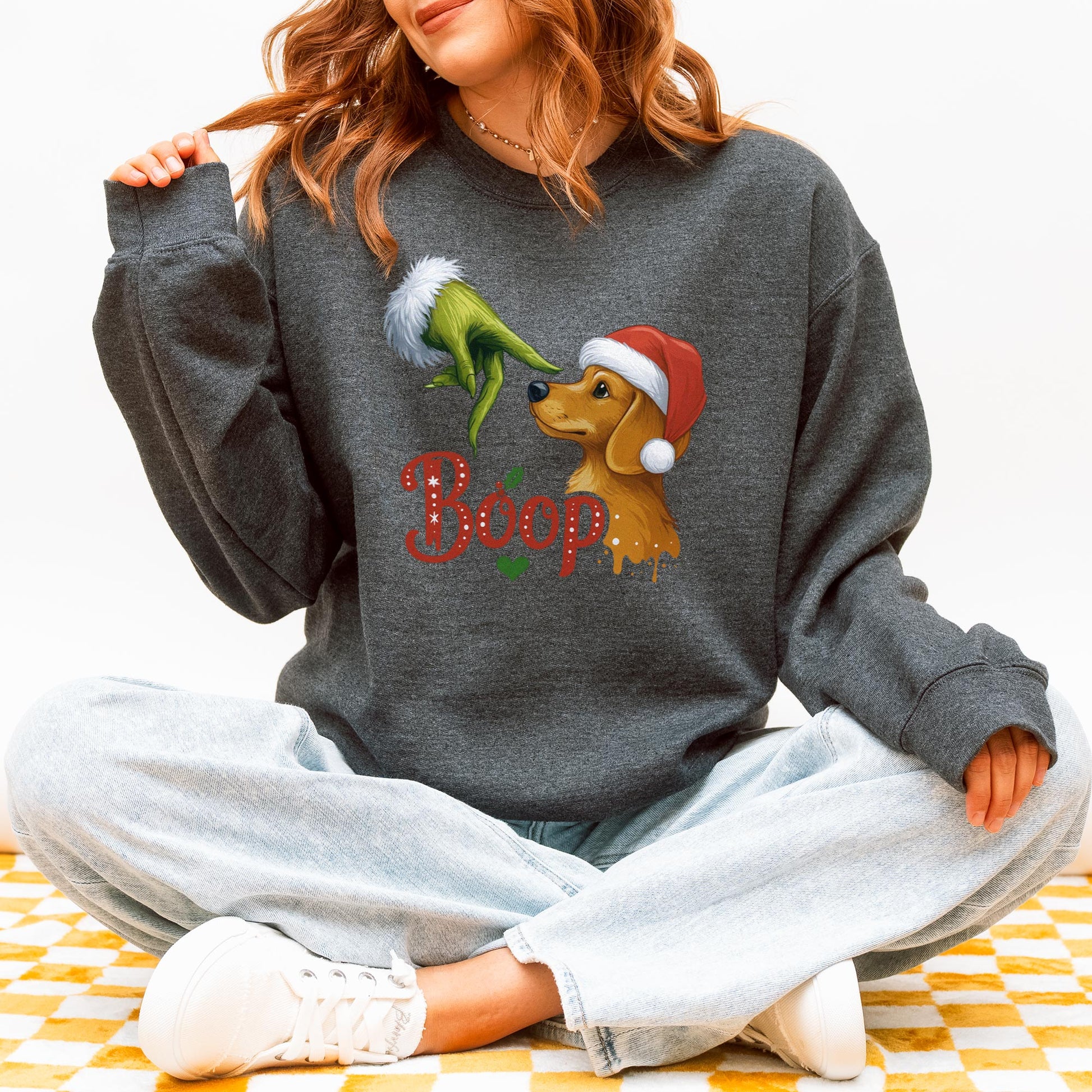 Boop Dachshund Sweatshirt – Funny Wiener Dog Pullover with Green Mischief Hand, Cute Dog Lover Gift