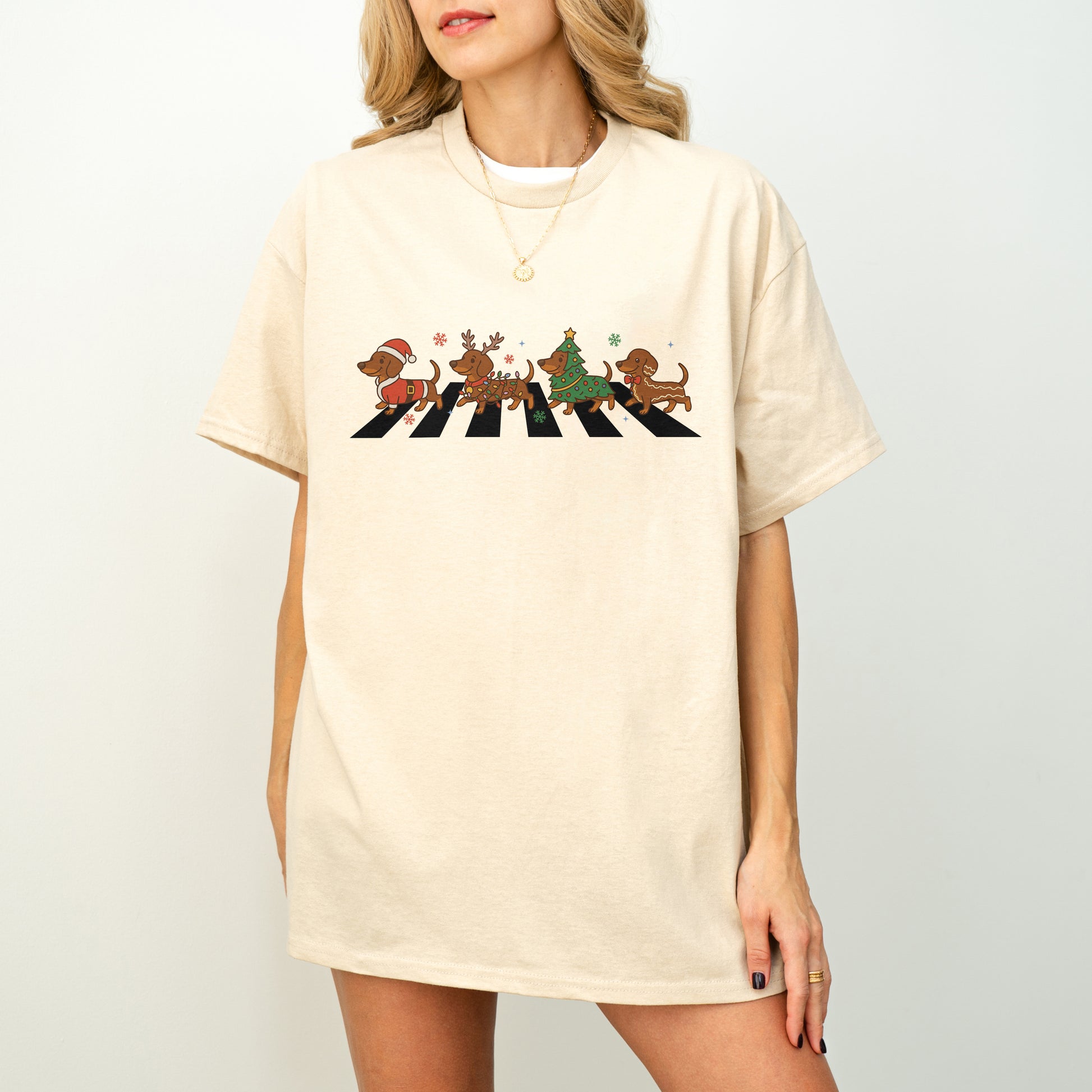 Abbey Road Dachshund Christmas Shirt – Funny Wiener Dog Holiday Tee for Dog Lovers