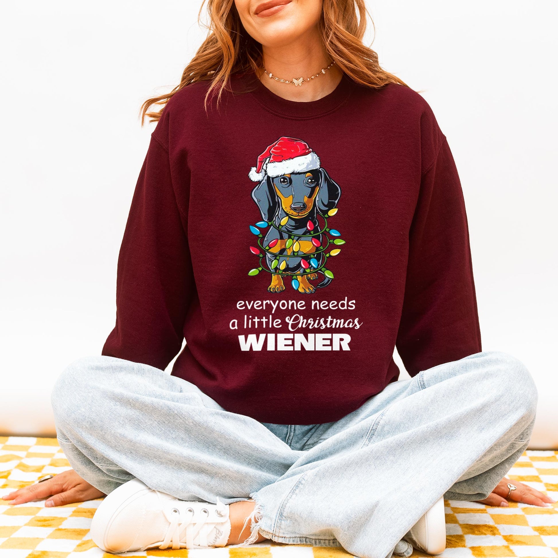 Everyone Needs a Little Christmas Wiener Dachshund Sweatshirt – Funny Wiener Dog Holiday Sweatshirt for Dog Lovers