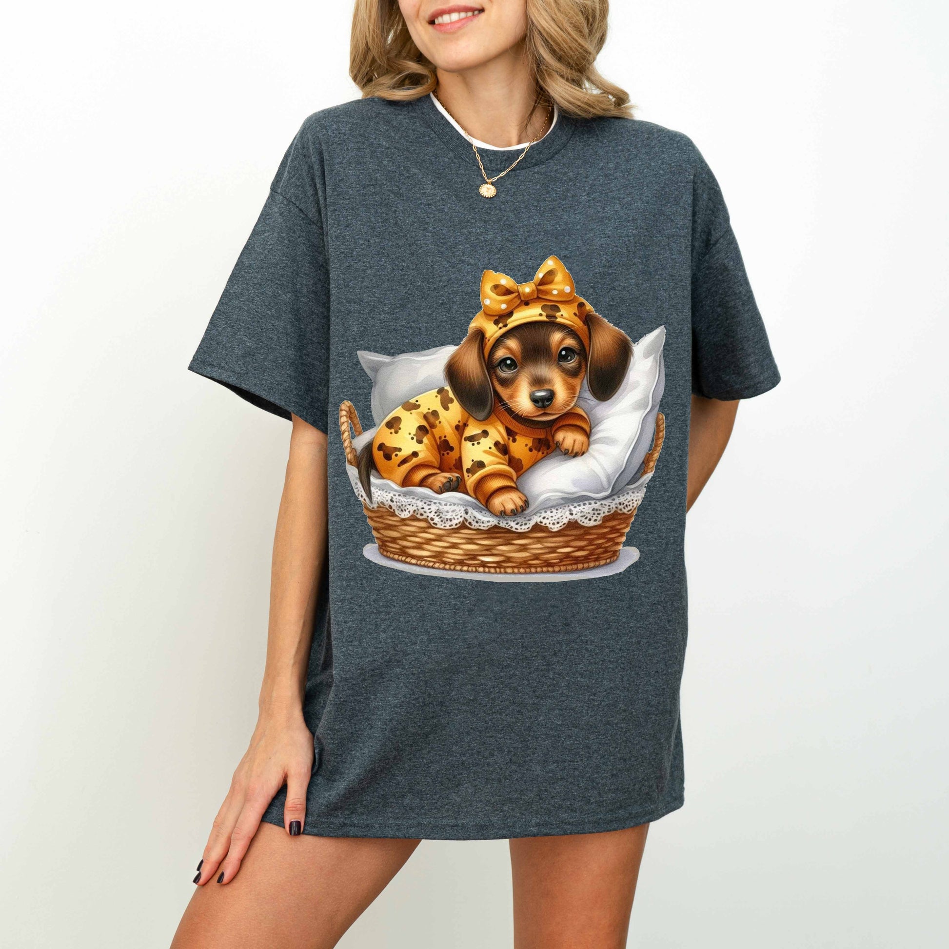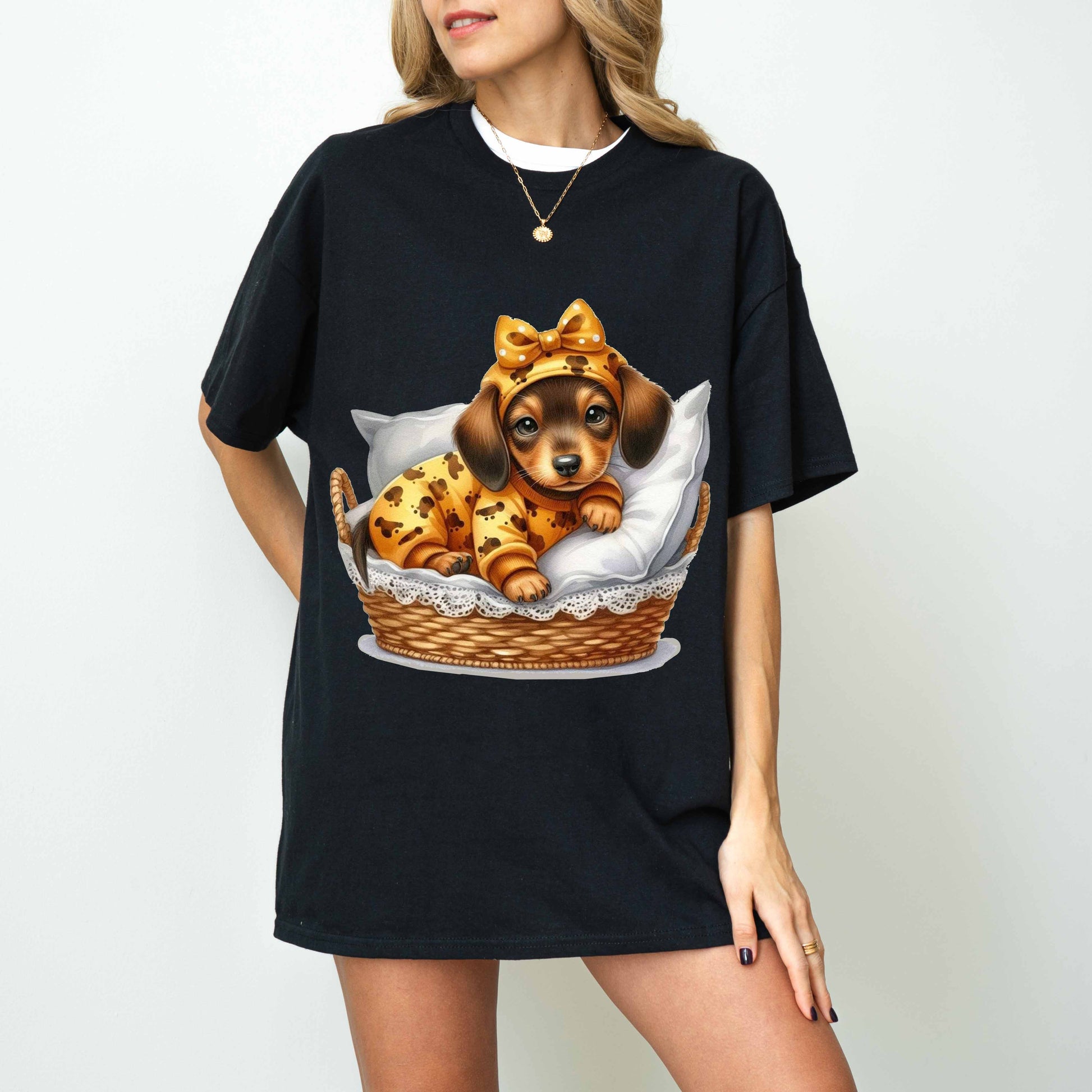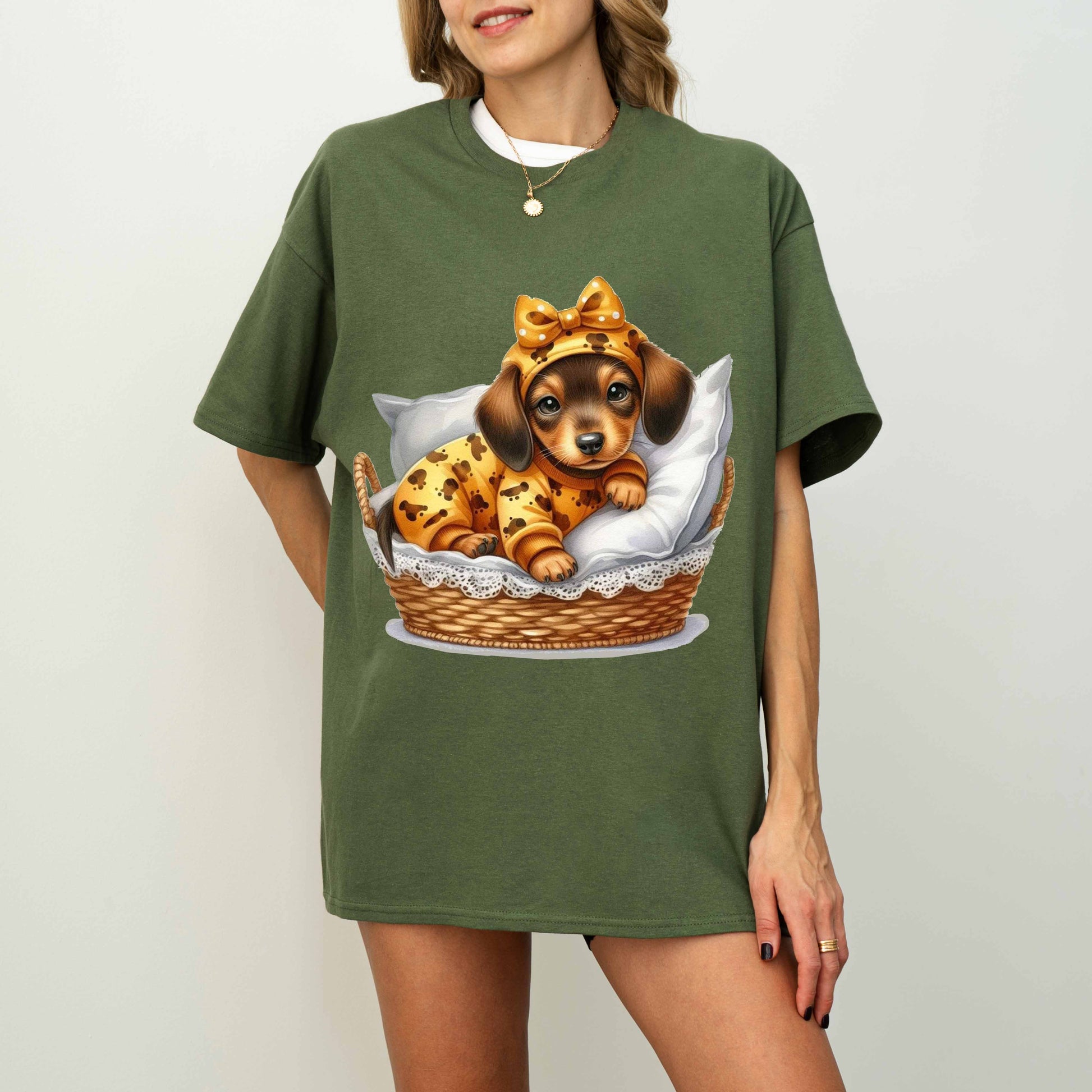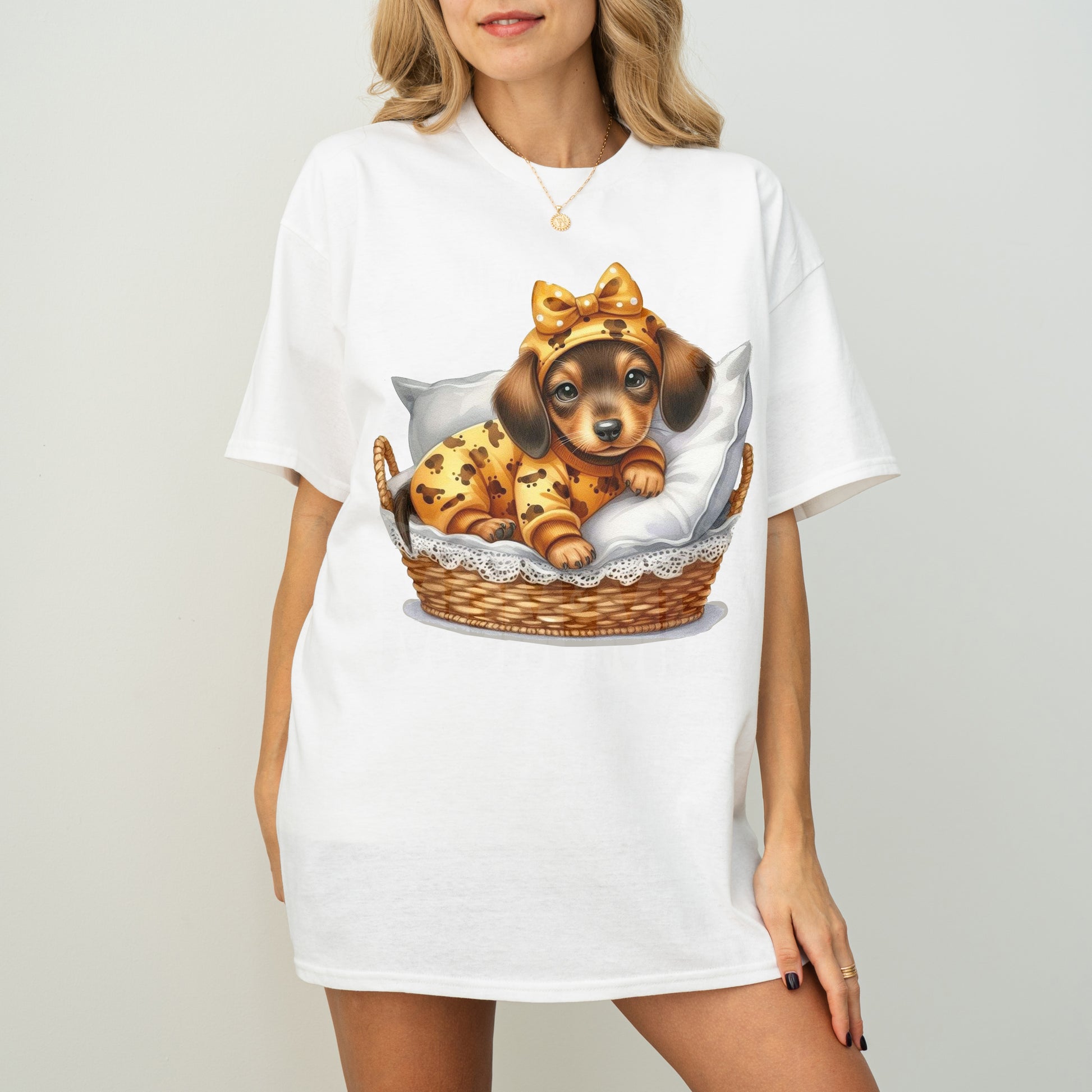 Cute Dachshund Puppy Dog Mom T-Shirt in Pajamas