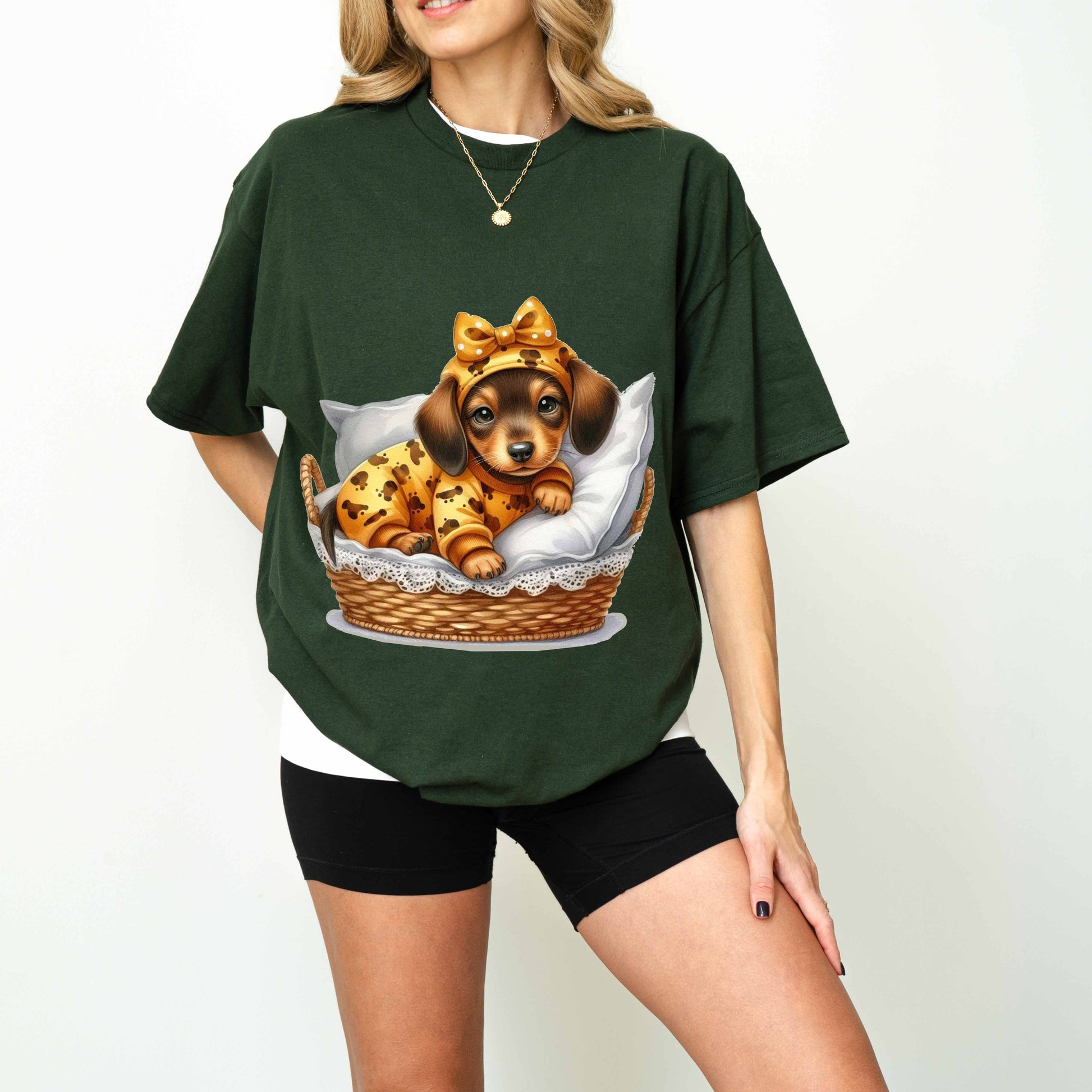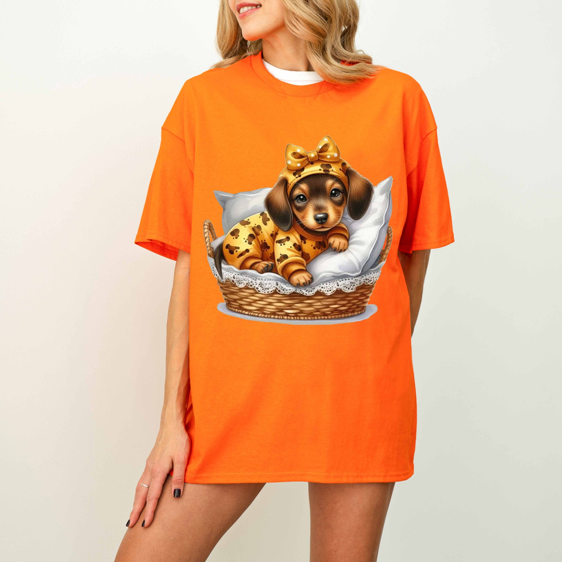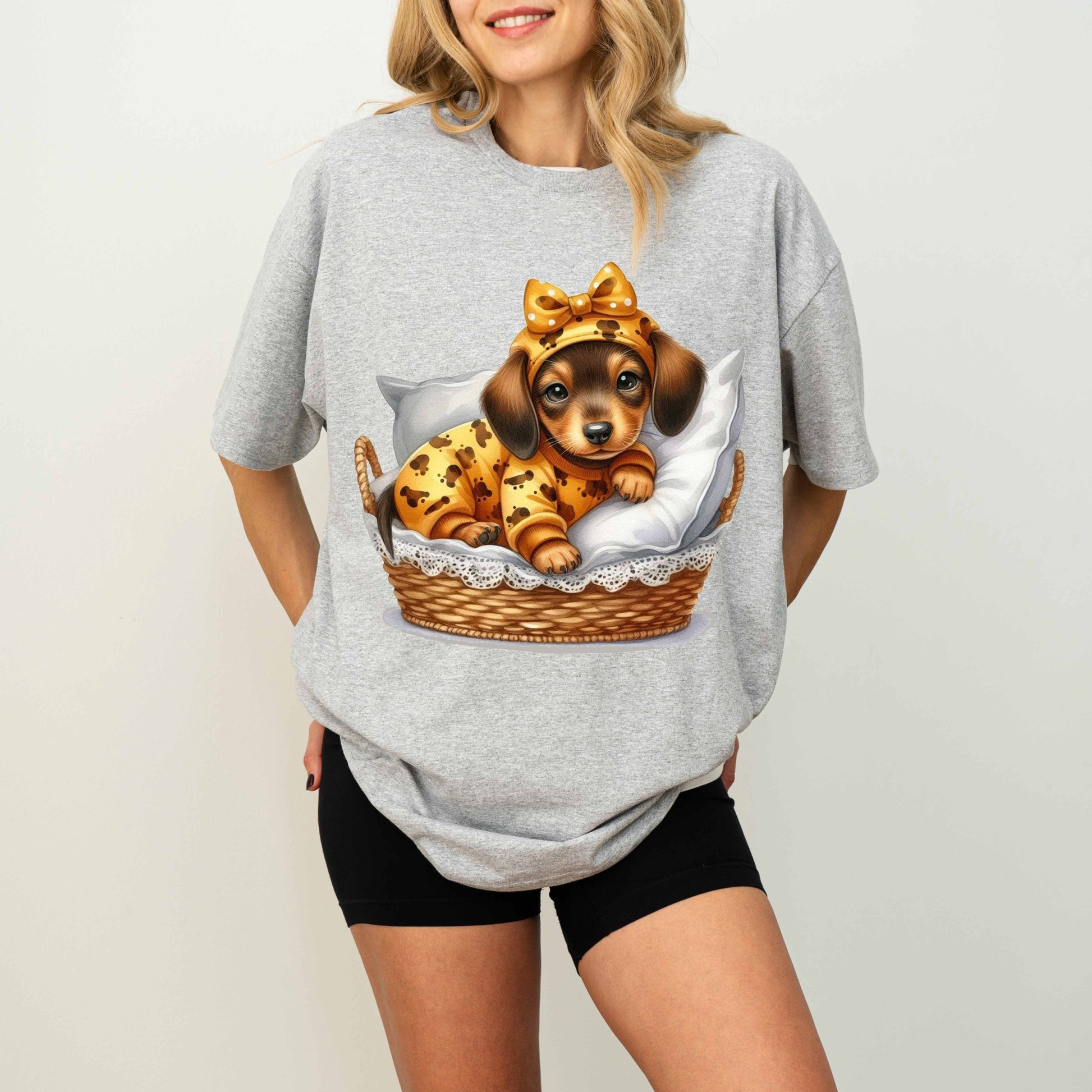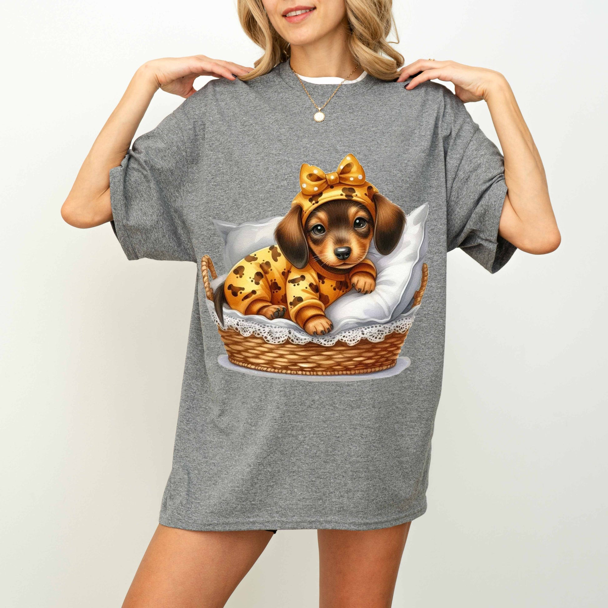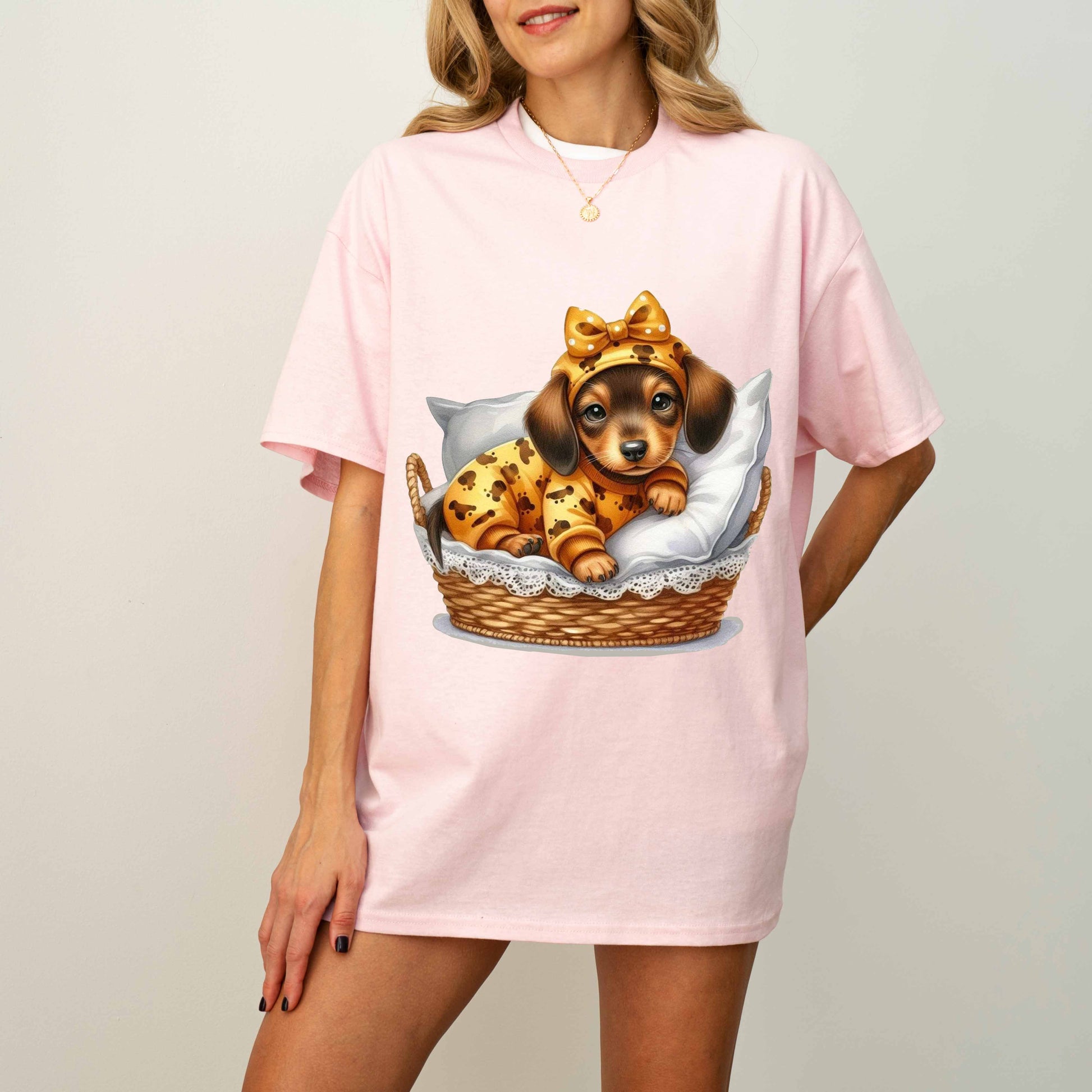 Cute Dachshund Puppy Dog Mom T-Shirt in Pajamas