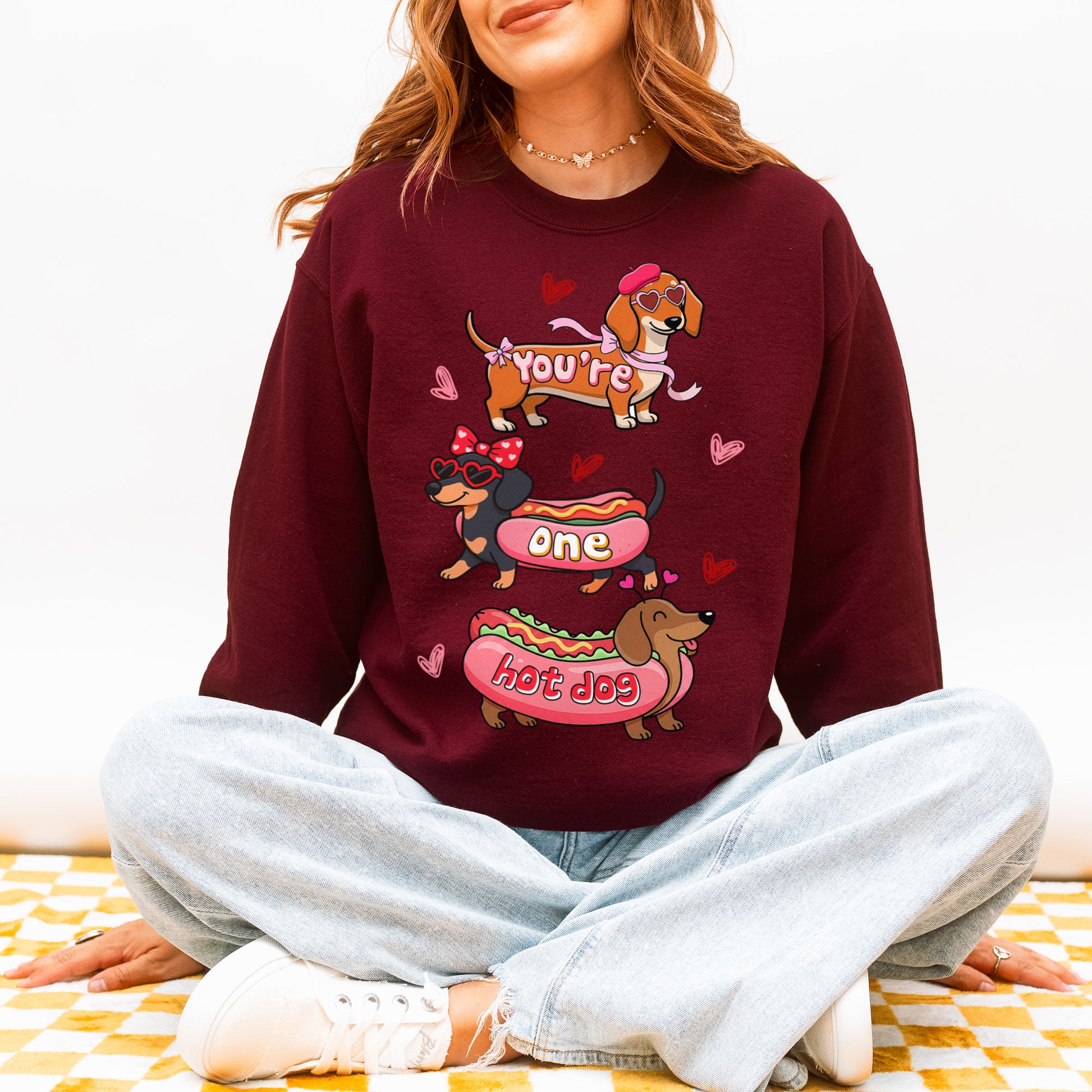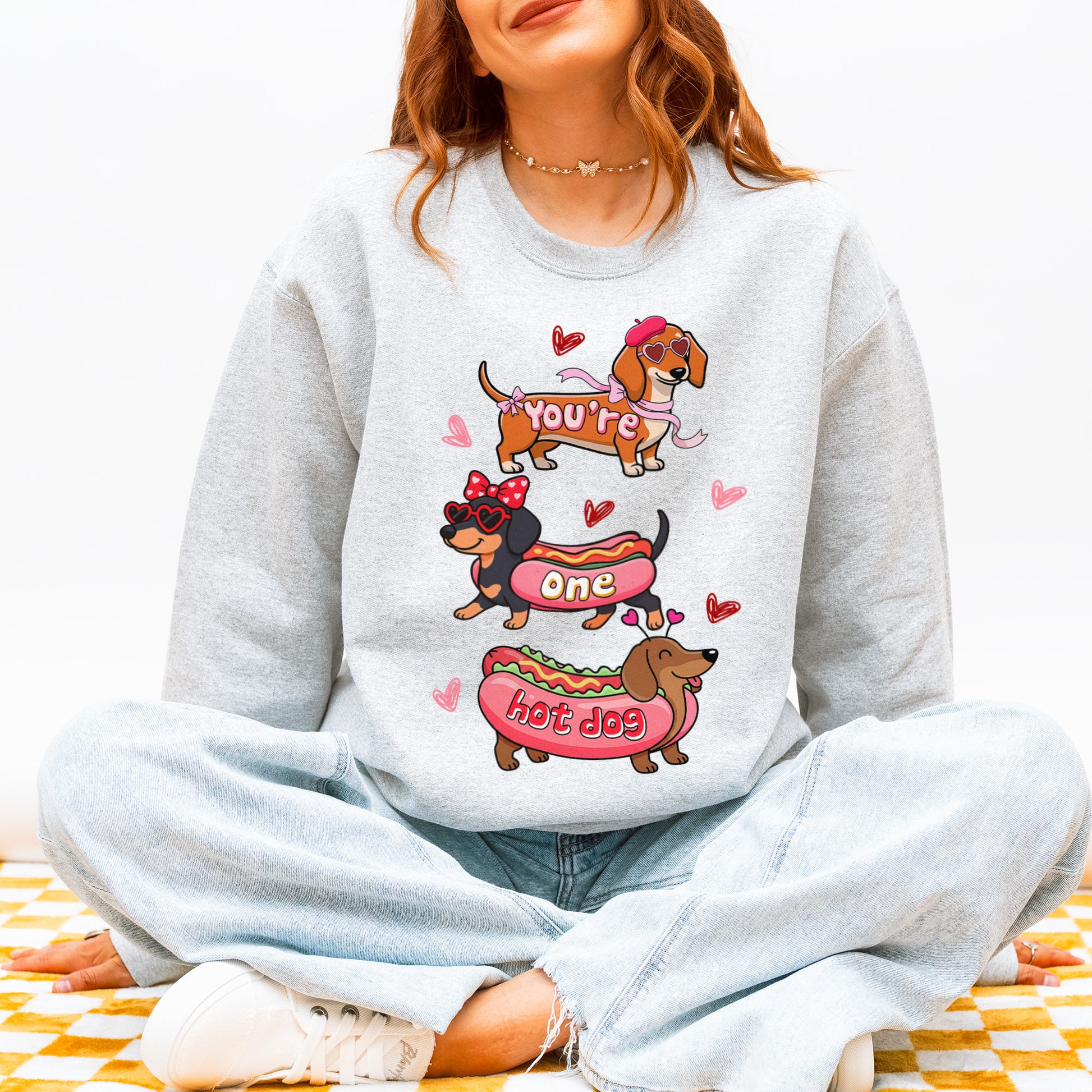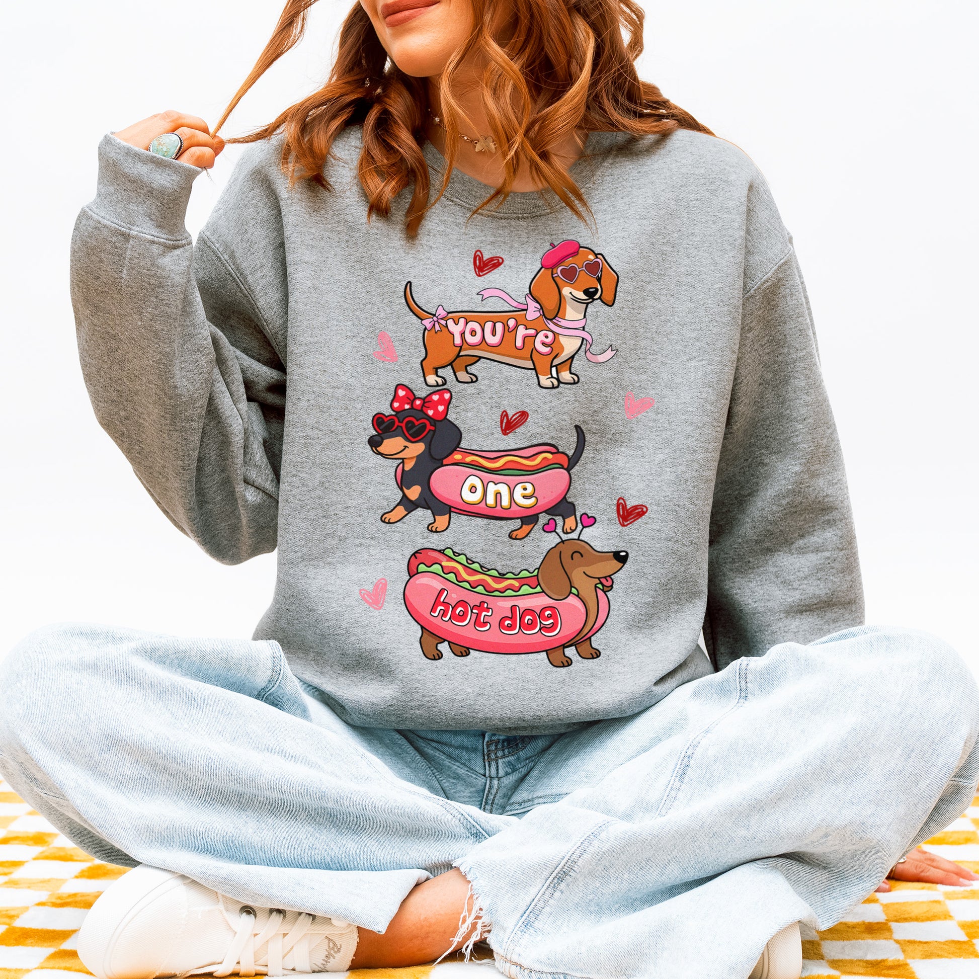 Cute Hot Dog Dachshund Valentine Sweatshirt – Funny Wiener Dog Heart Pullover for Pet Lovers