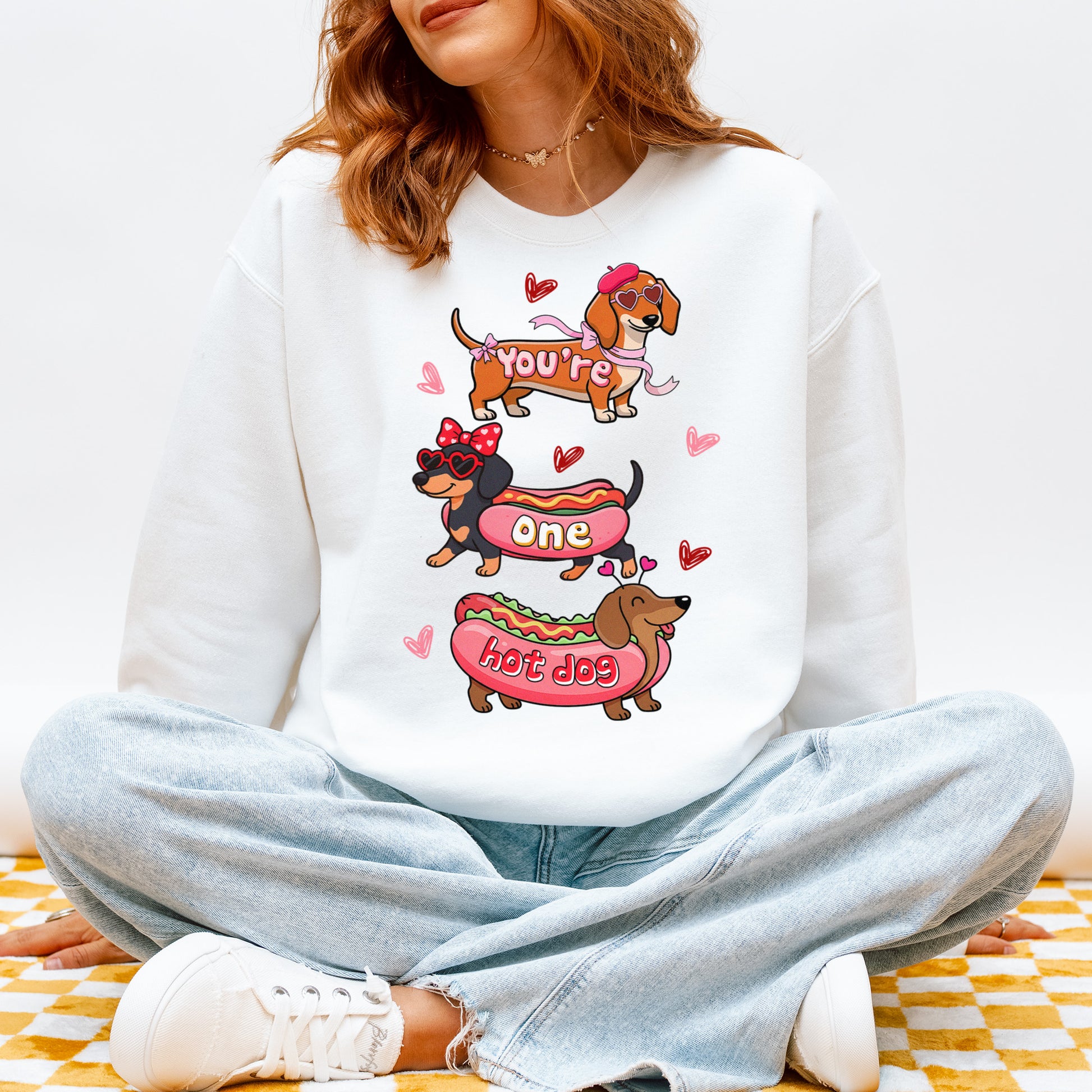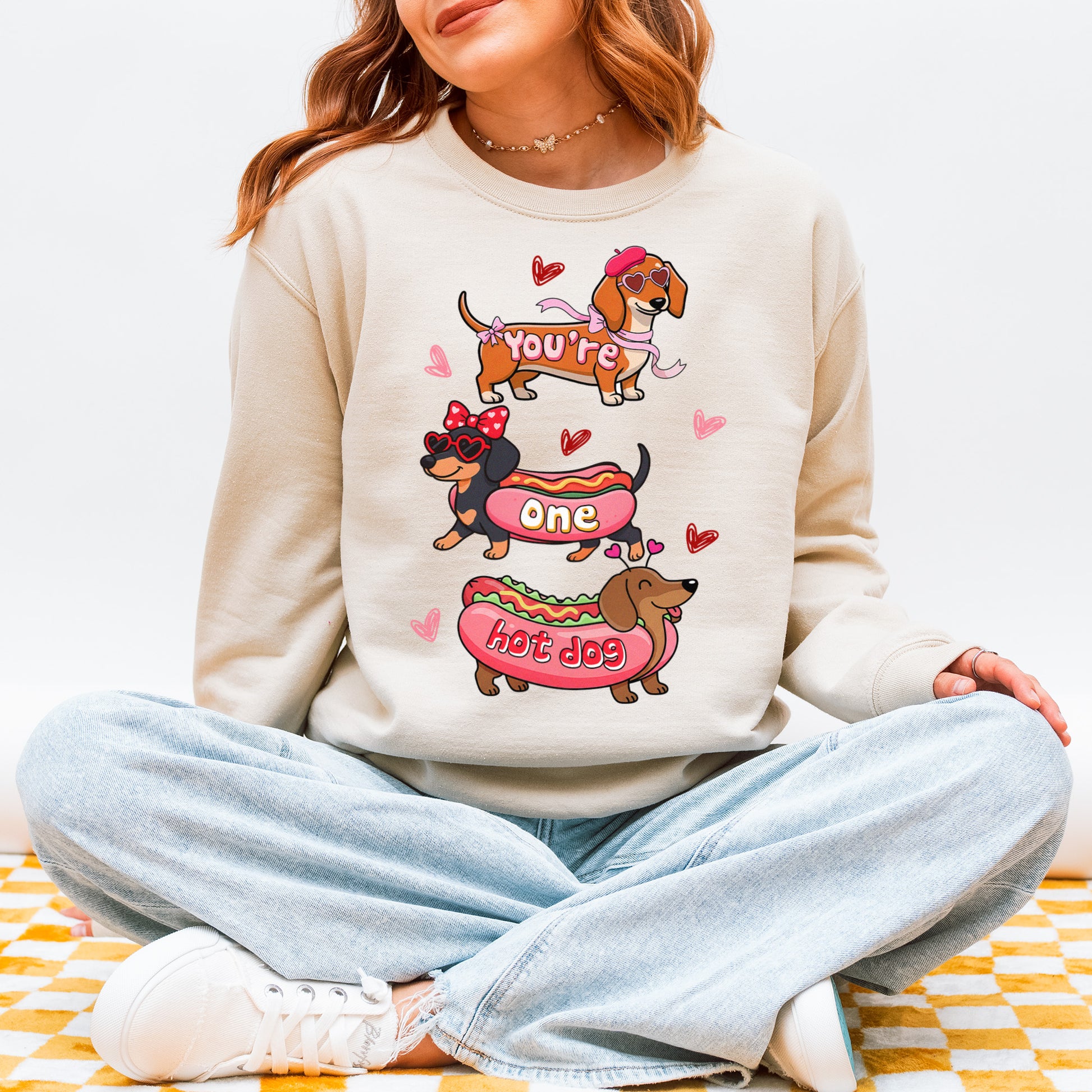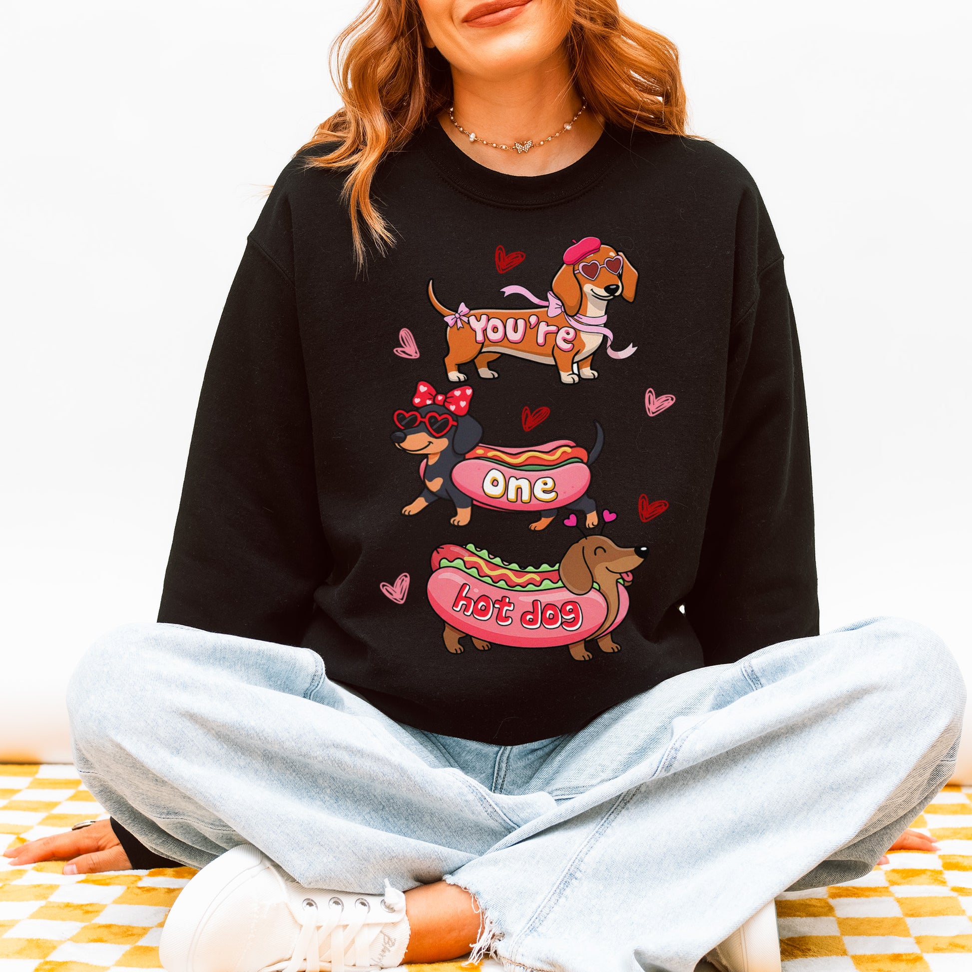 Cute Hot Dog Dachshund Valentine Sweatshirt – Funny Wiener Dog Heart Pullover for Pet Lovers
