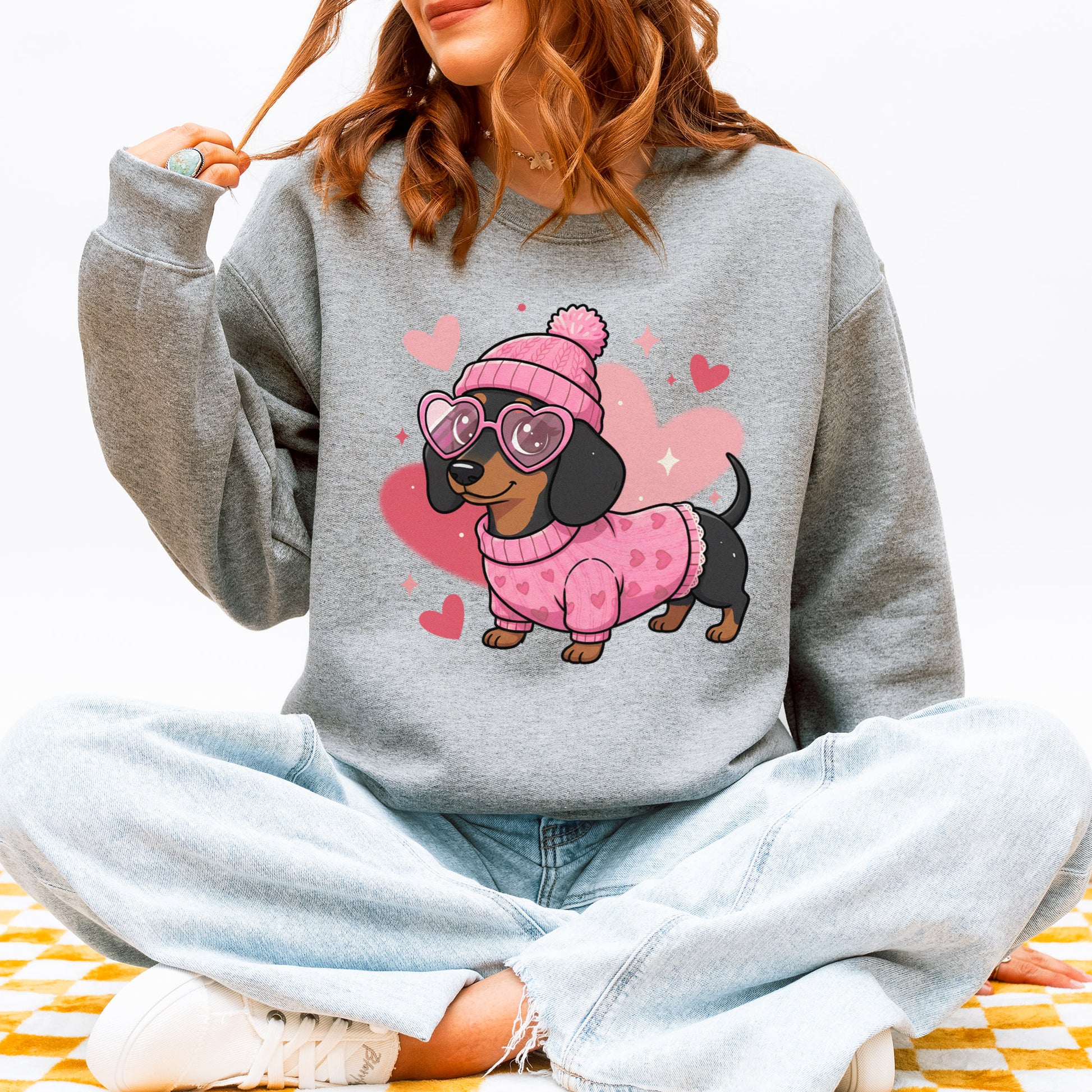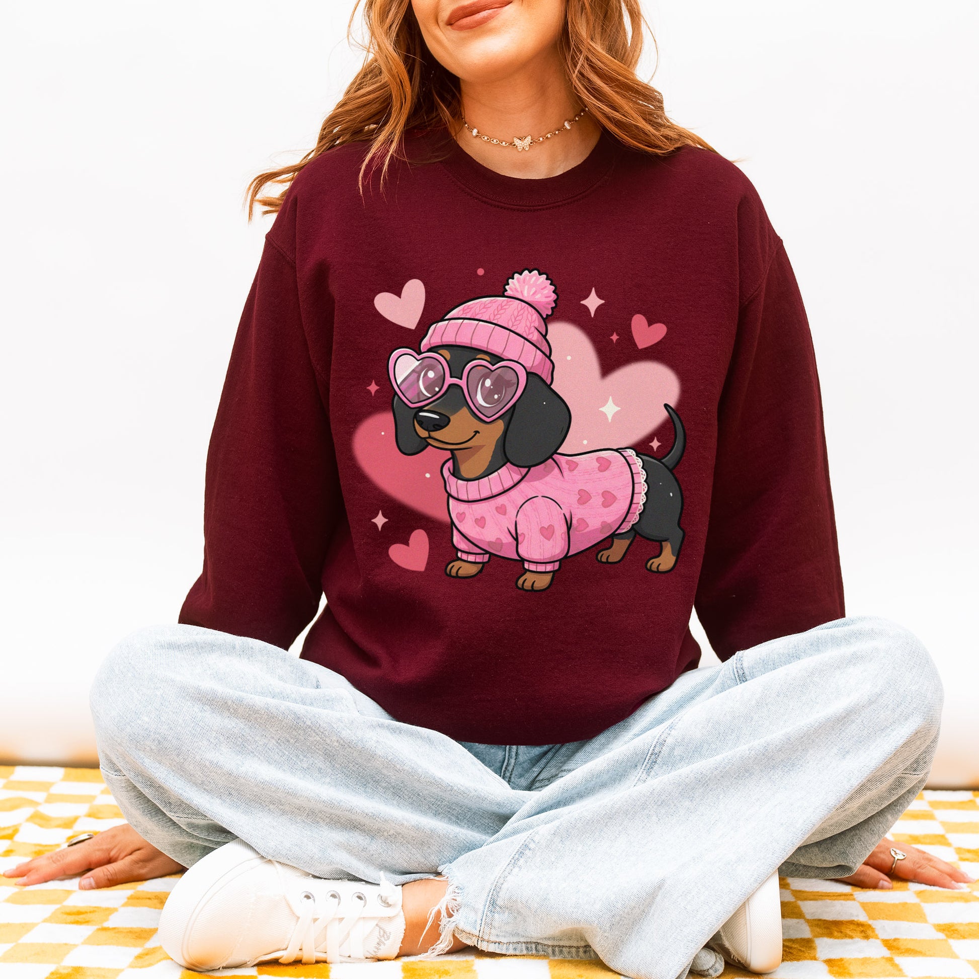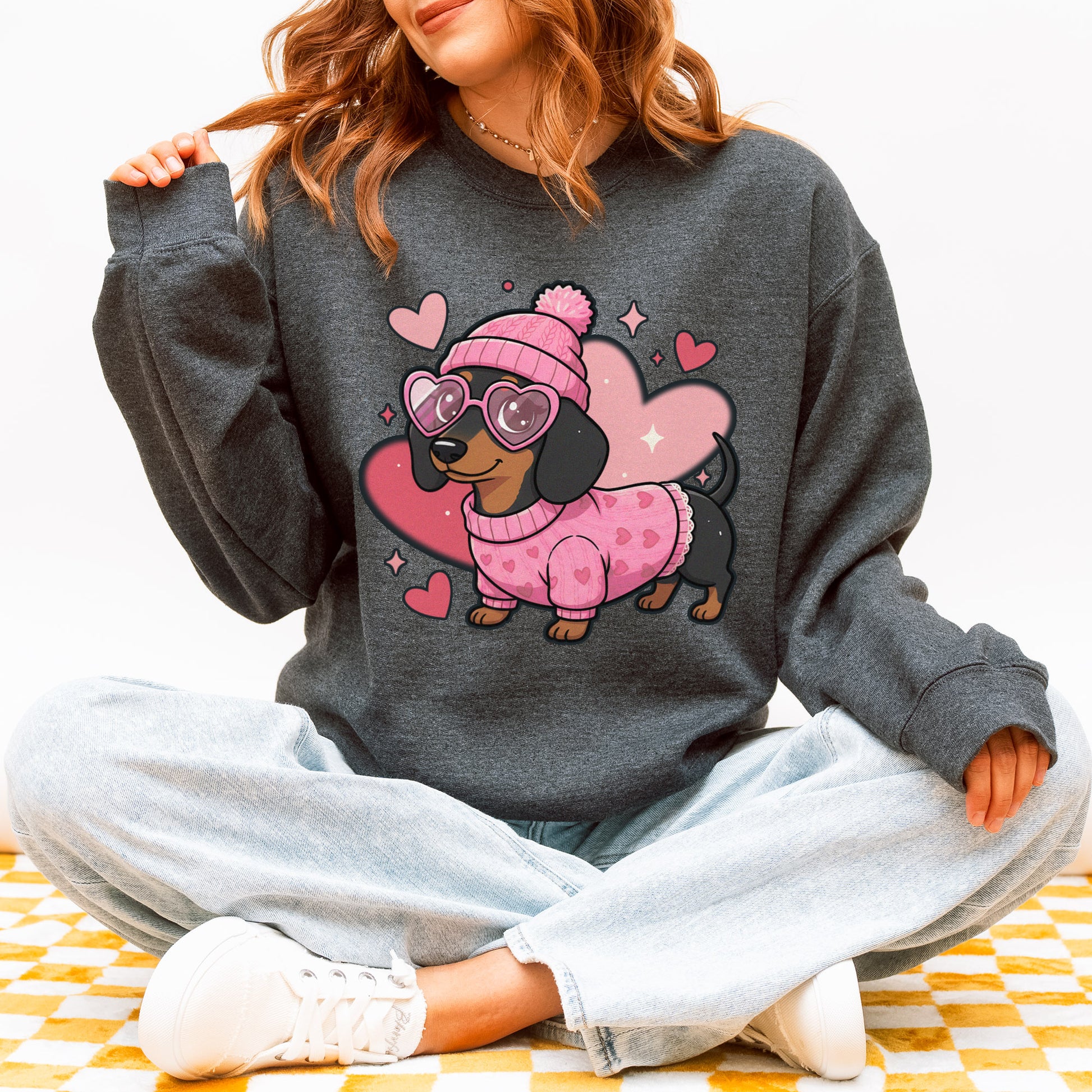Valentine Dachshund Love Sweatshirt – Cute Wiener Dog Heart Sweater Pullover for Dog Moms, Doxie Lover Gift