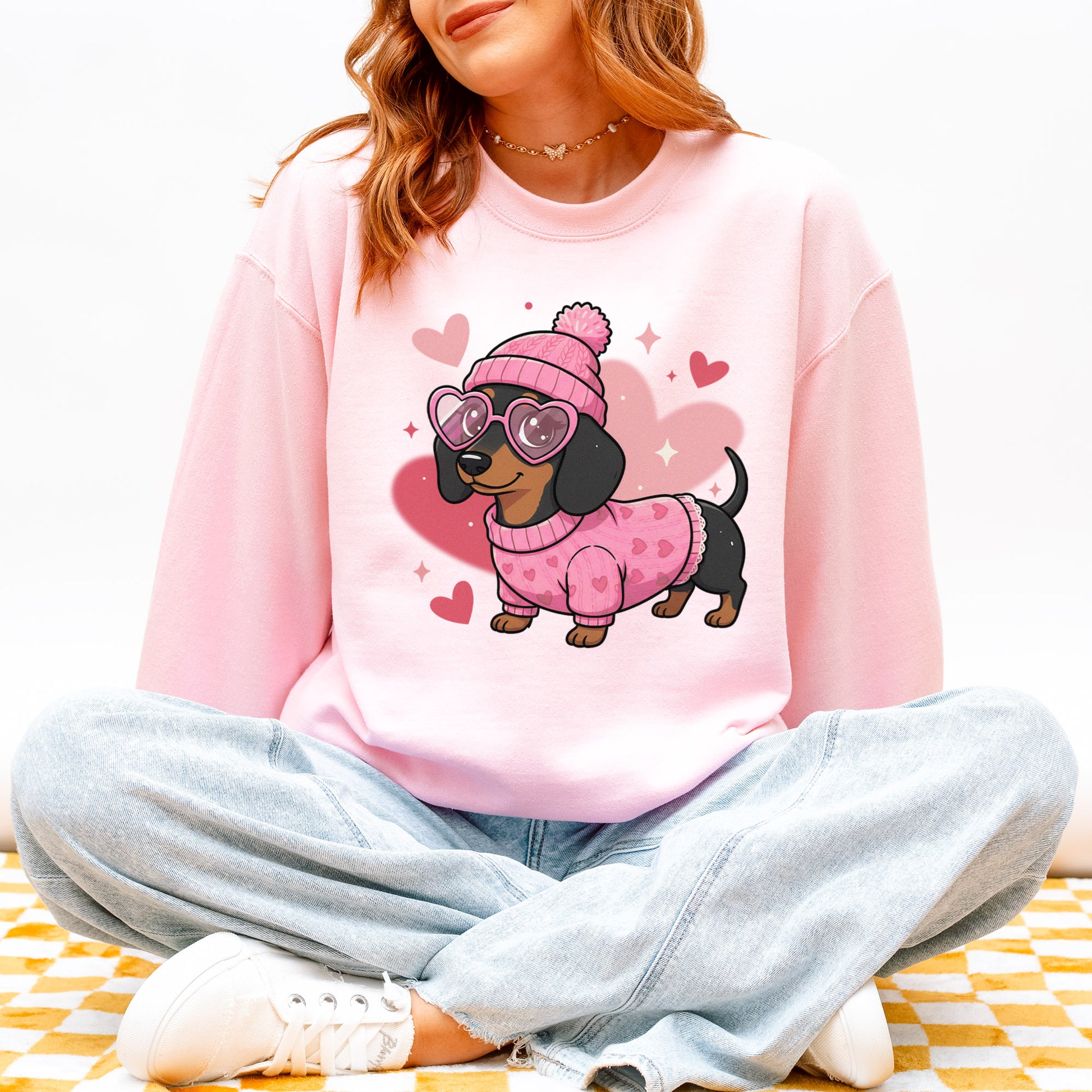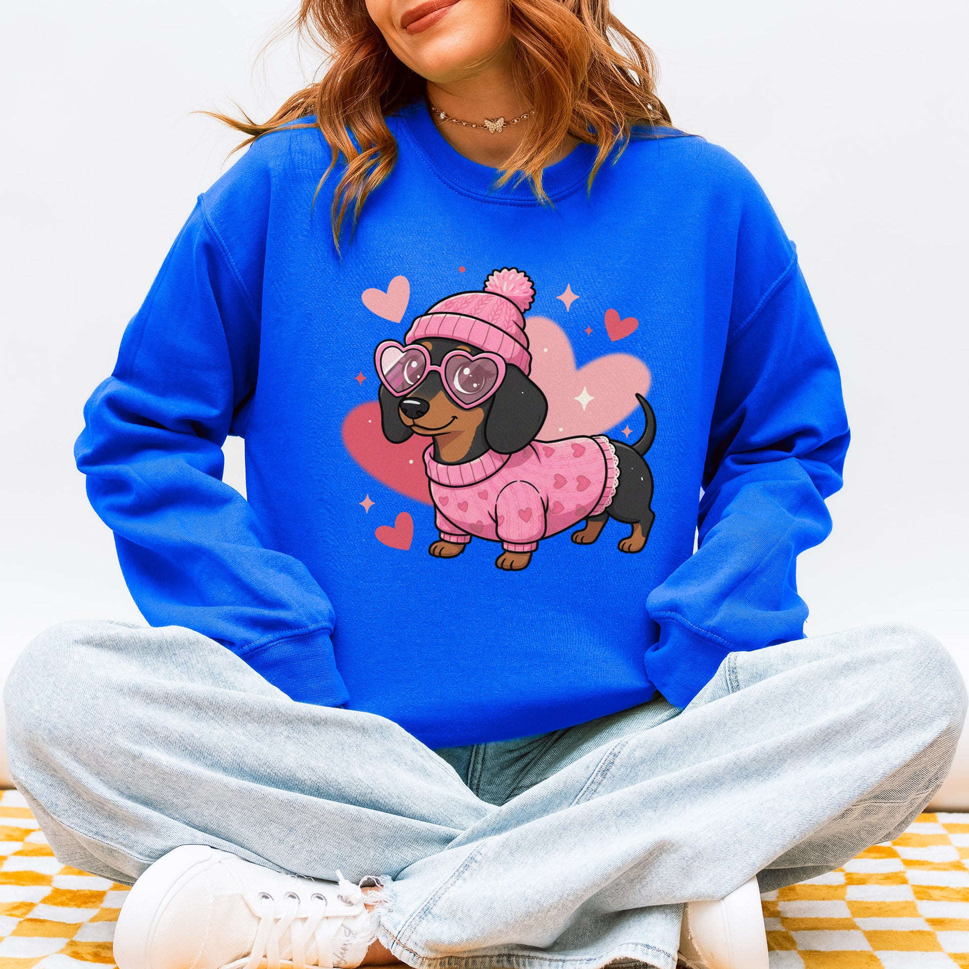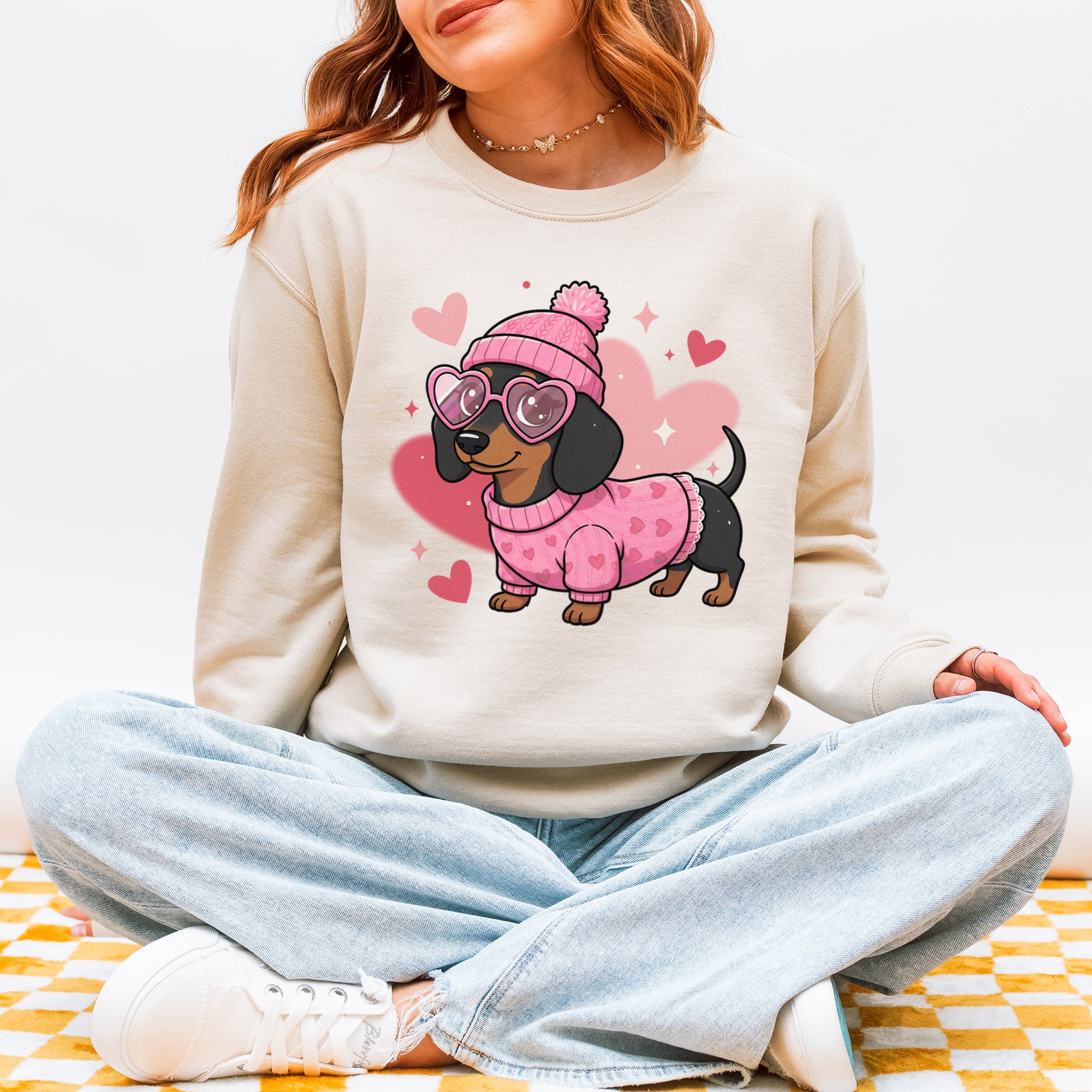 Valentine Dachshund Love Sweatshirt – Cute Wiener Dog Heart Sweater Pullover for Dog Moms, Doxie Lover Gift