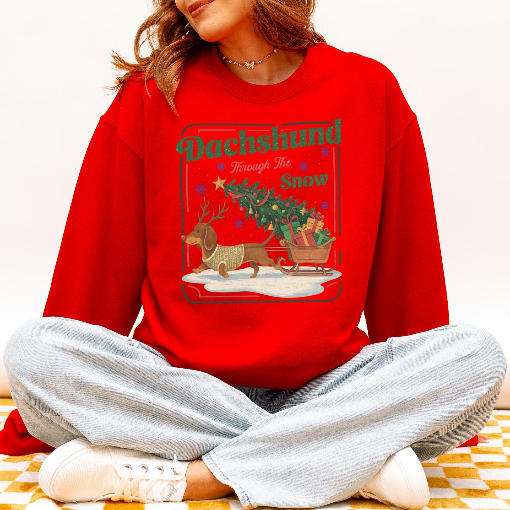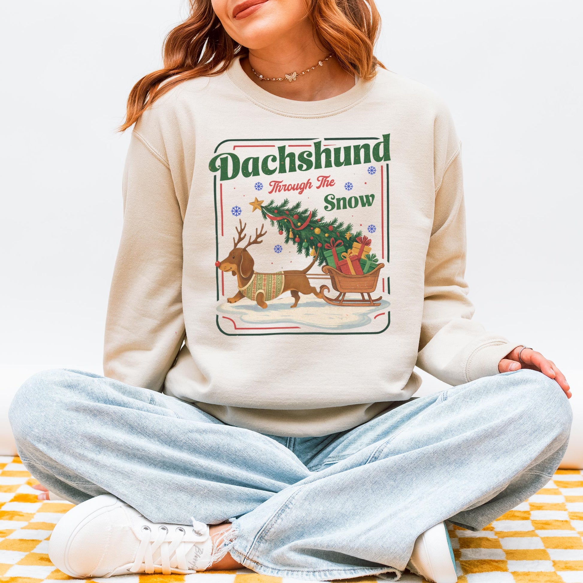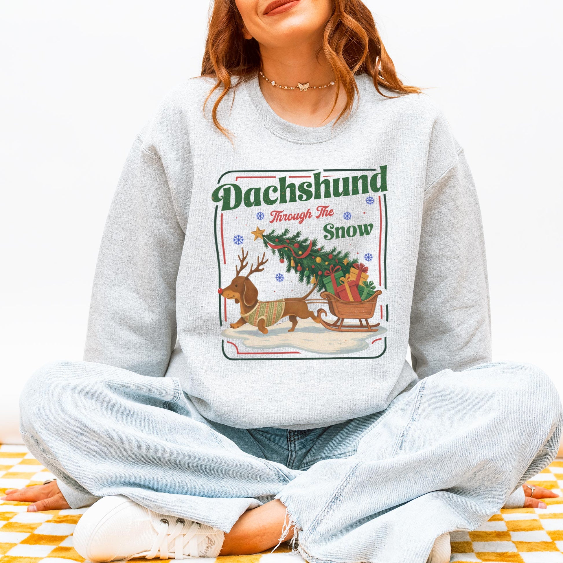 Dachshund Through the Snow Christmas Sweatshirt – Cute Wiener Dog Holiday Pullover for Dog Lovers
