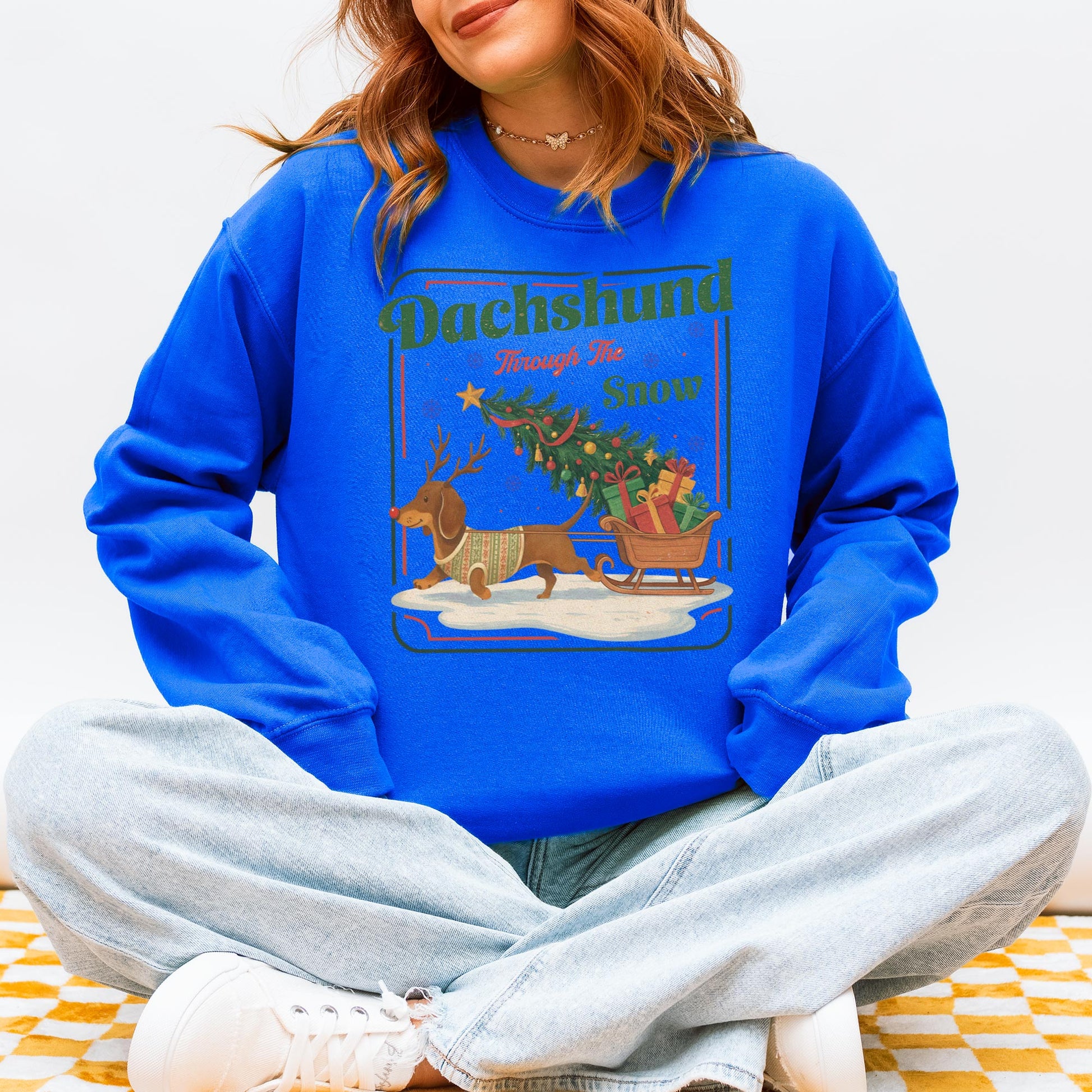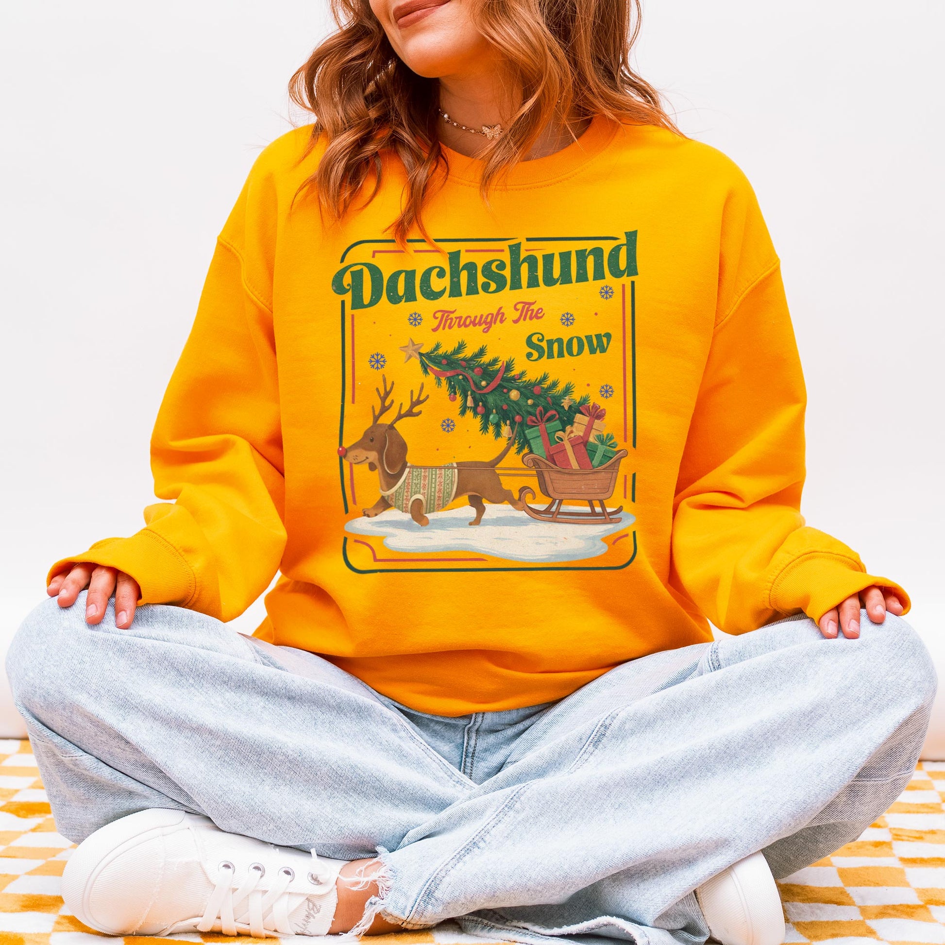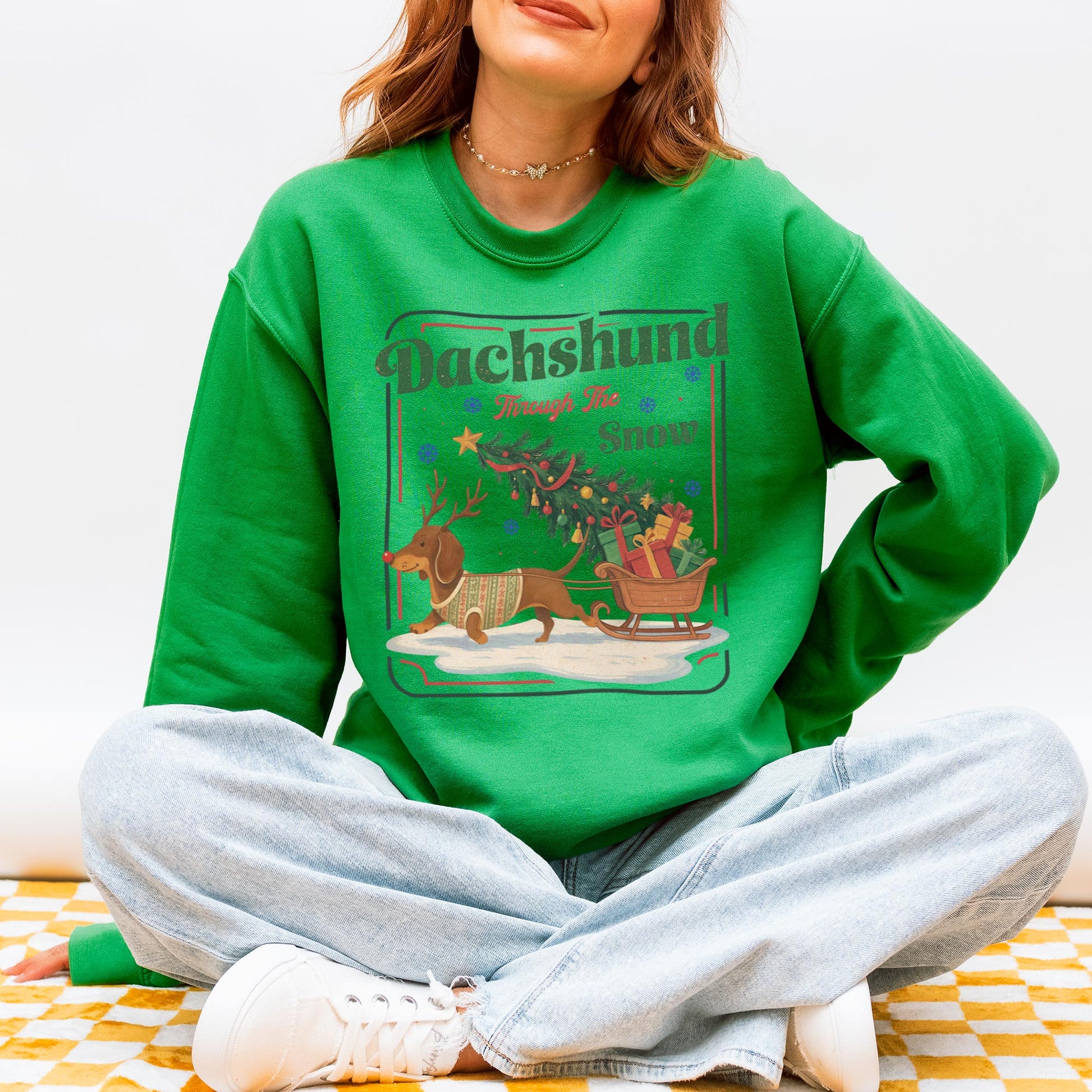Dachshund Through the Snow Christmas Sweatshirt – Cute Wiener Dog Holiday Pullover for Dog Lovers