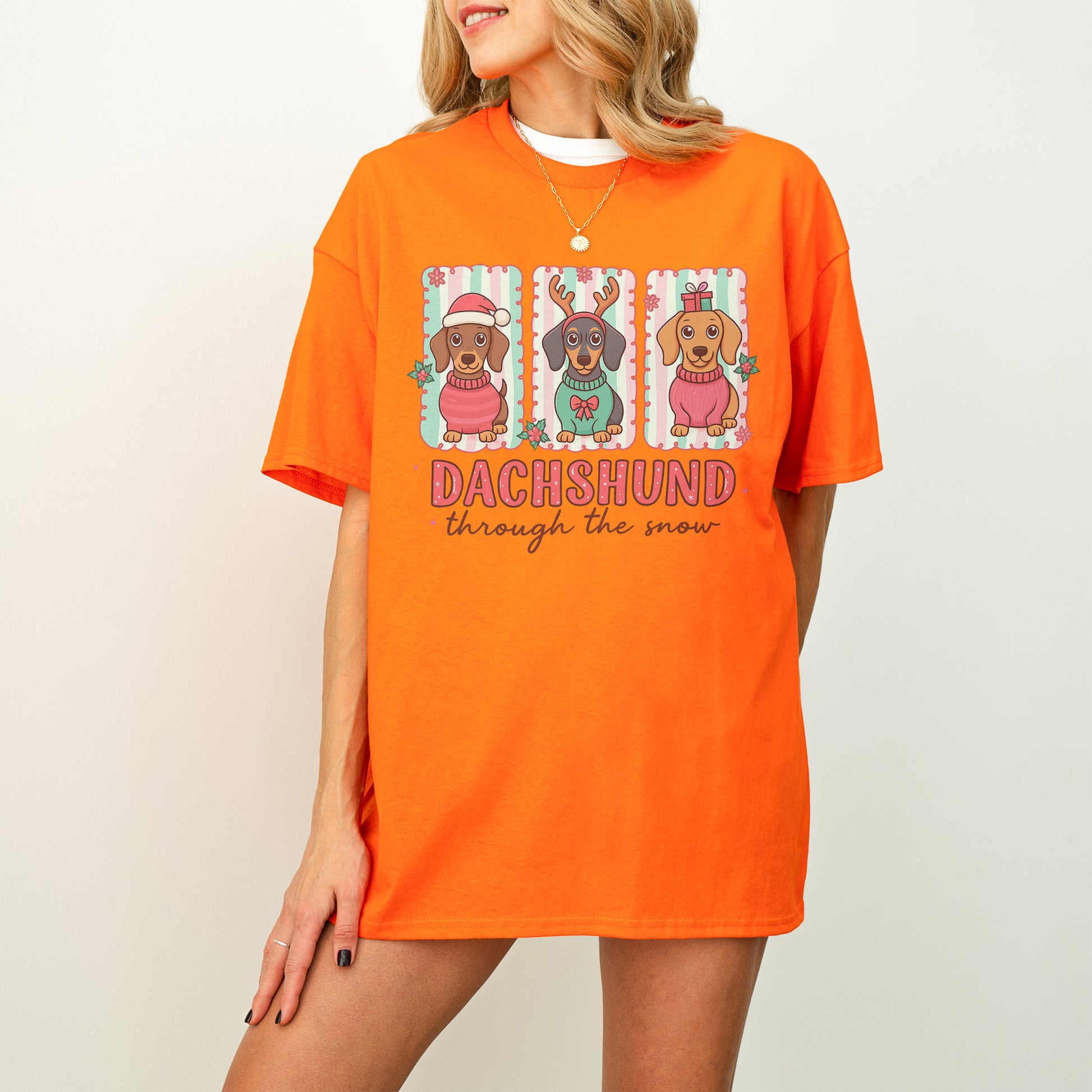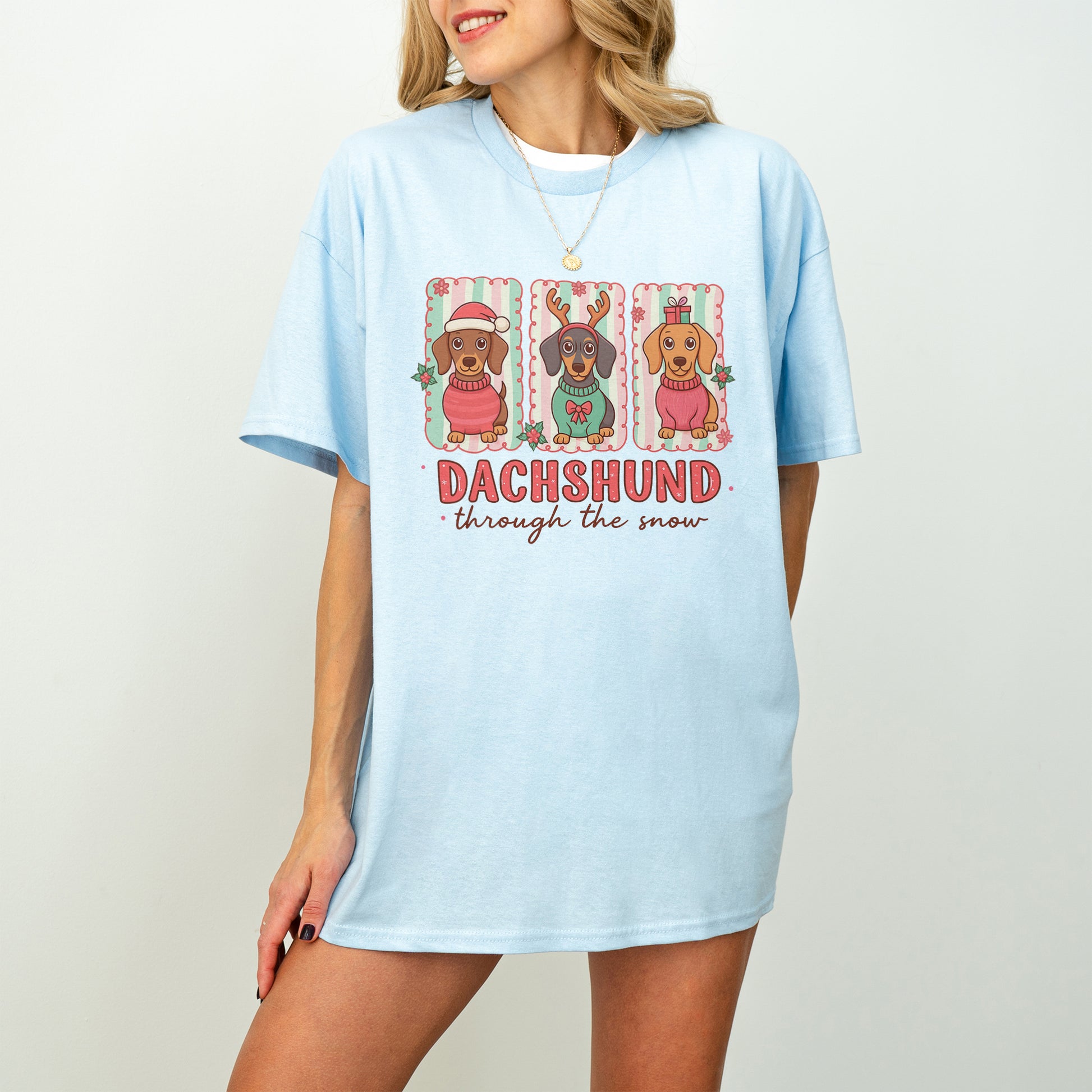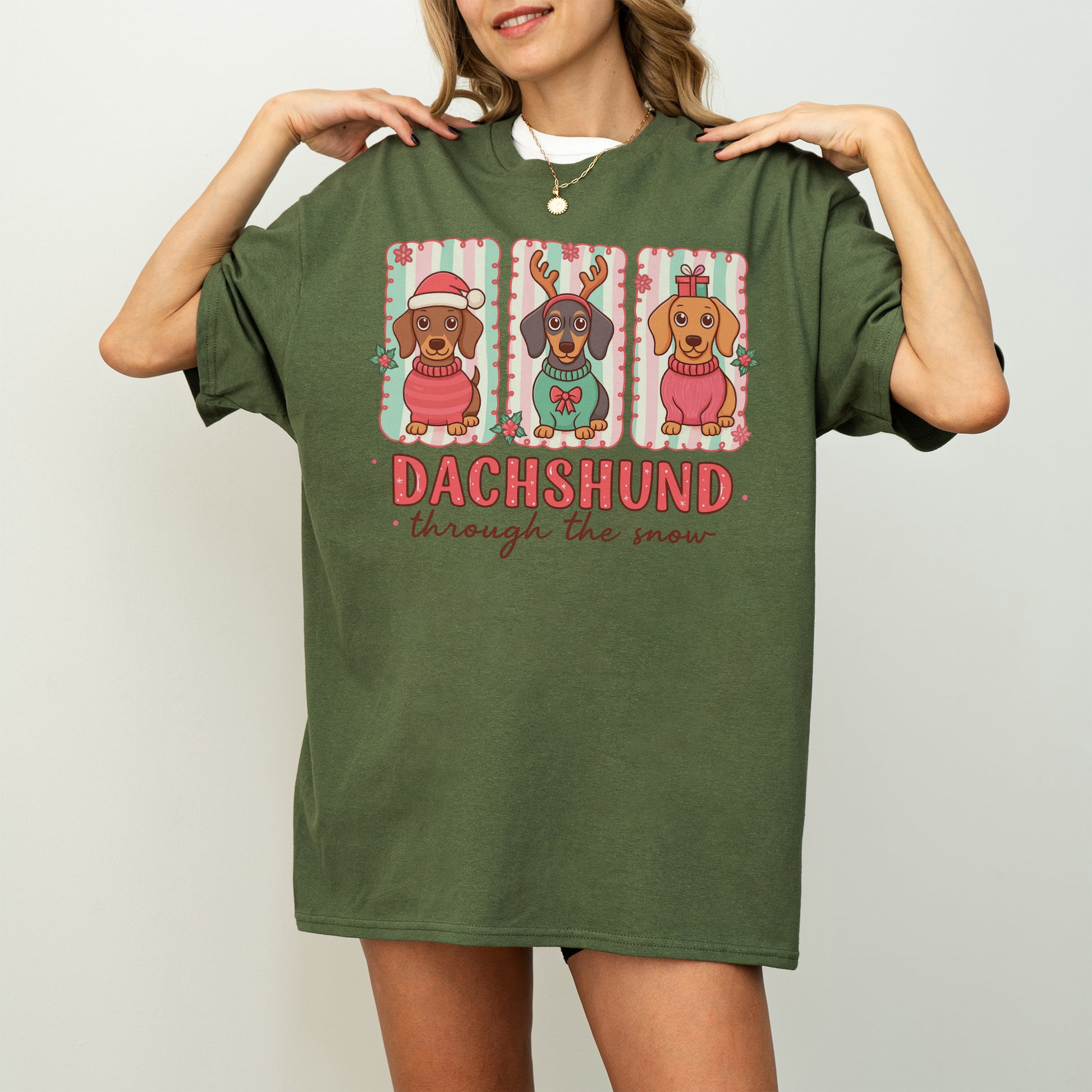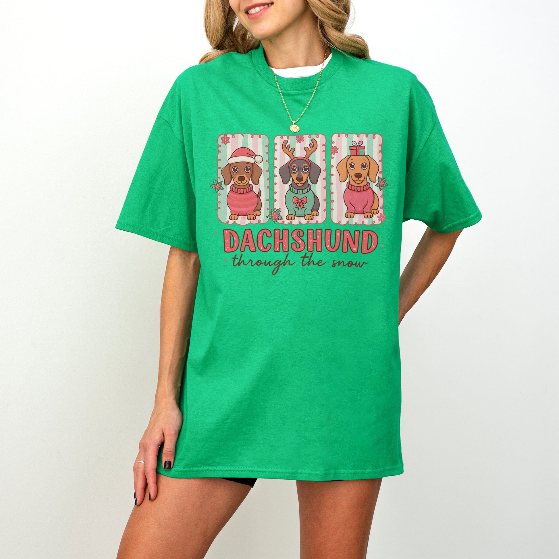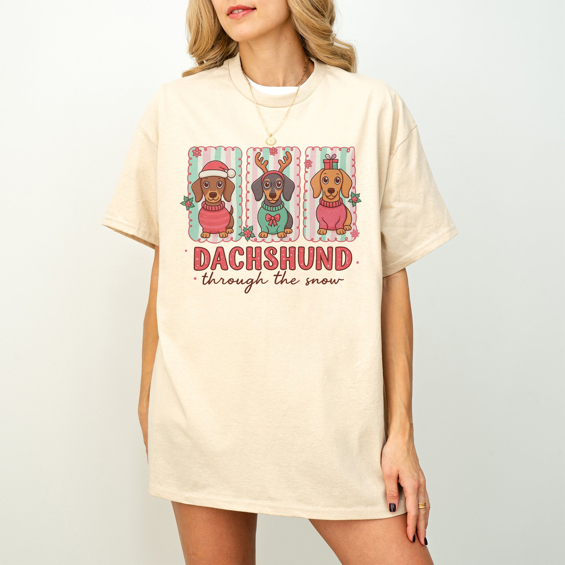 Dachshund Through the Snow Trio Christmas Shirt – Cute Wiener Dog Holiday Tee for Dog Lovers