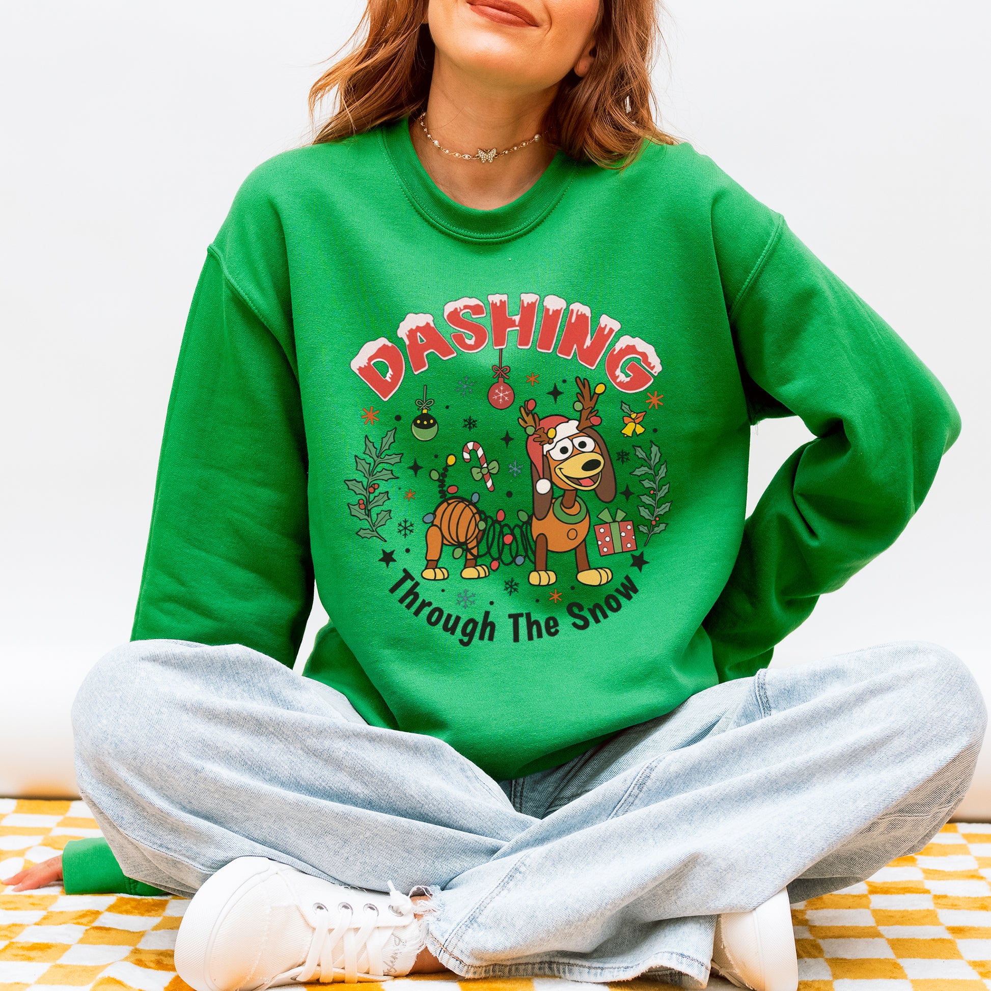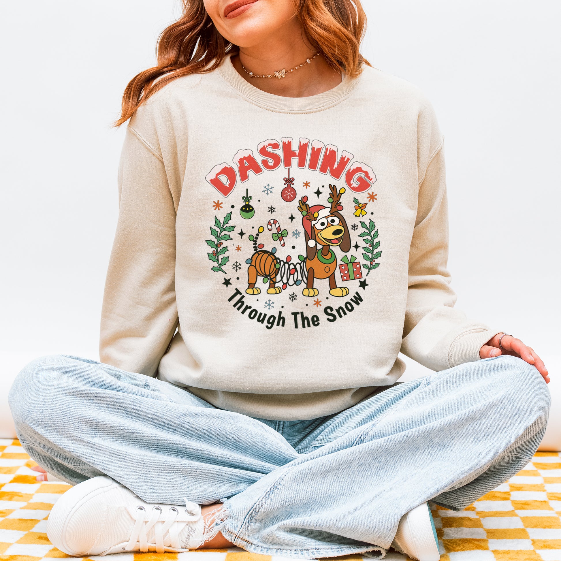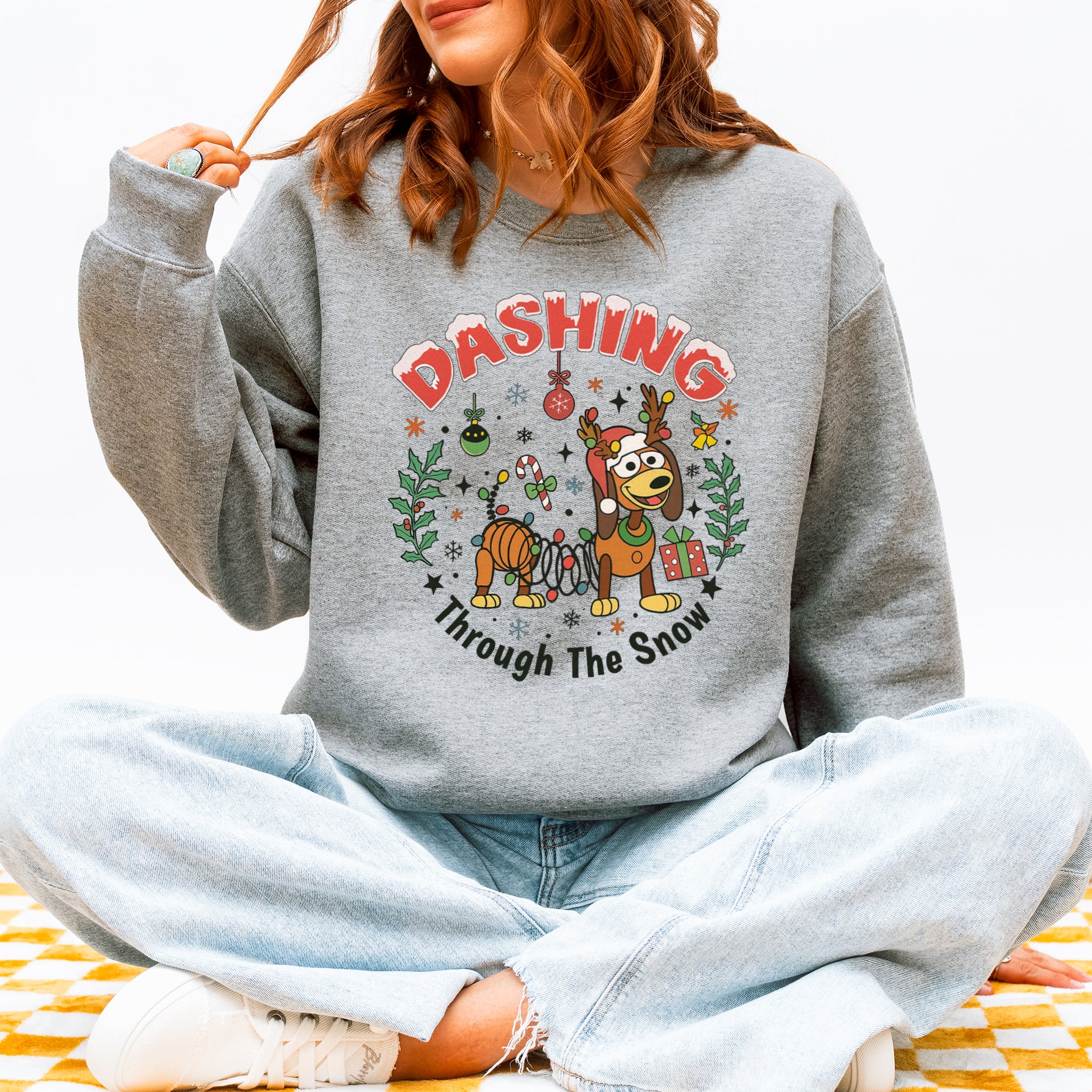 Dashing Through The Snow Slinky Dog Christmas Sweatshirt Disney Toy Story Holiday Sweater