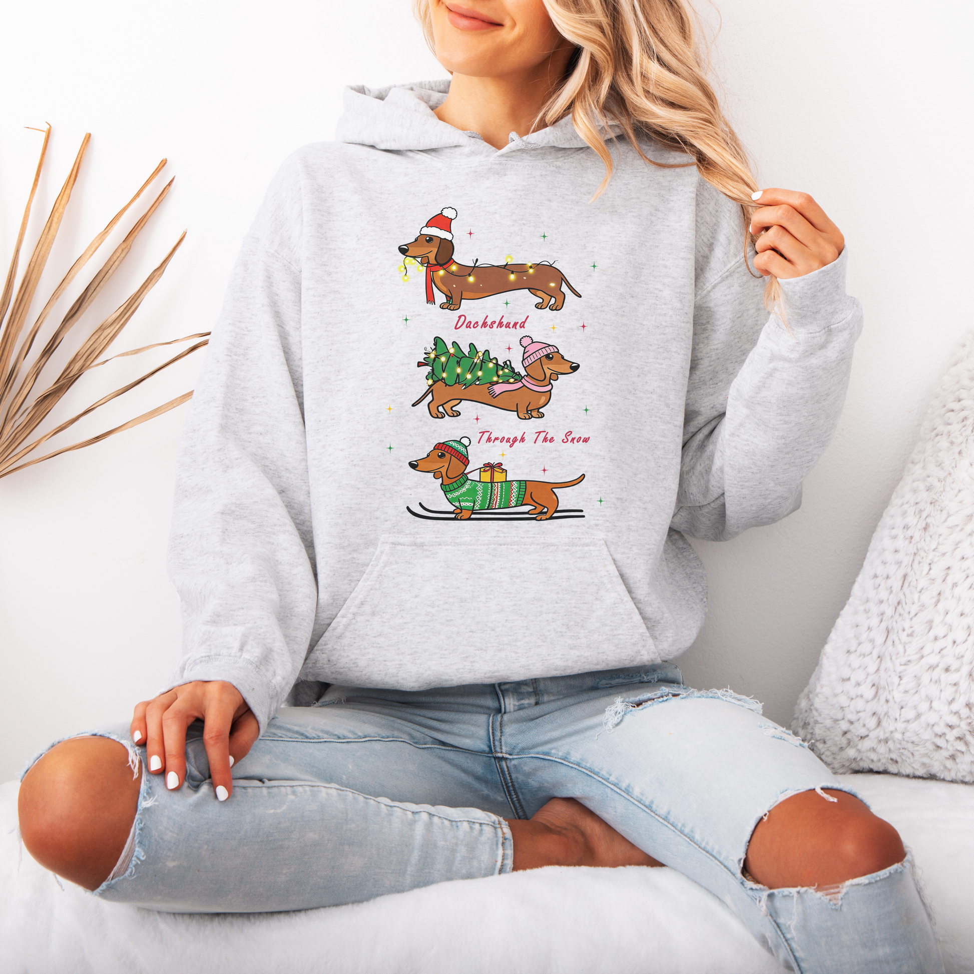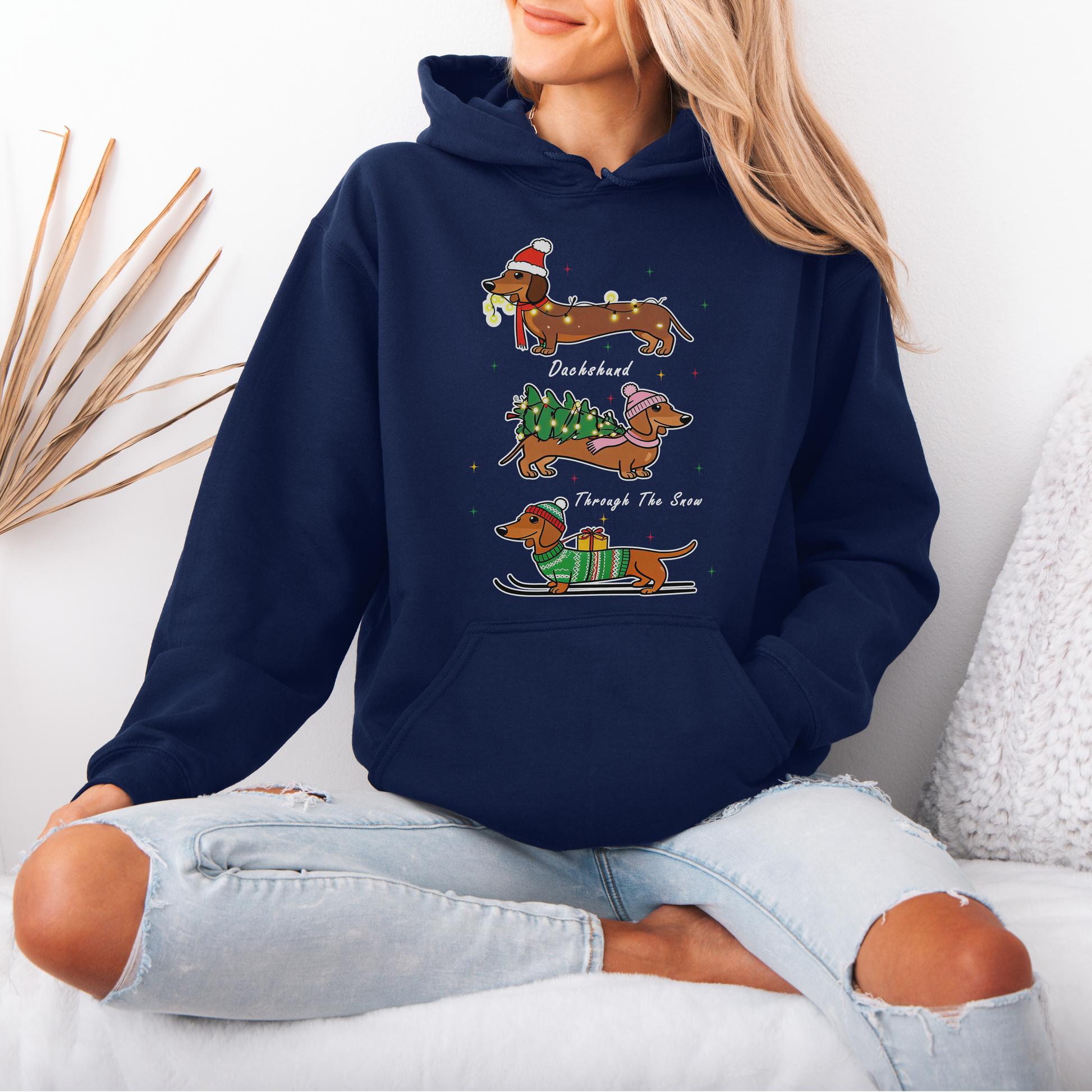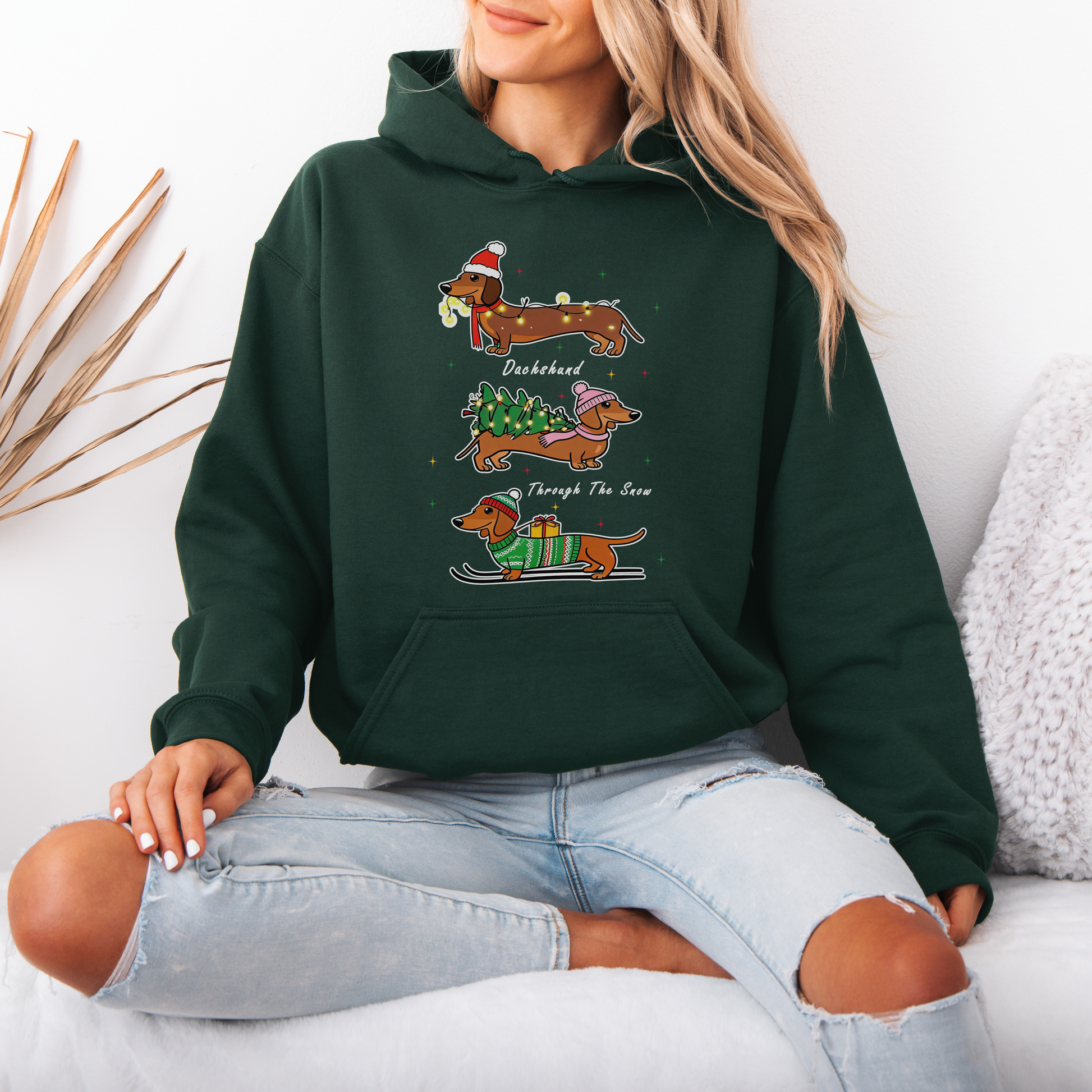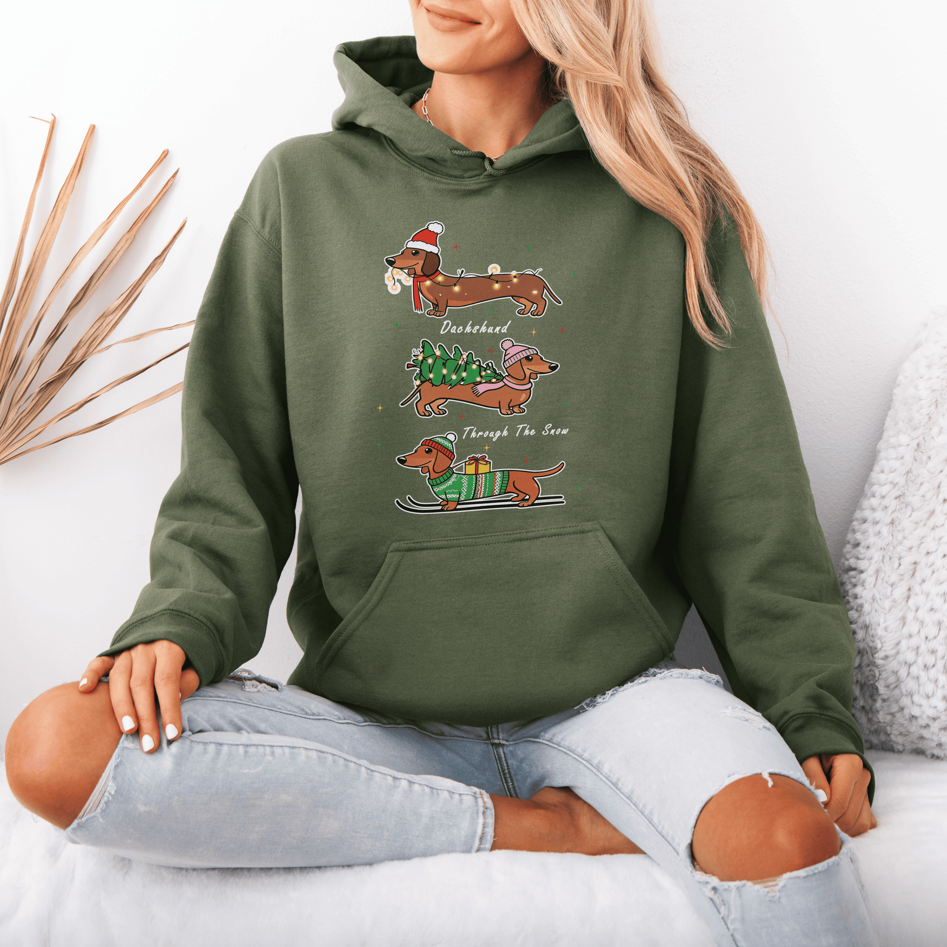 Dachshund Through the Snow Christmas Hoodie – Cute Wiener Dog Holiday Hooded Sweatshirt for Dog Lovers