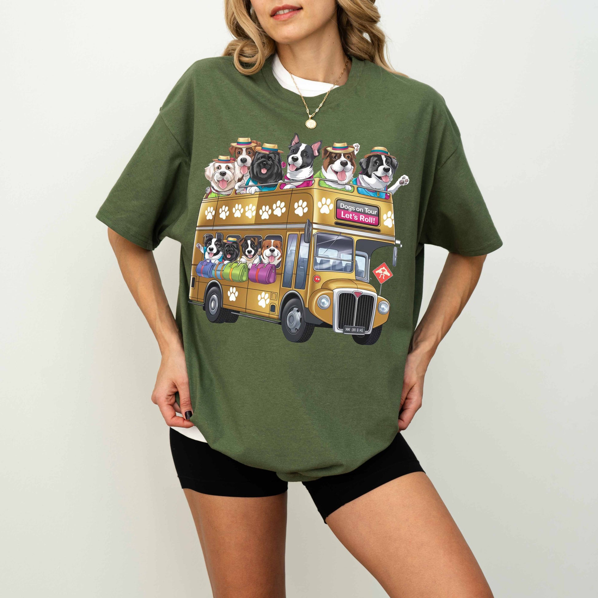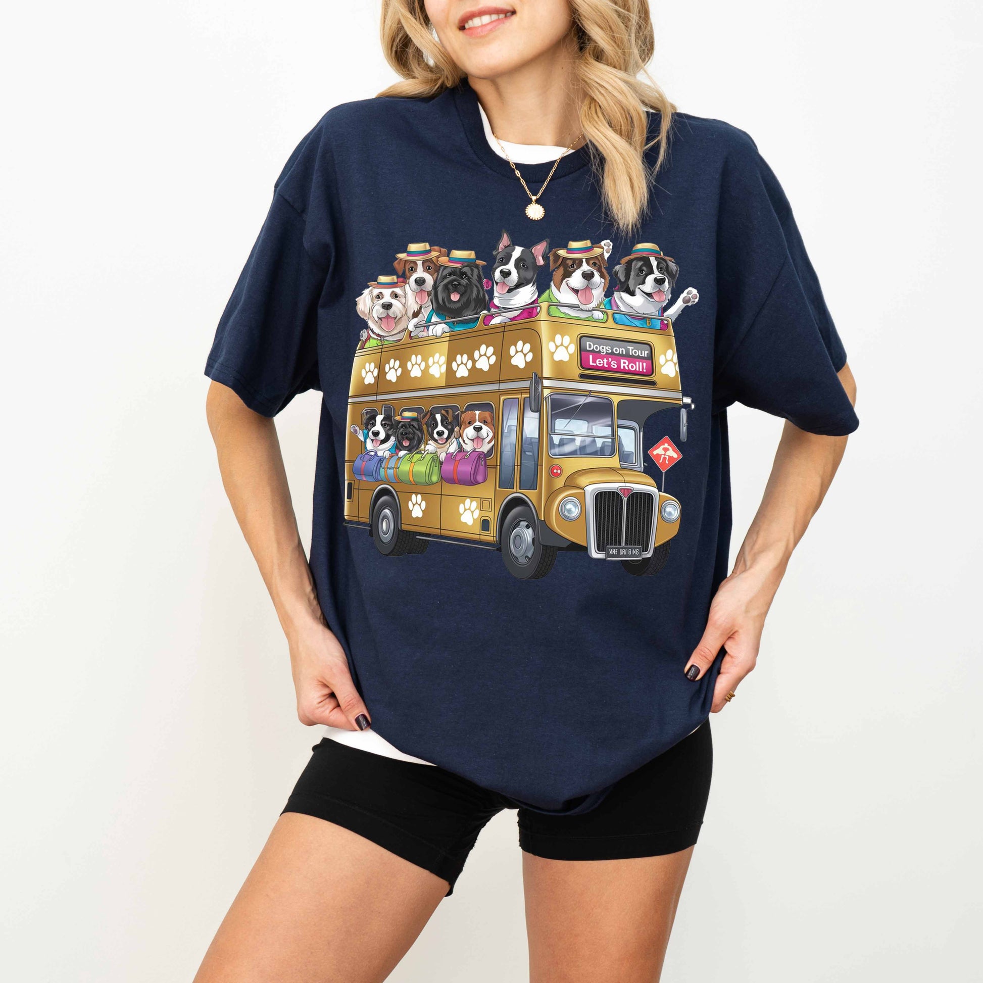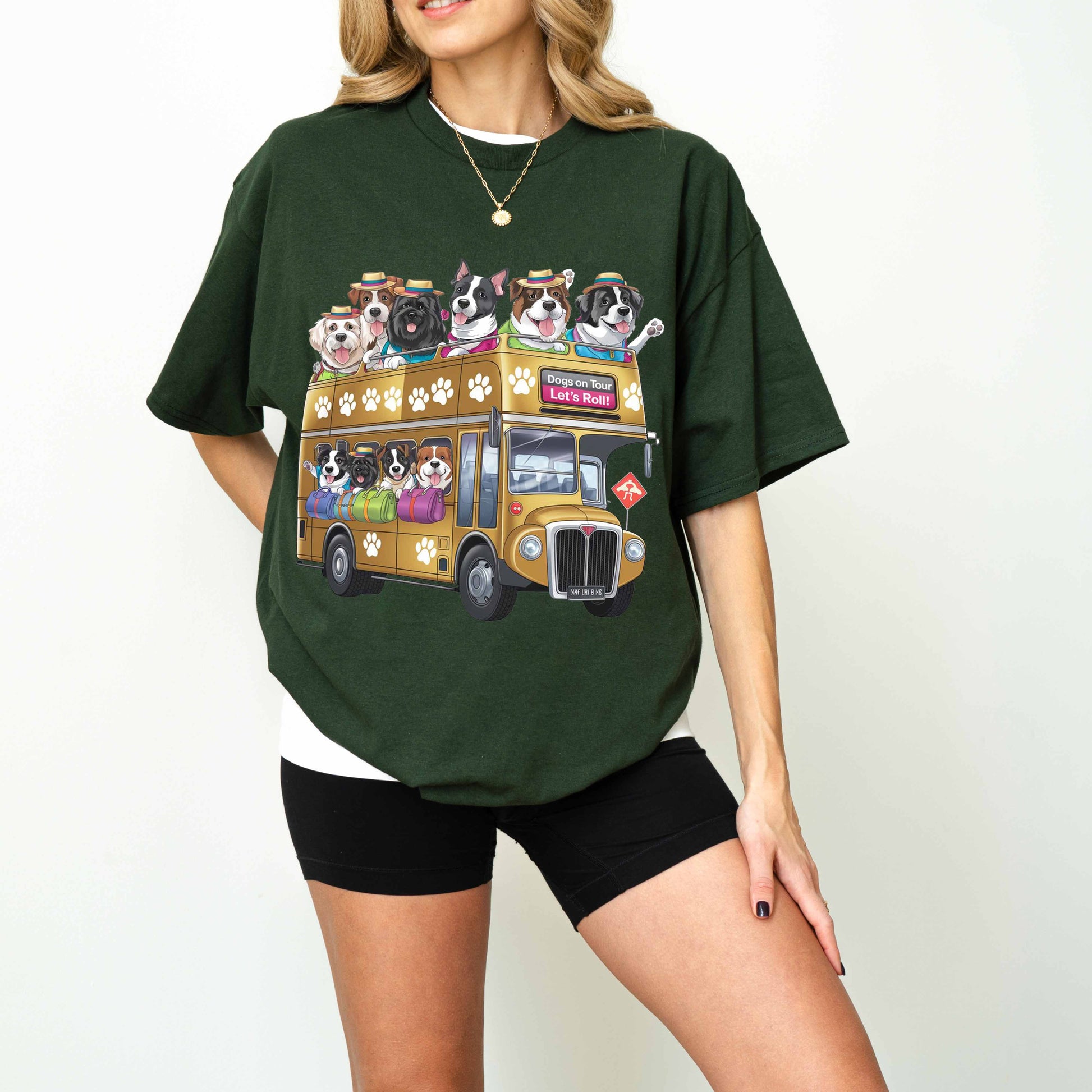 Dogs on Tour Let’s Roll Funny Dog Bus T-Shirt