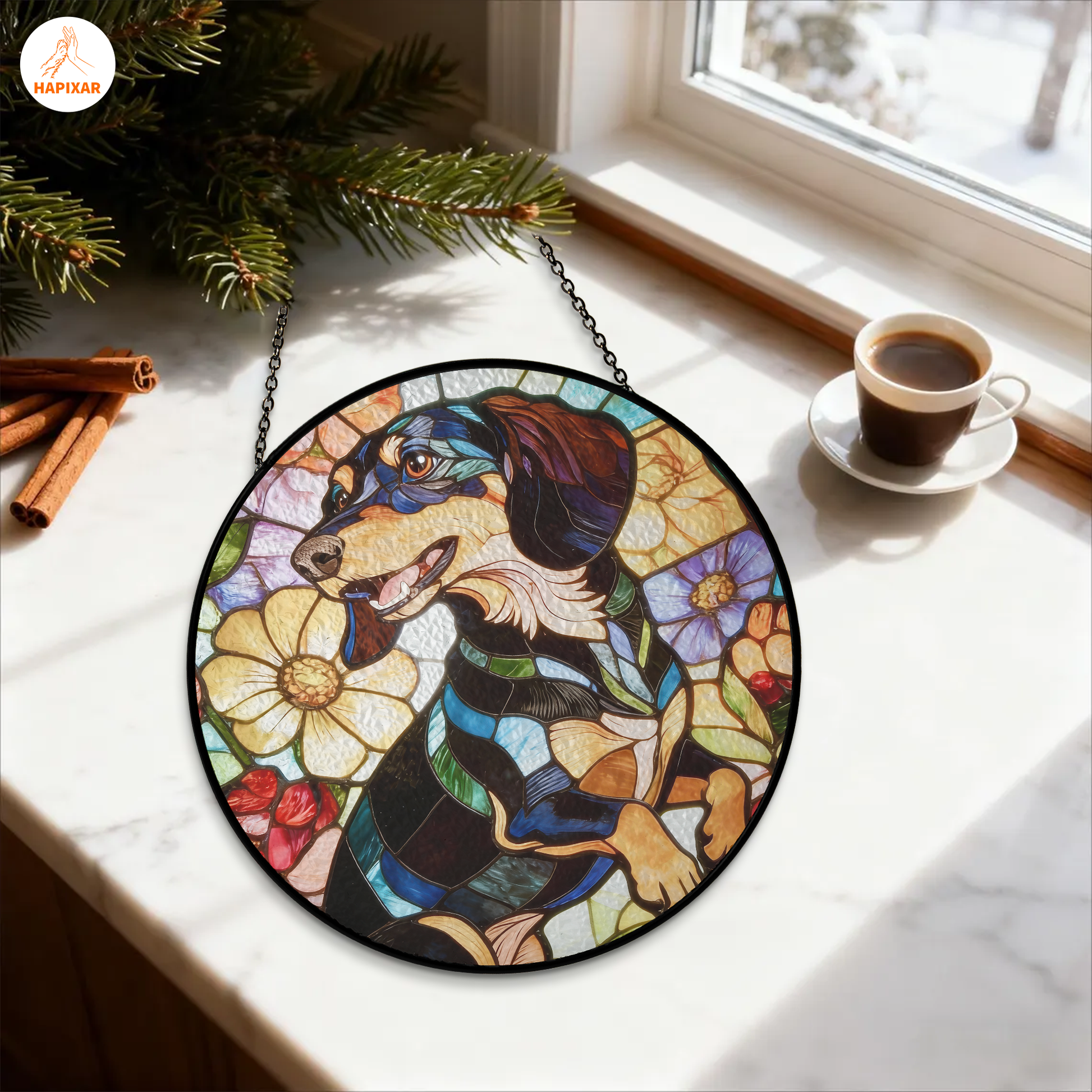 Floral Dachshund Glass Suncatcher – Stained Glass Window Decor Gift for Dog Lovers