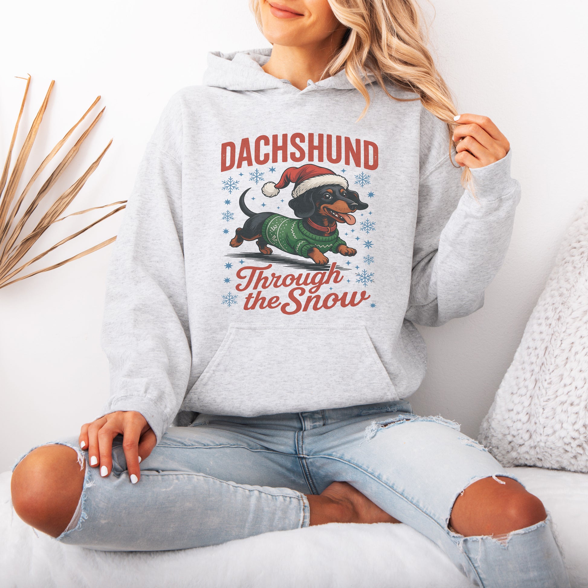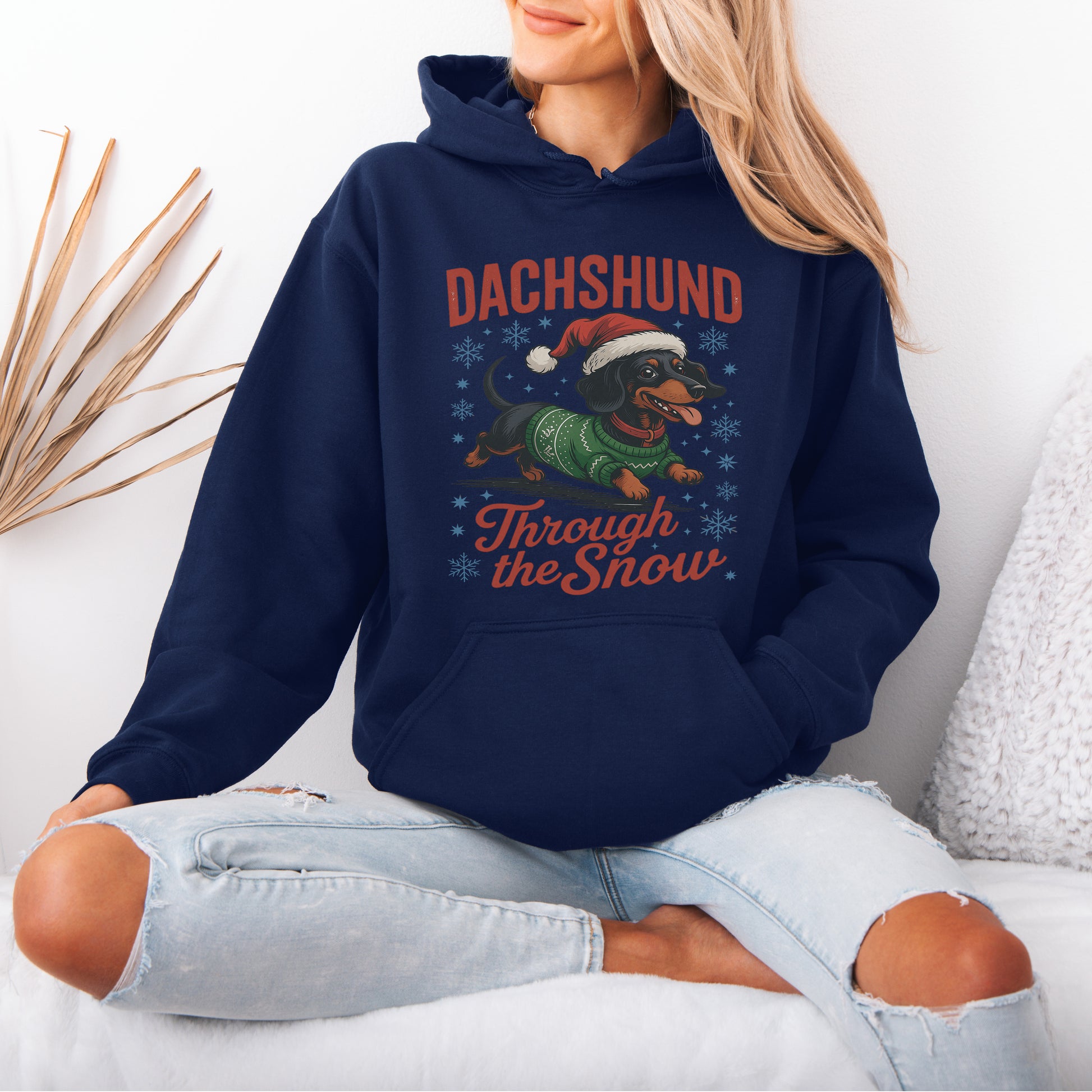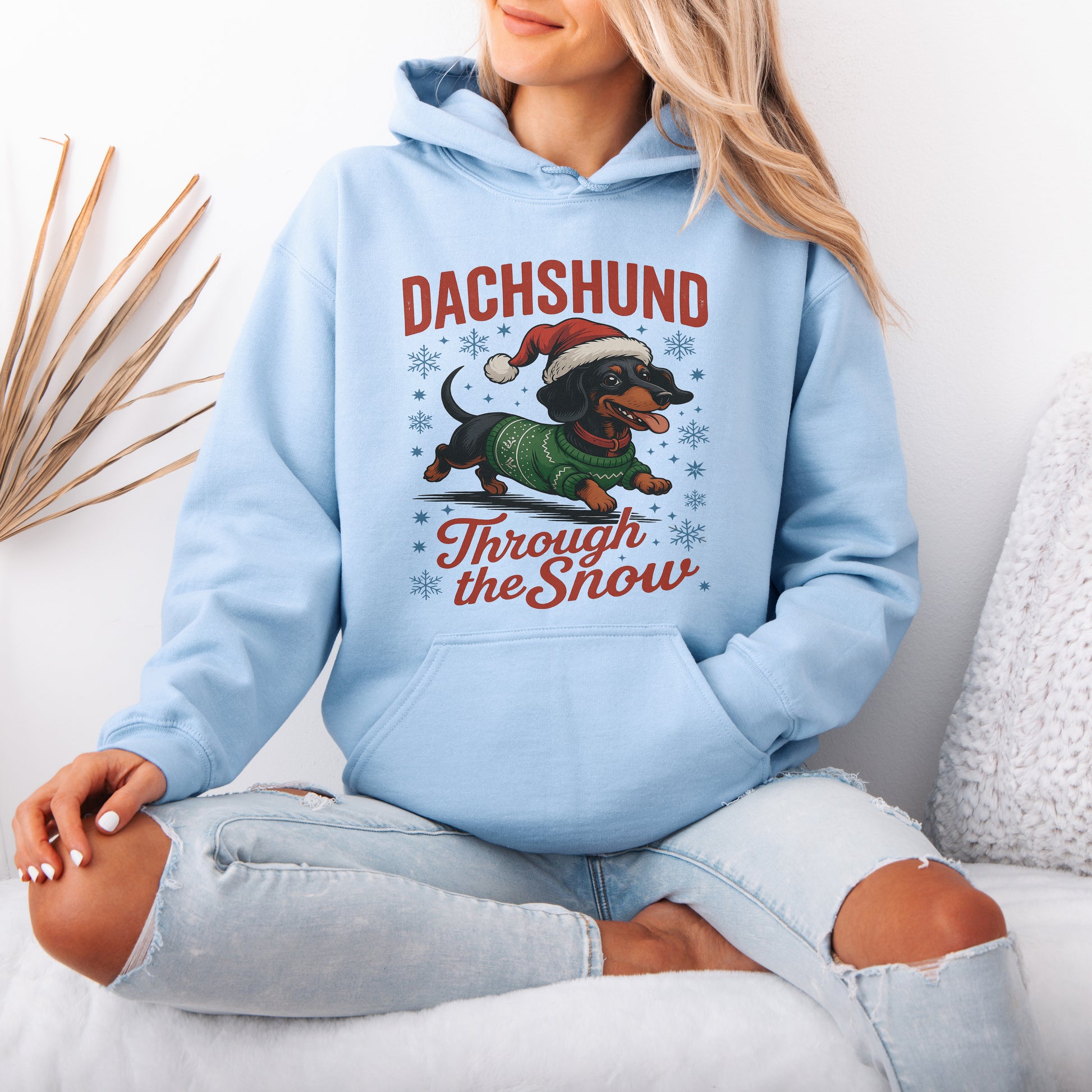 Funny Dachshund Christmas Hoodie – “Through The Snow” Wiener Dog Hoodie , Cute Holiday Gift for Dog Lovers