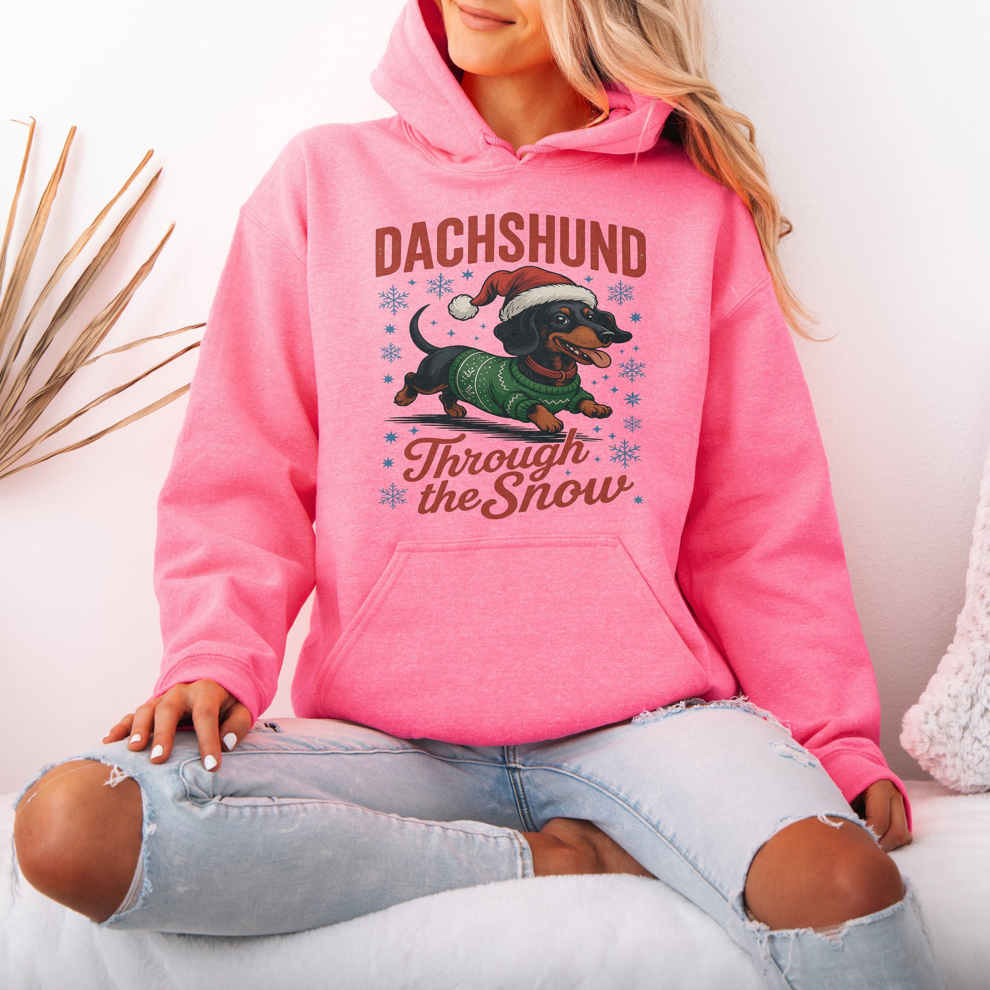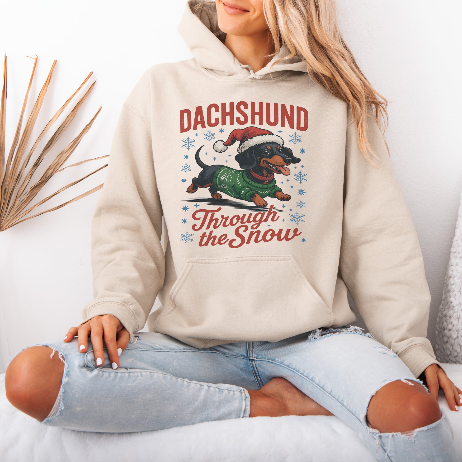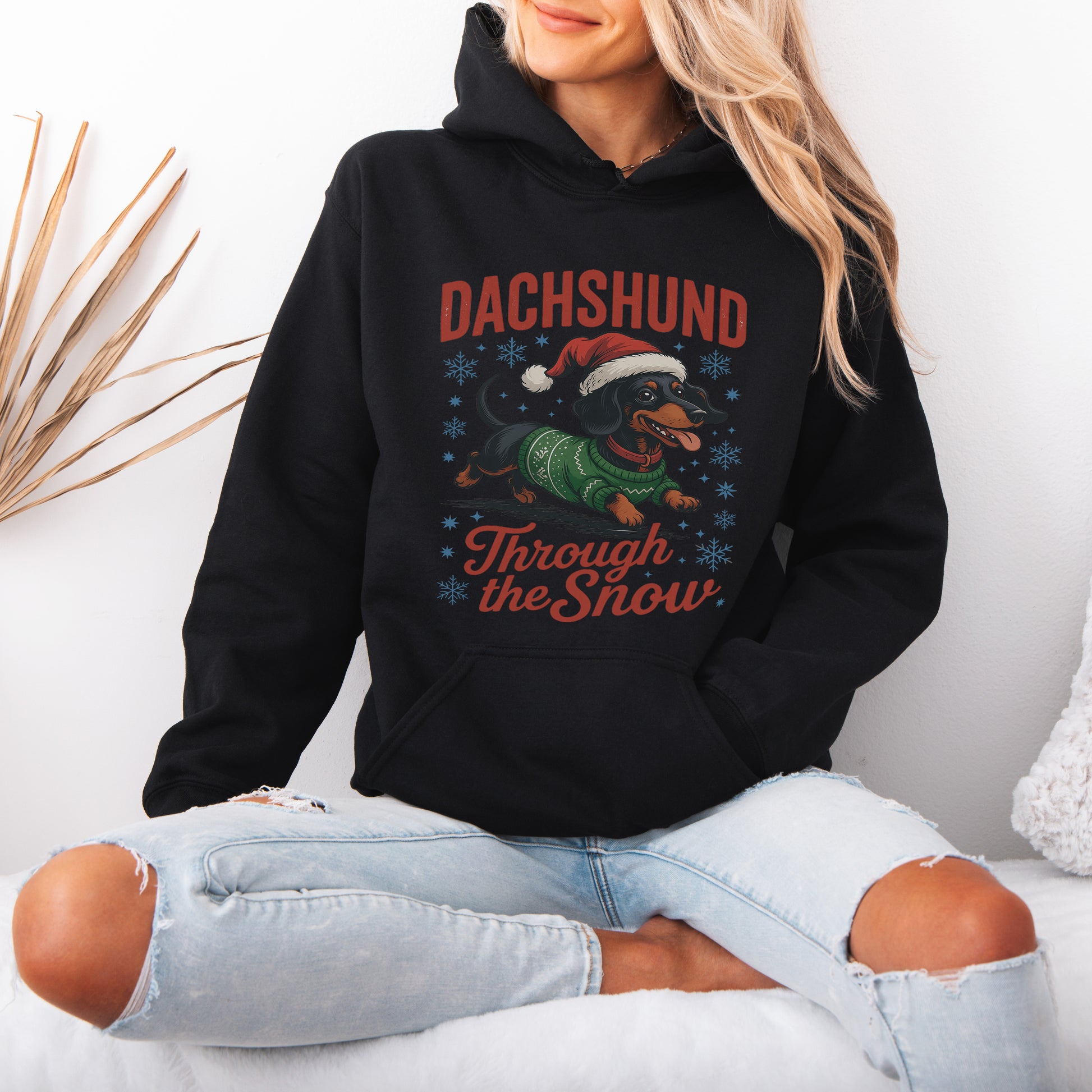 Funny Dachshund Christmas Hoodie – “Through The Snow” Wiener Dog Hoodie , Cute Holiday Gift for Dog Lovers