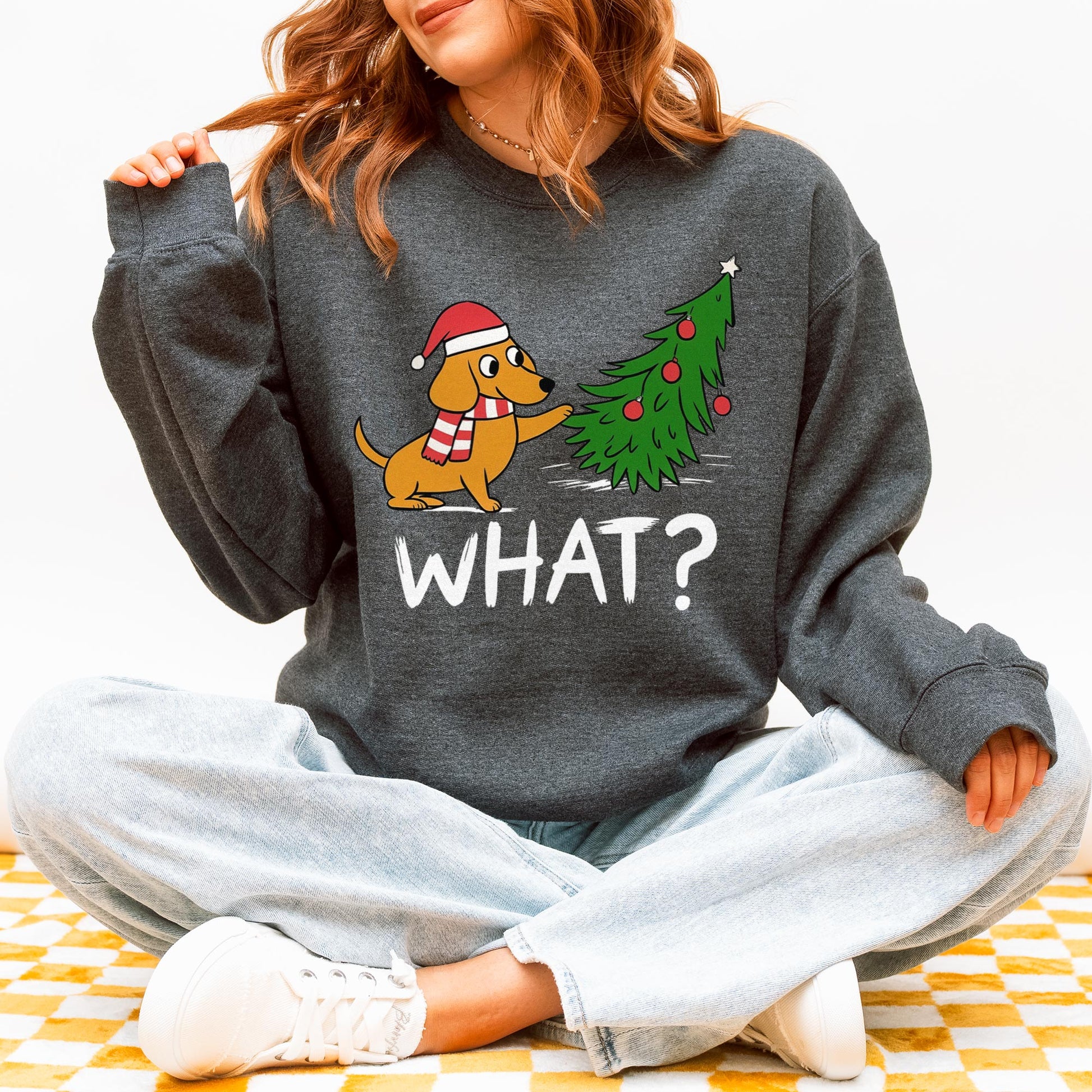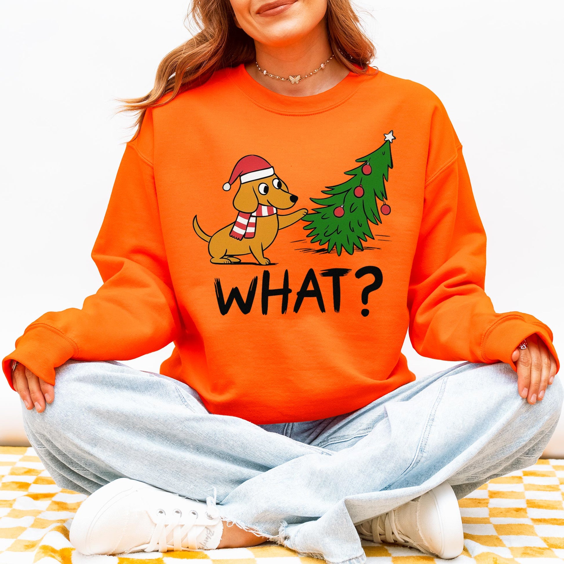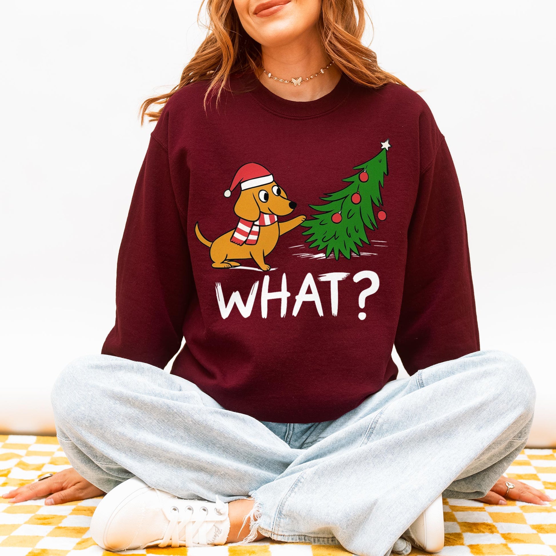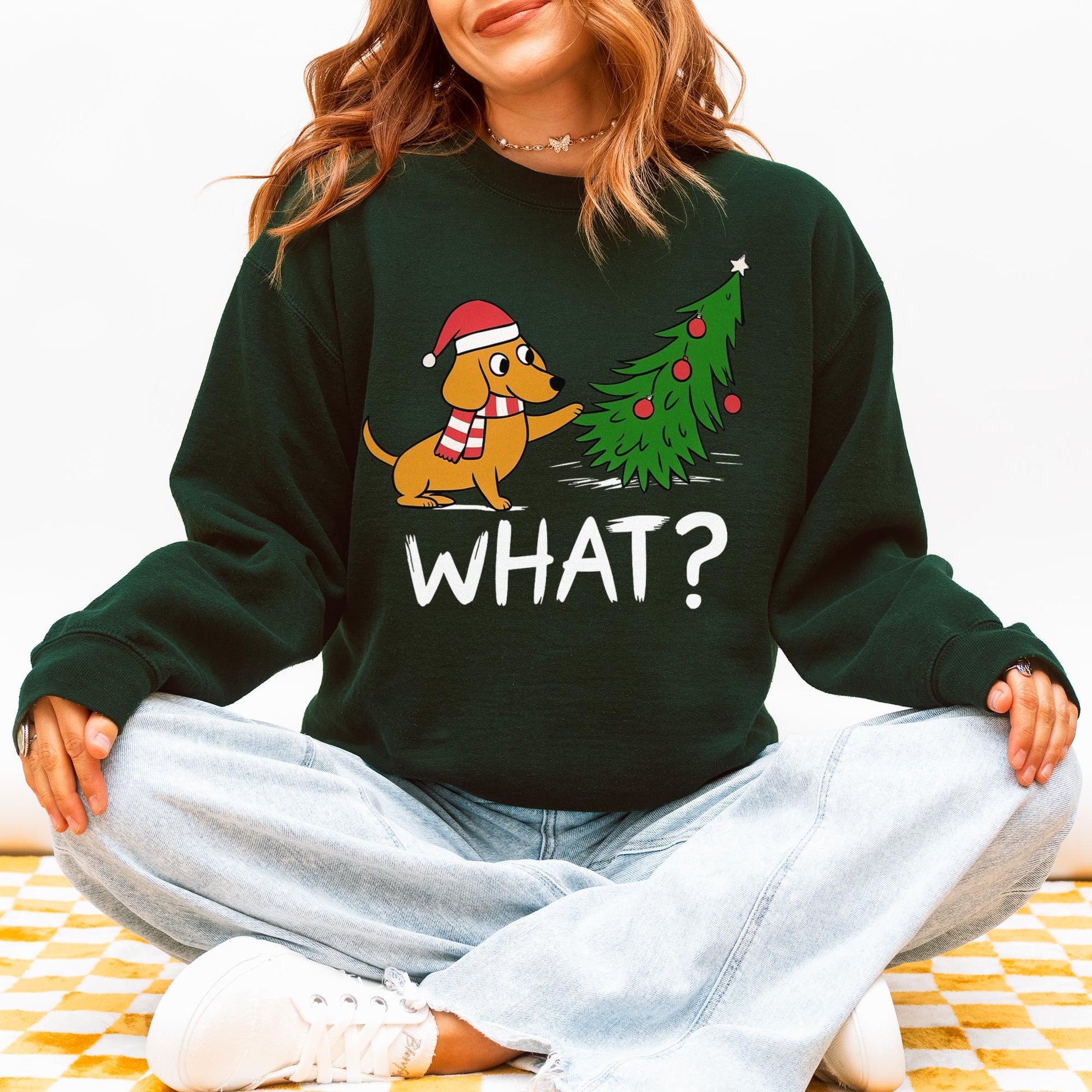 Funny What? Dachshund Christmas Sweatshirt – Cute Wiener Dog Holiday Sweatshirt for Dog Lovers