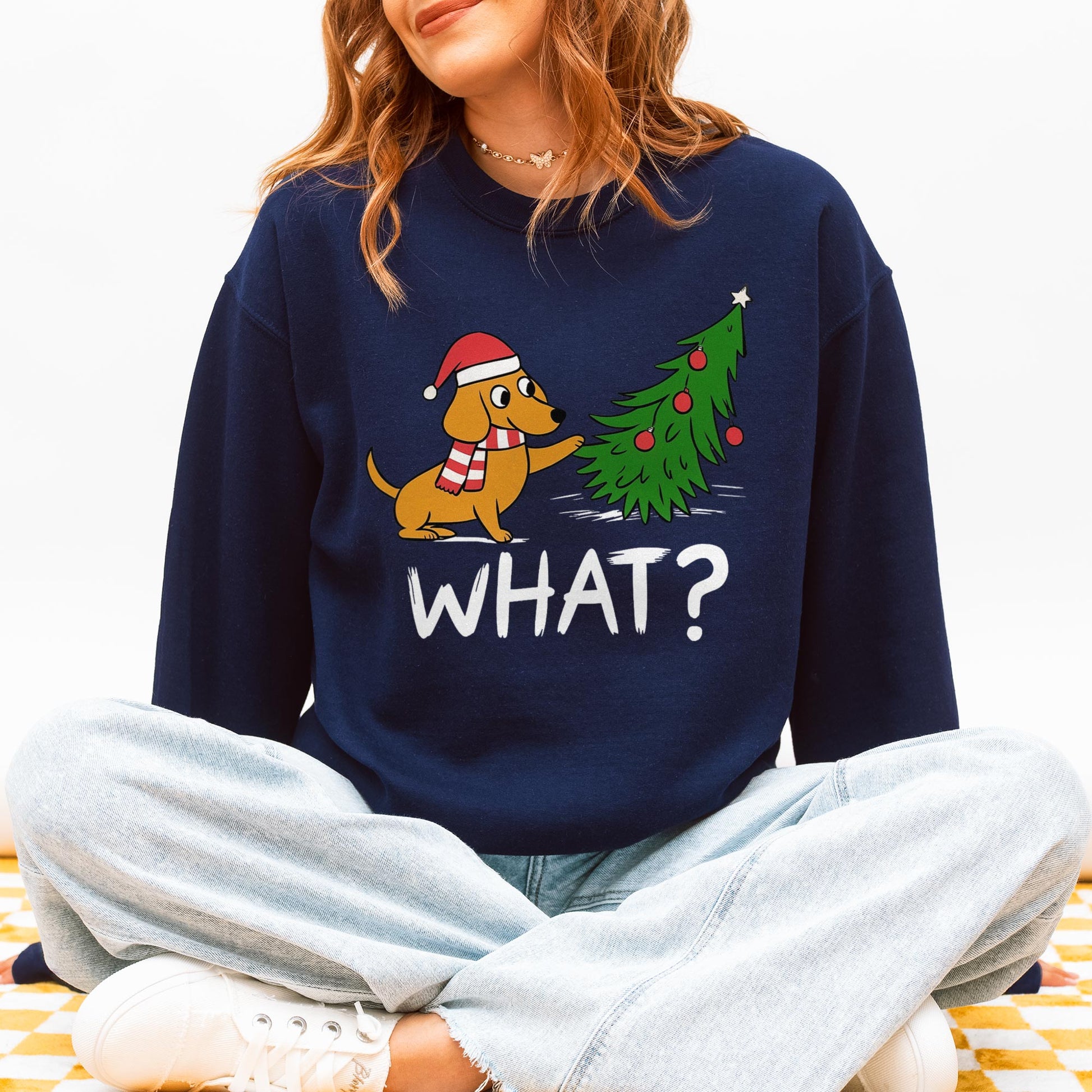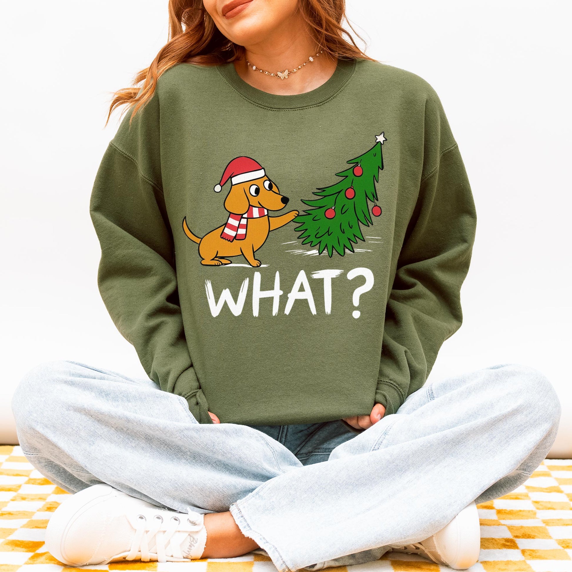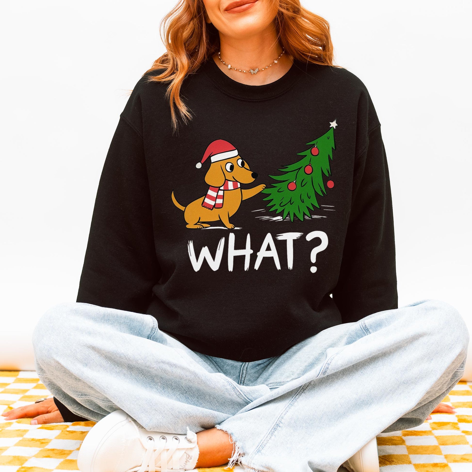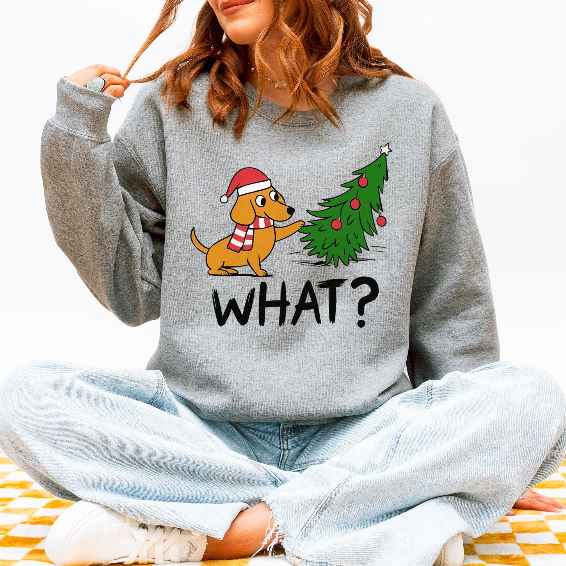 Funny What? Dachshund Christmas Sweatshirt – Cute Wiener Dog Holiday Sweatshirt for Dog Lovers