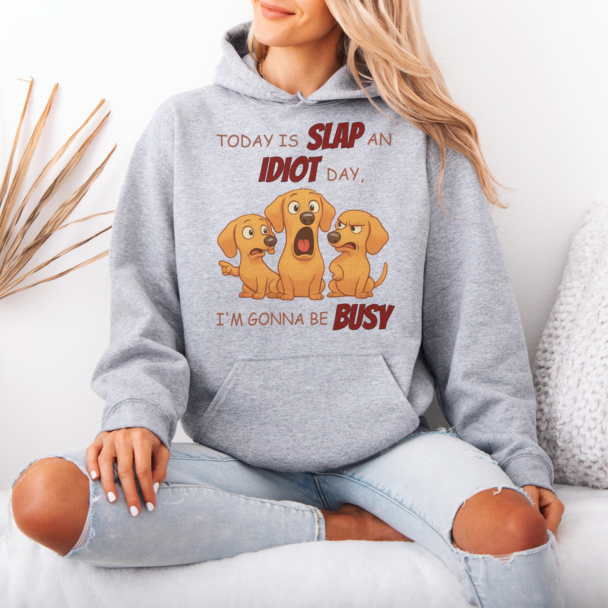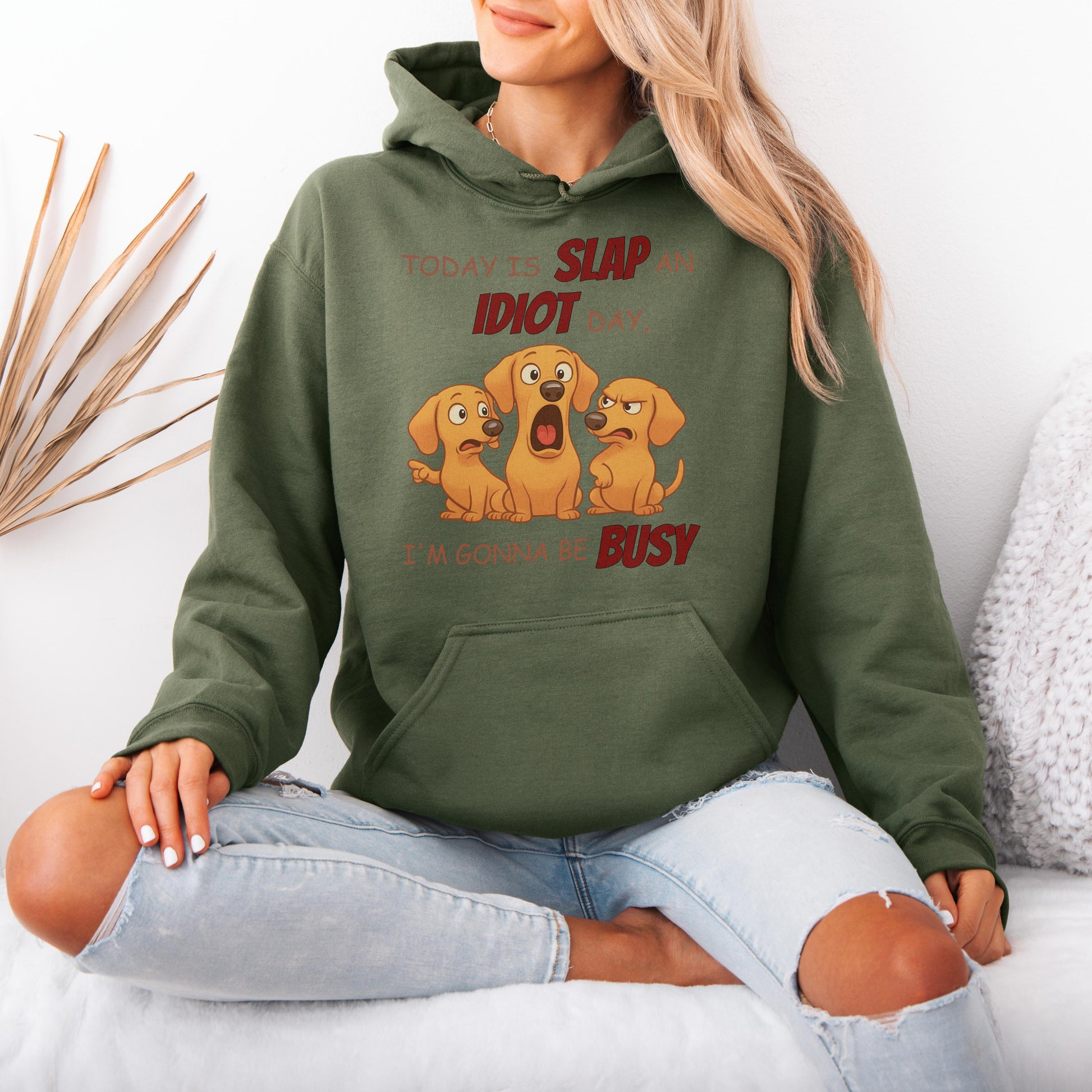 Slap an Idiot Day Dachshund Hoodies – Funny Dachshund Hoodies for Dog Lovers, Cute Dog Mom & Dog Dad Gift