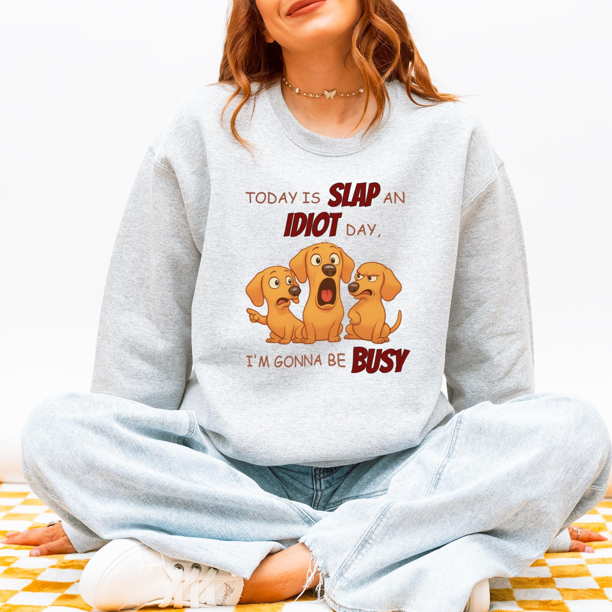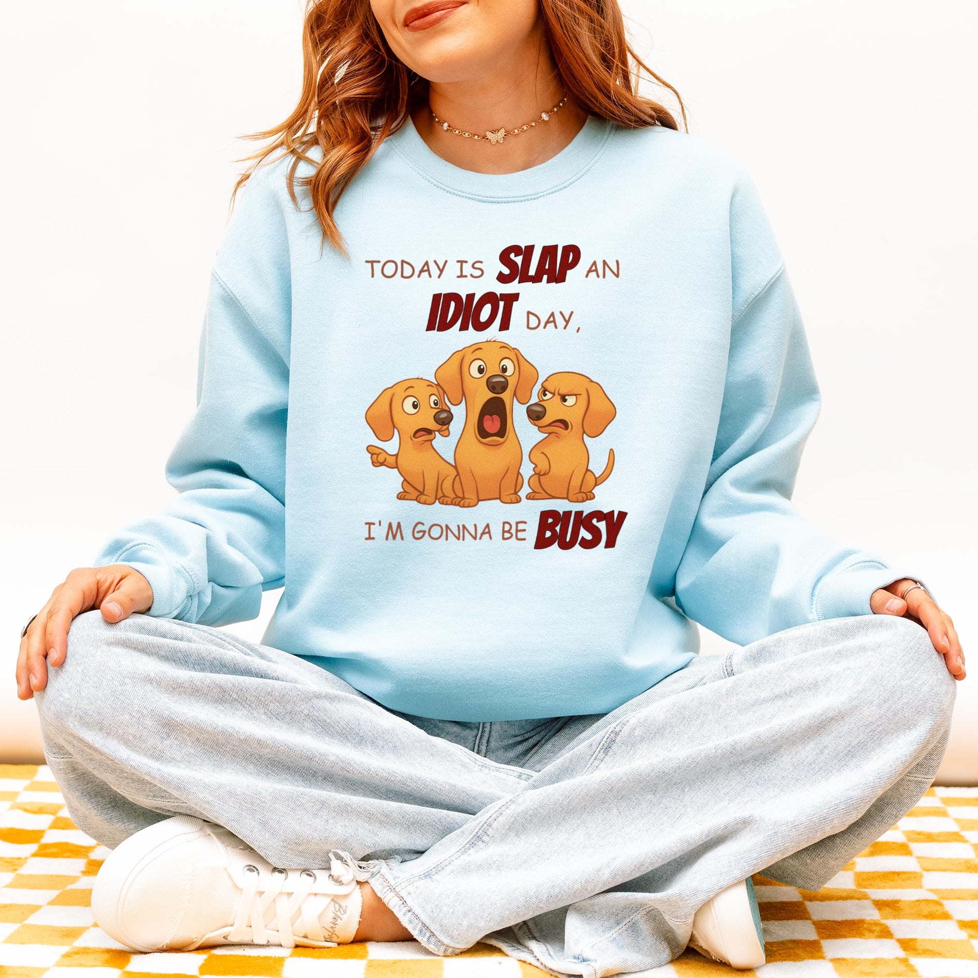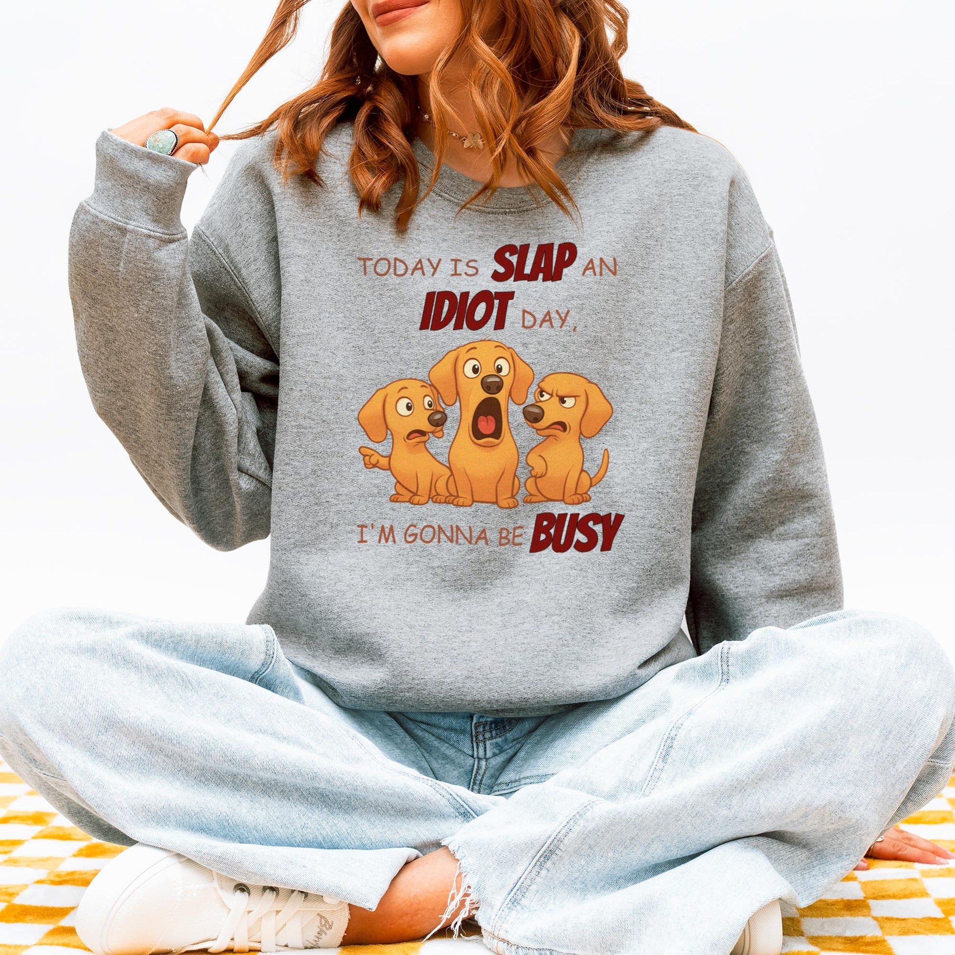 Slap an Idiot Day Dachshund Sweatshirt – Funny Dachshund Sweatshirt for Dog Lovers, Cute Dog Mom & Dog Dad Gift