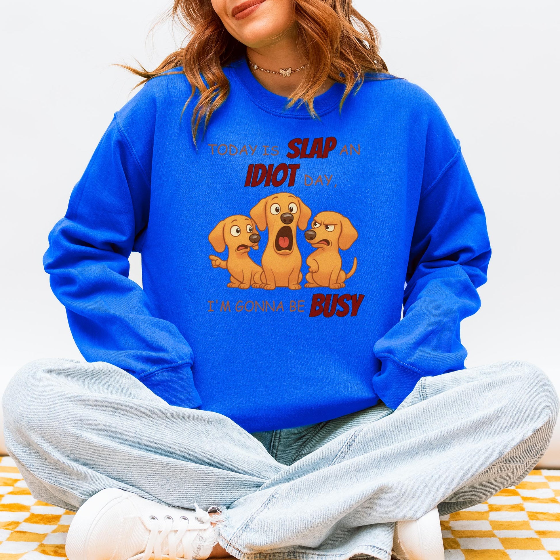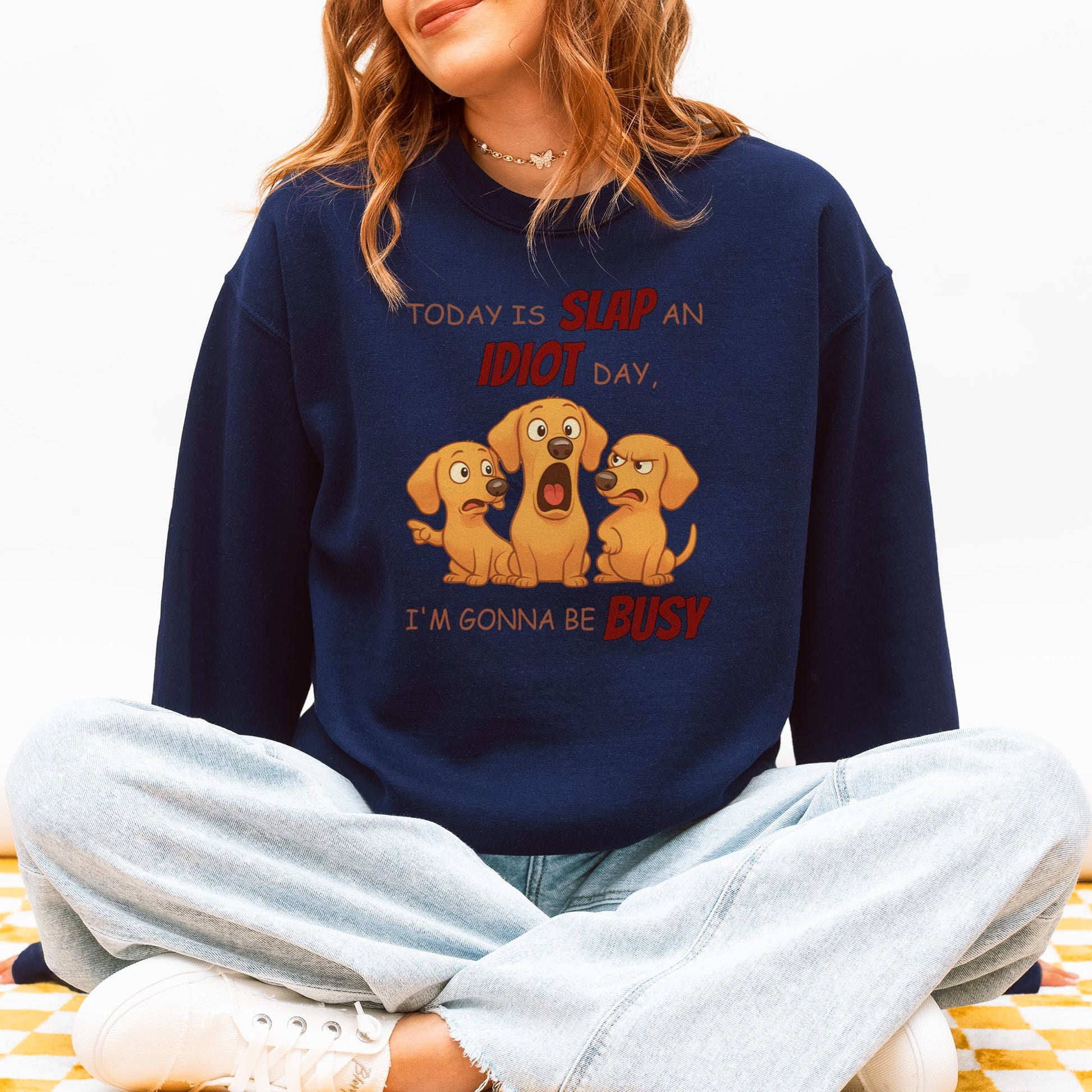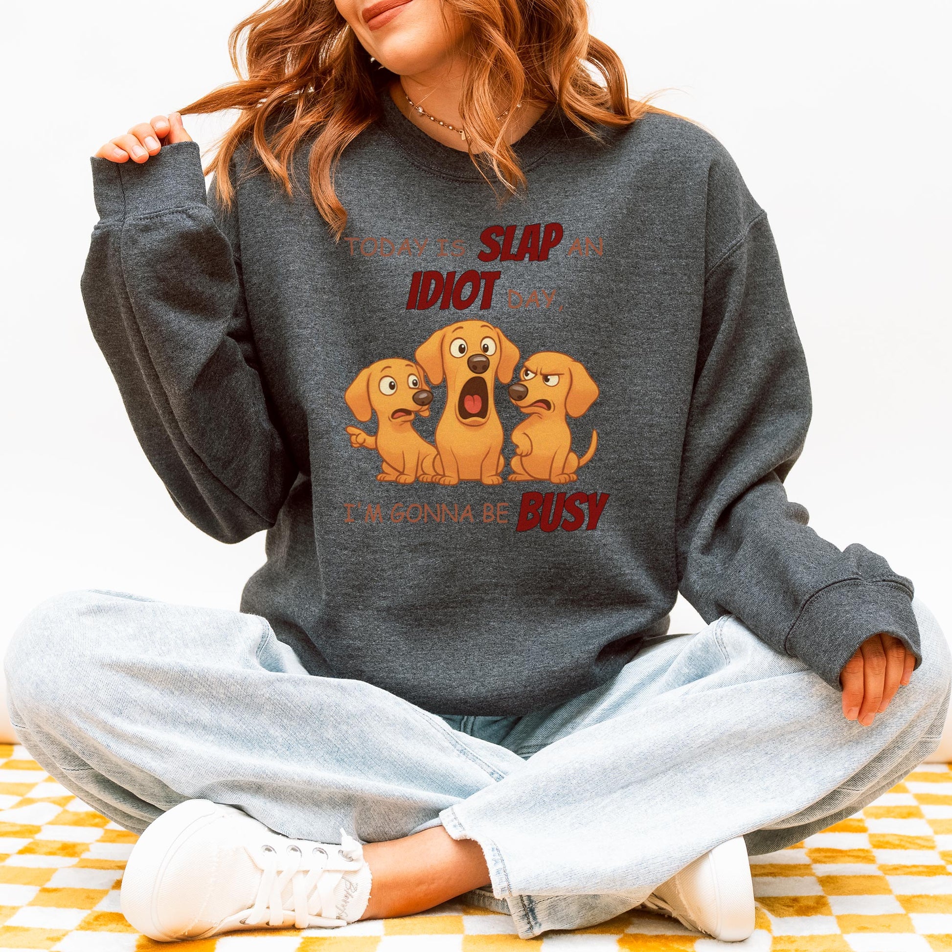 Slap an Idiot Day Dachshund Sweatshirt – Funny Dachshund Sweatshirt for Dog Lovers, Cute Dog Mom & Dog Dad Gift