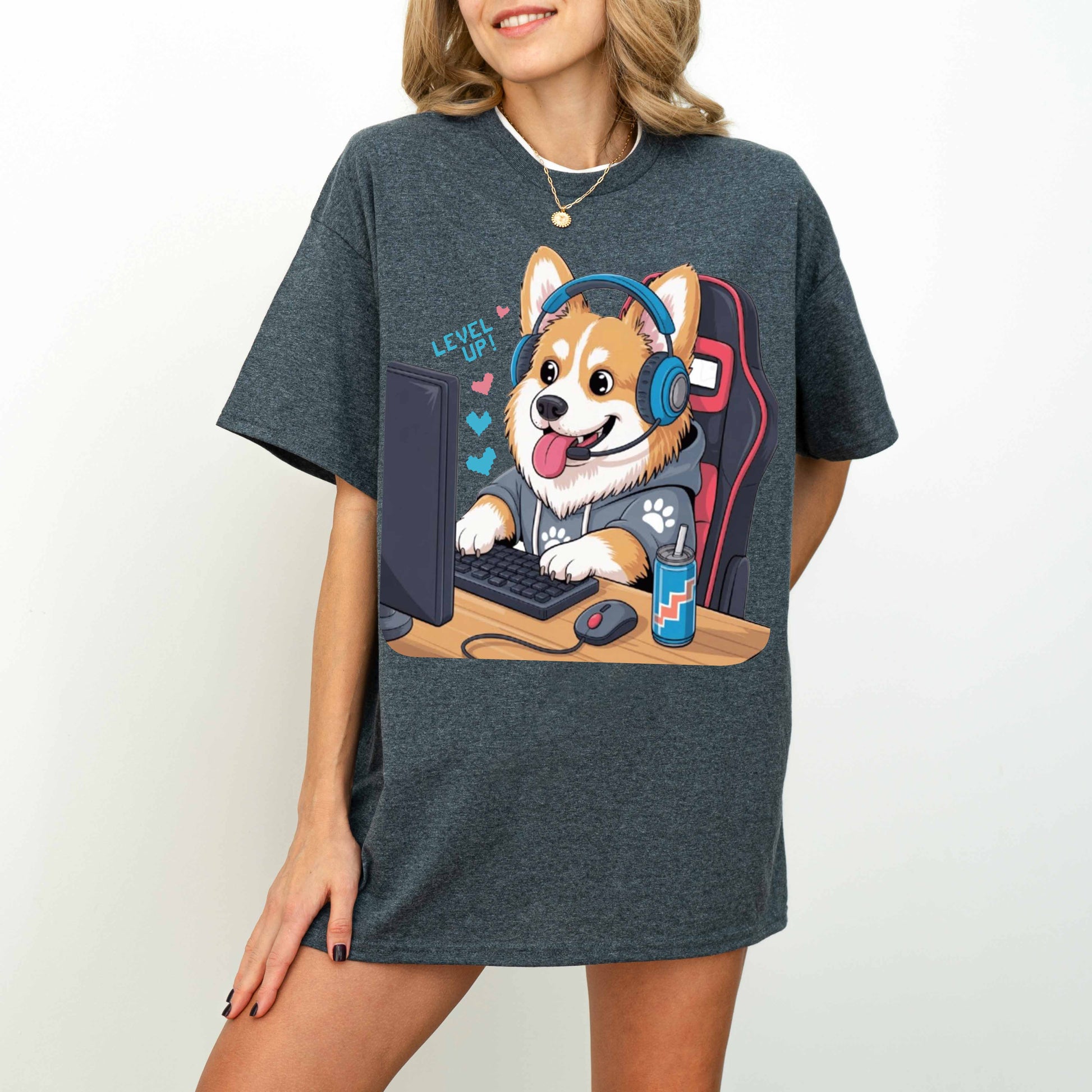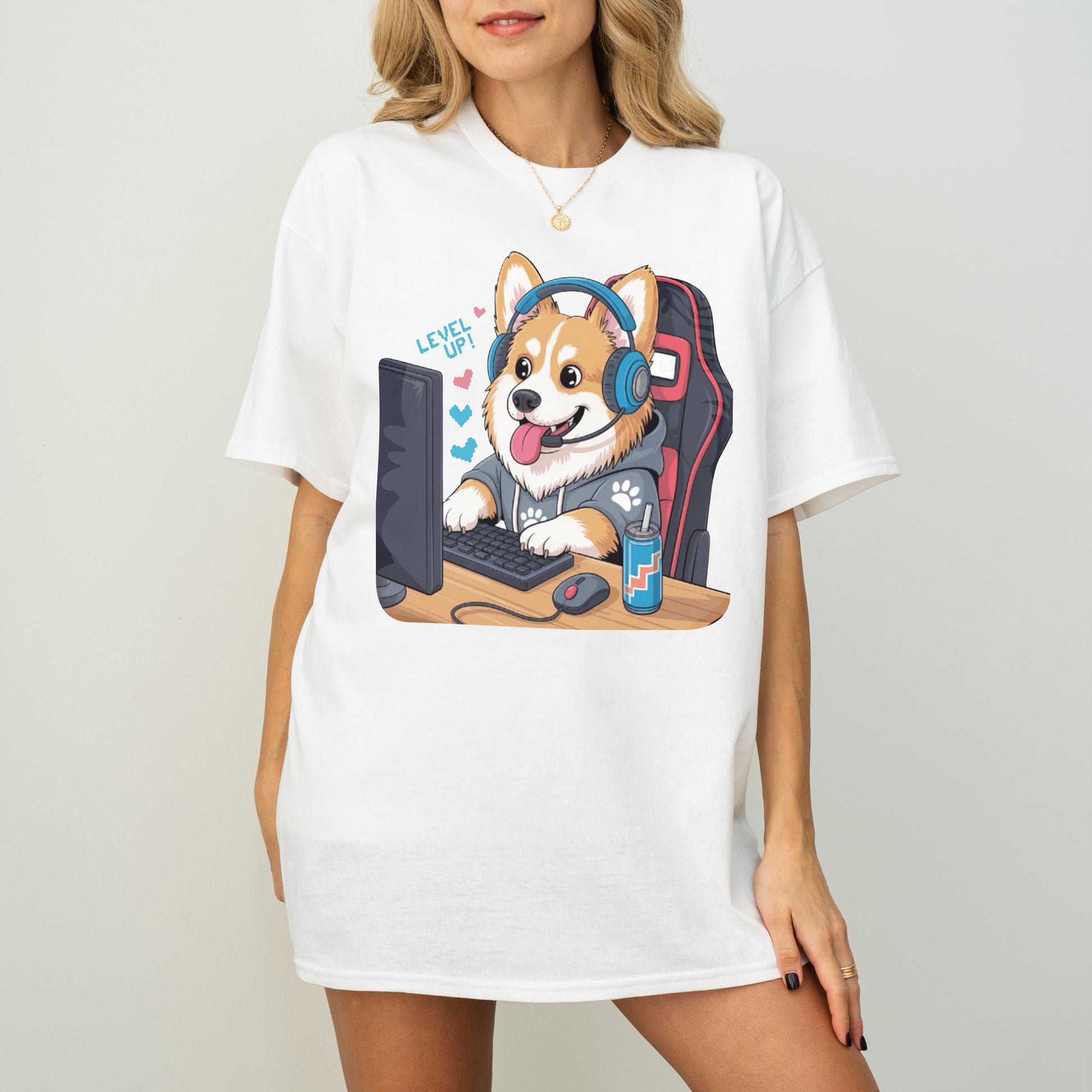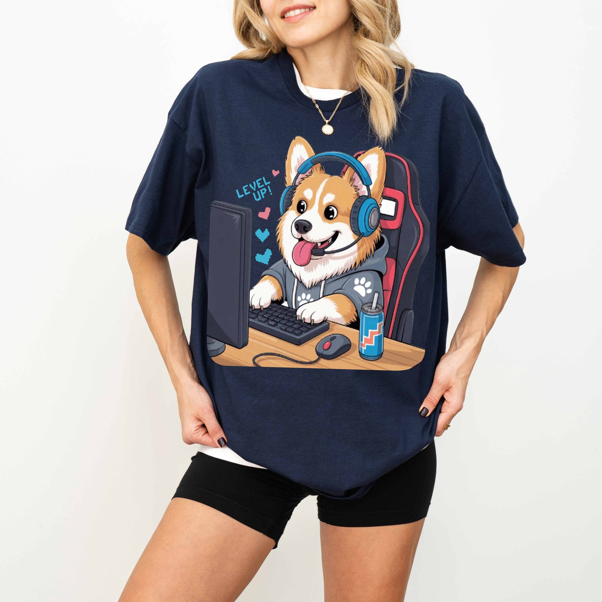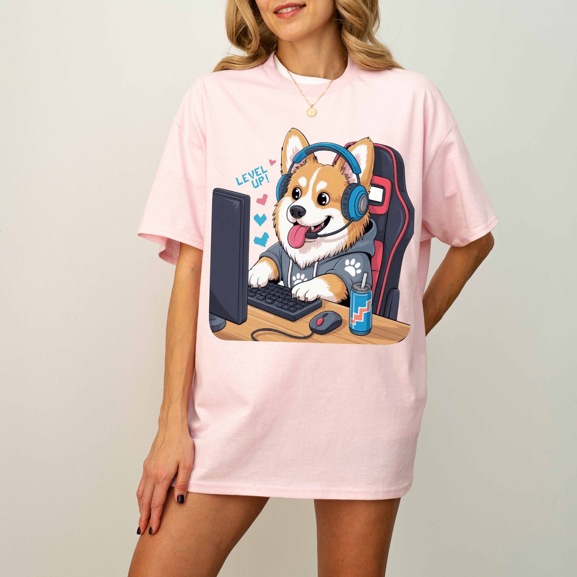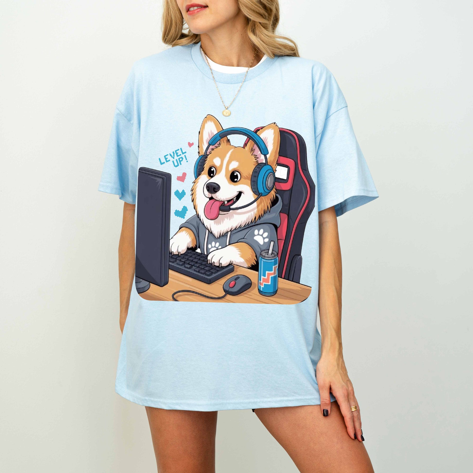 Gamer Corgi Level Up Funny Dog T-Shirt