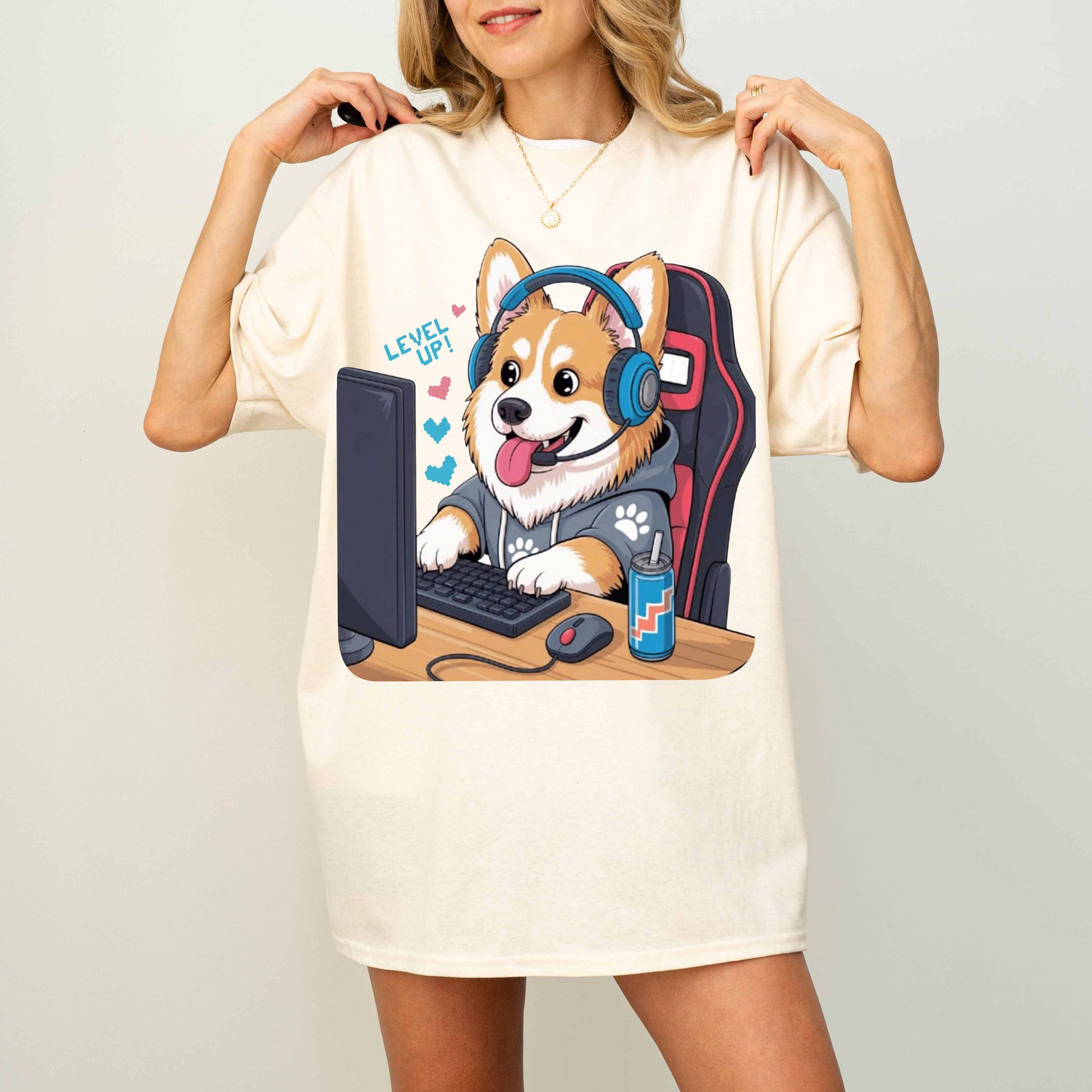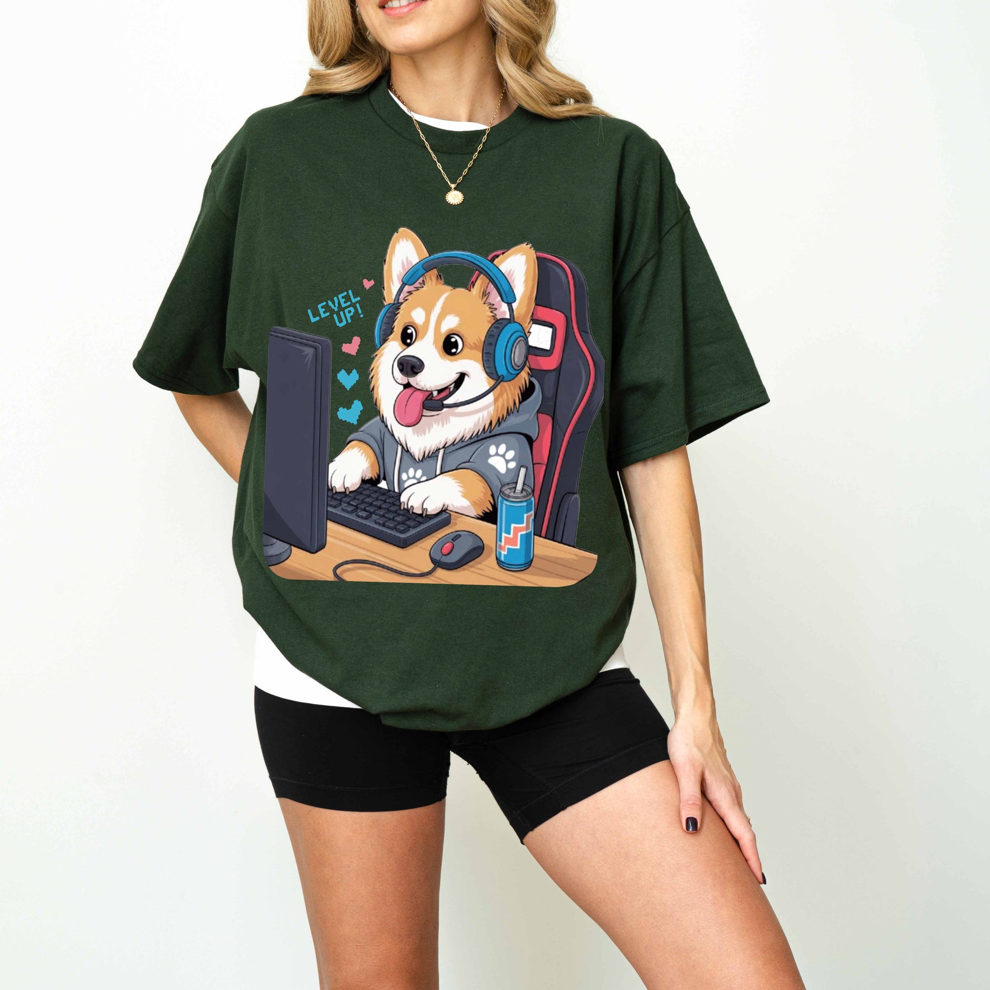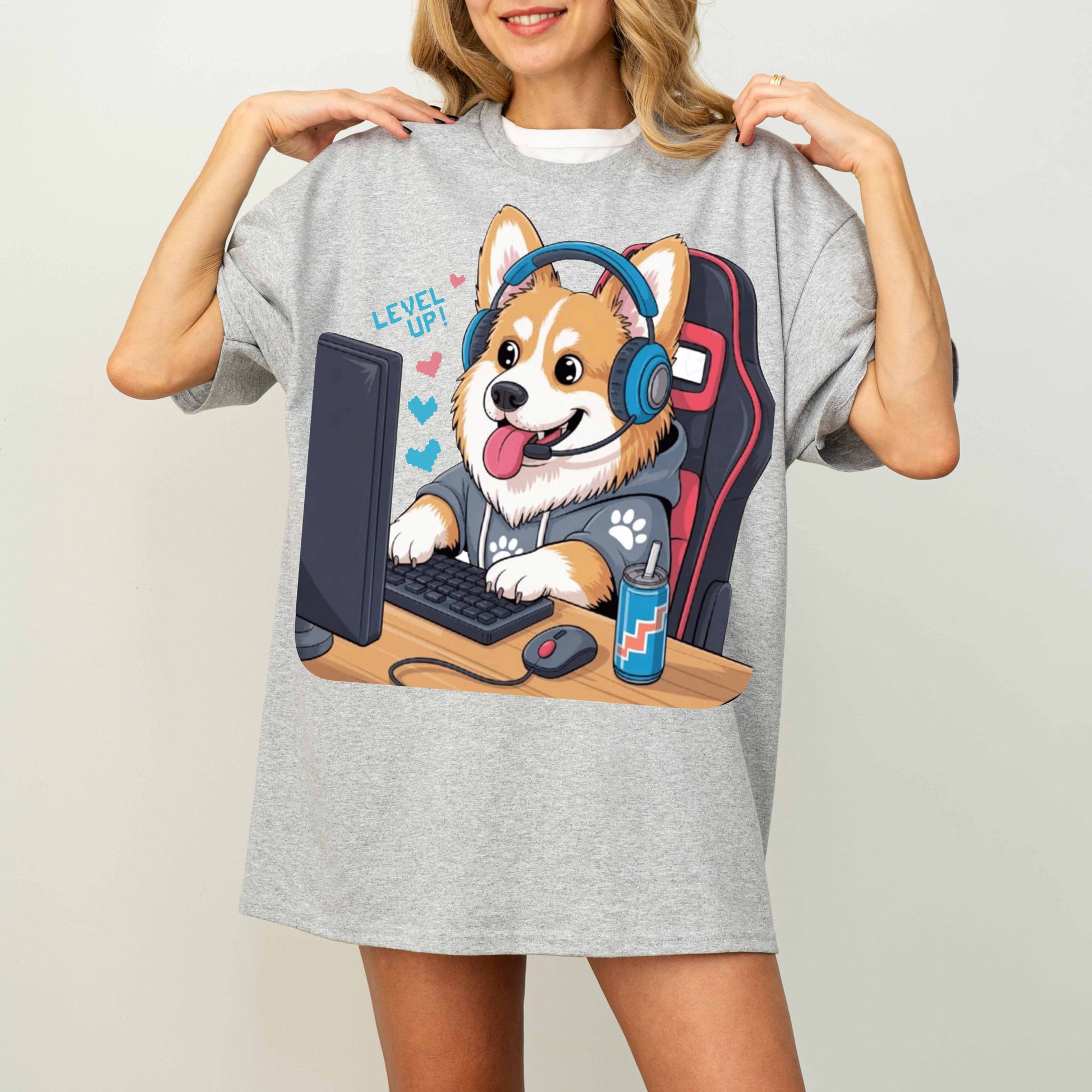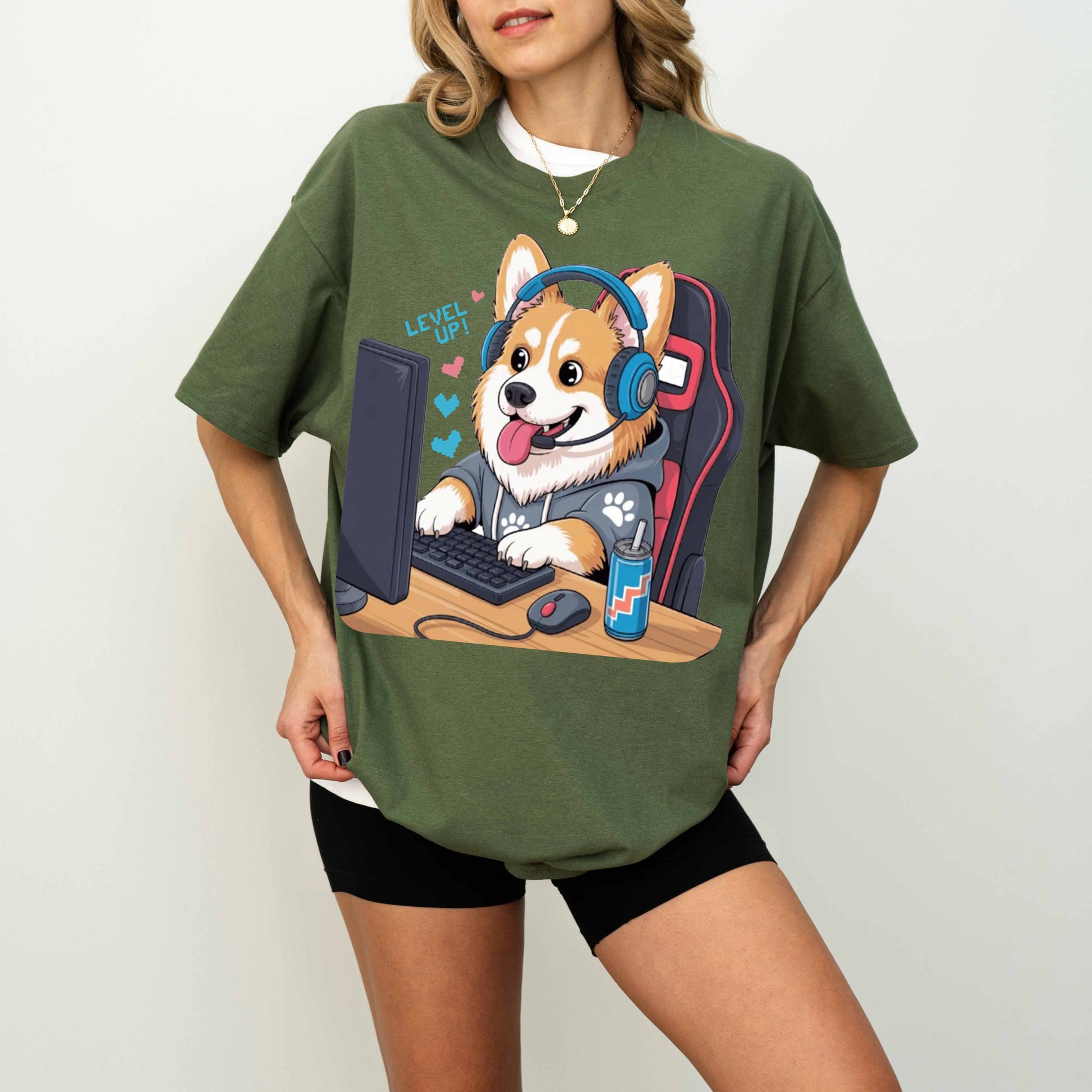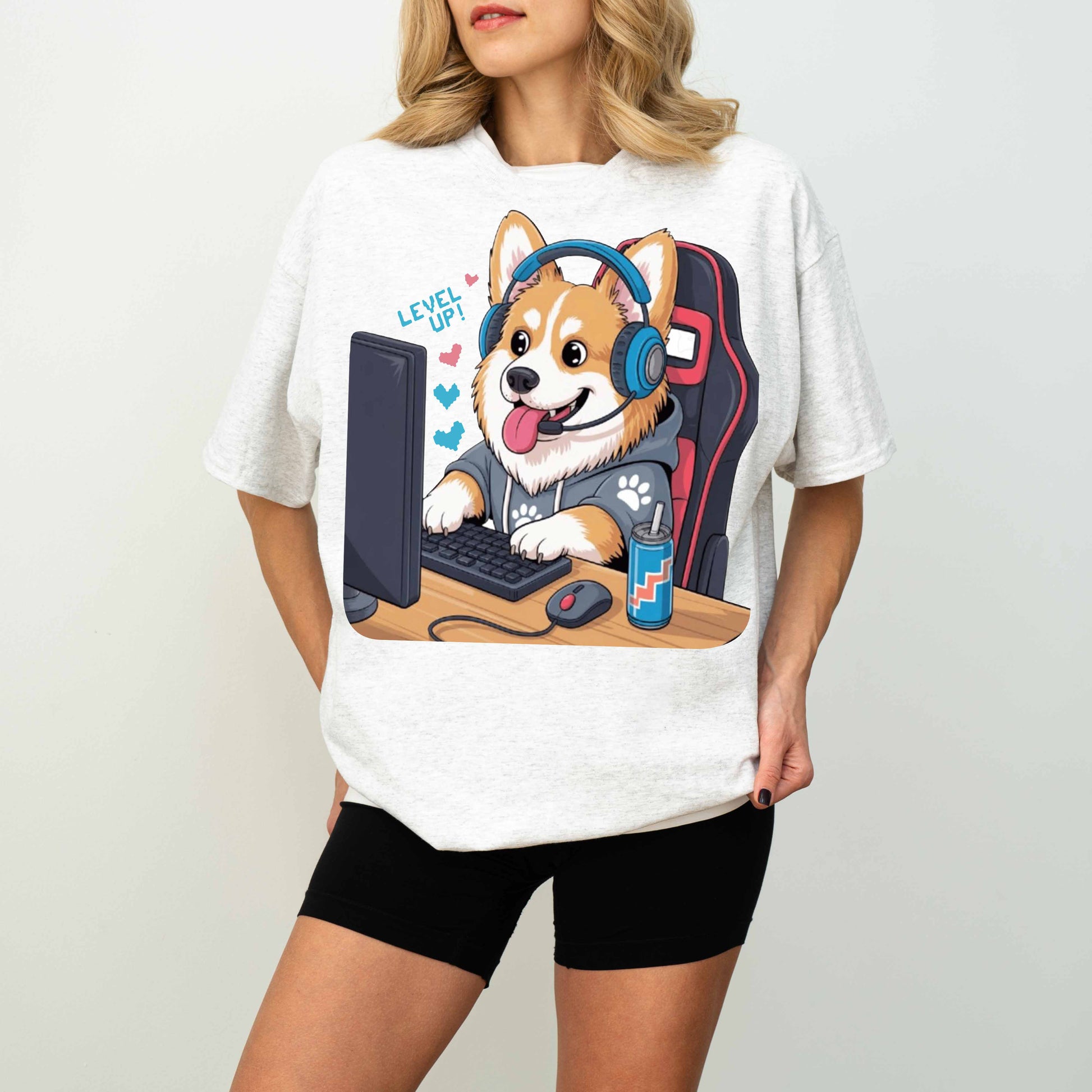 Gamer Corgi Level Up Funny Dog T-Shirt