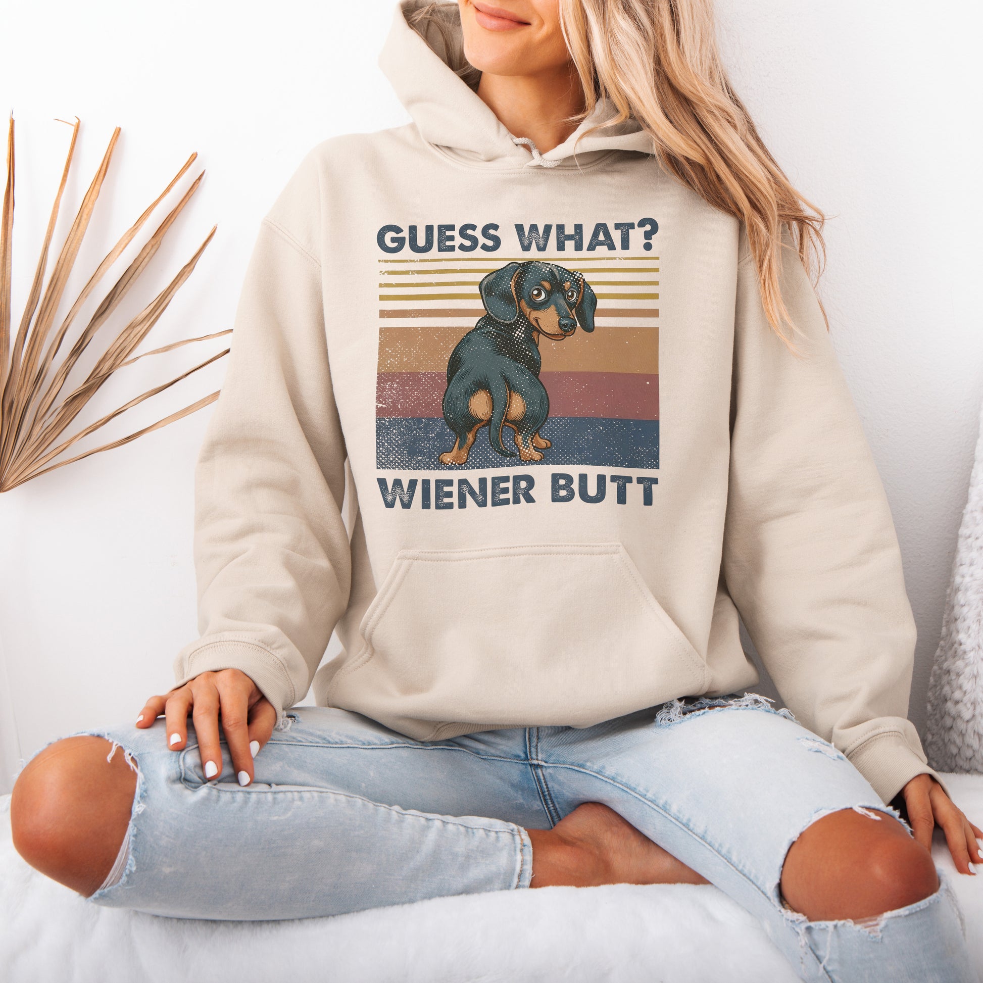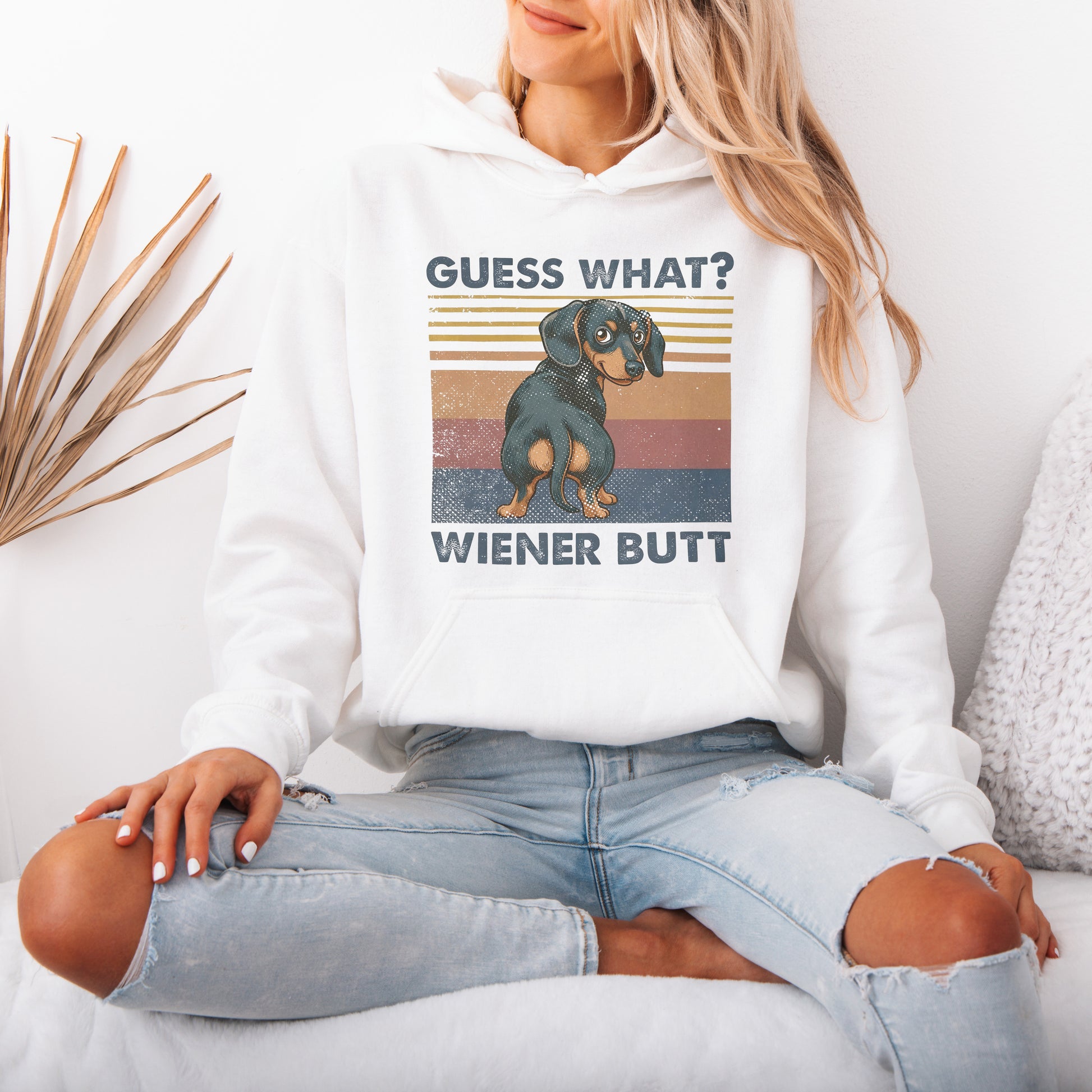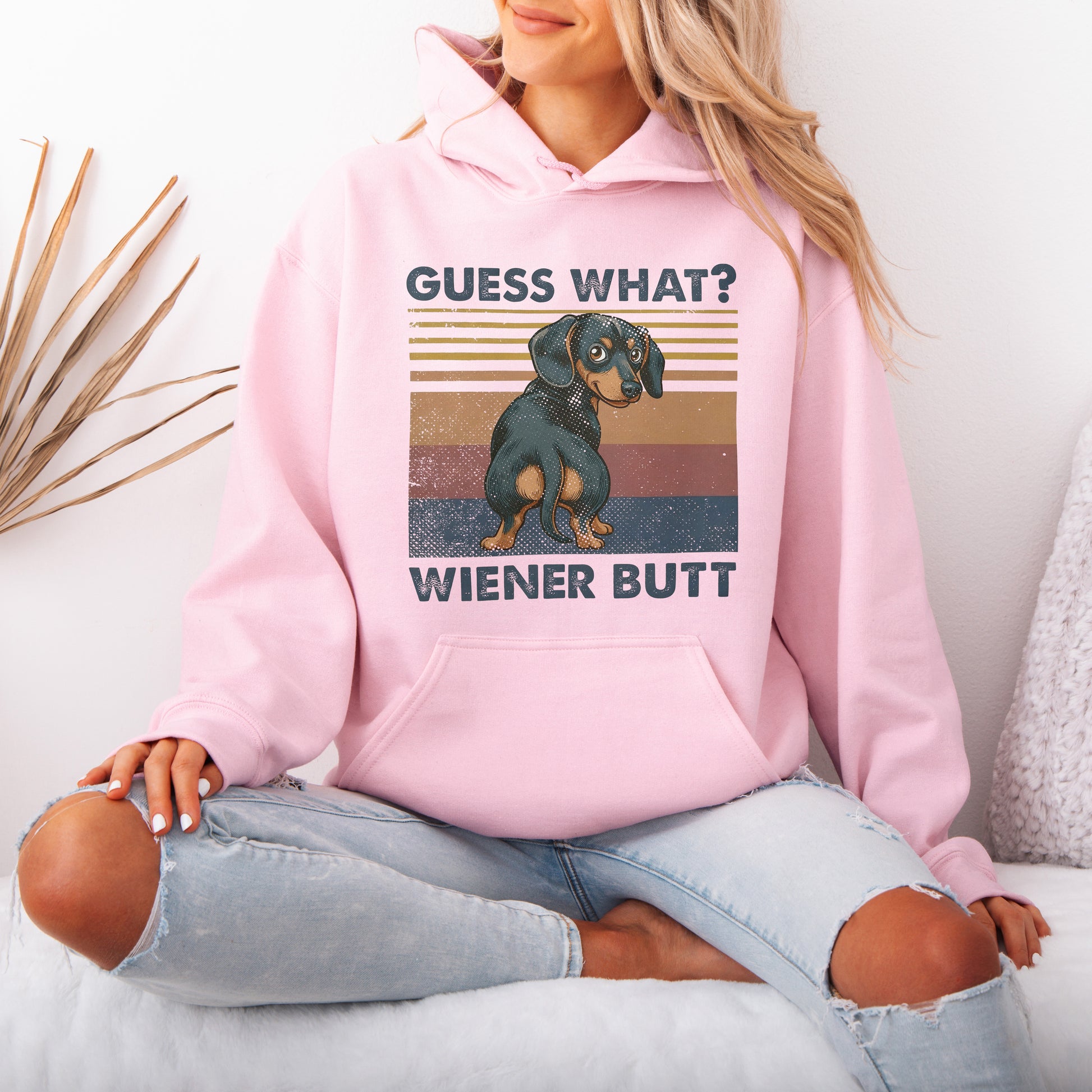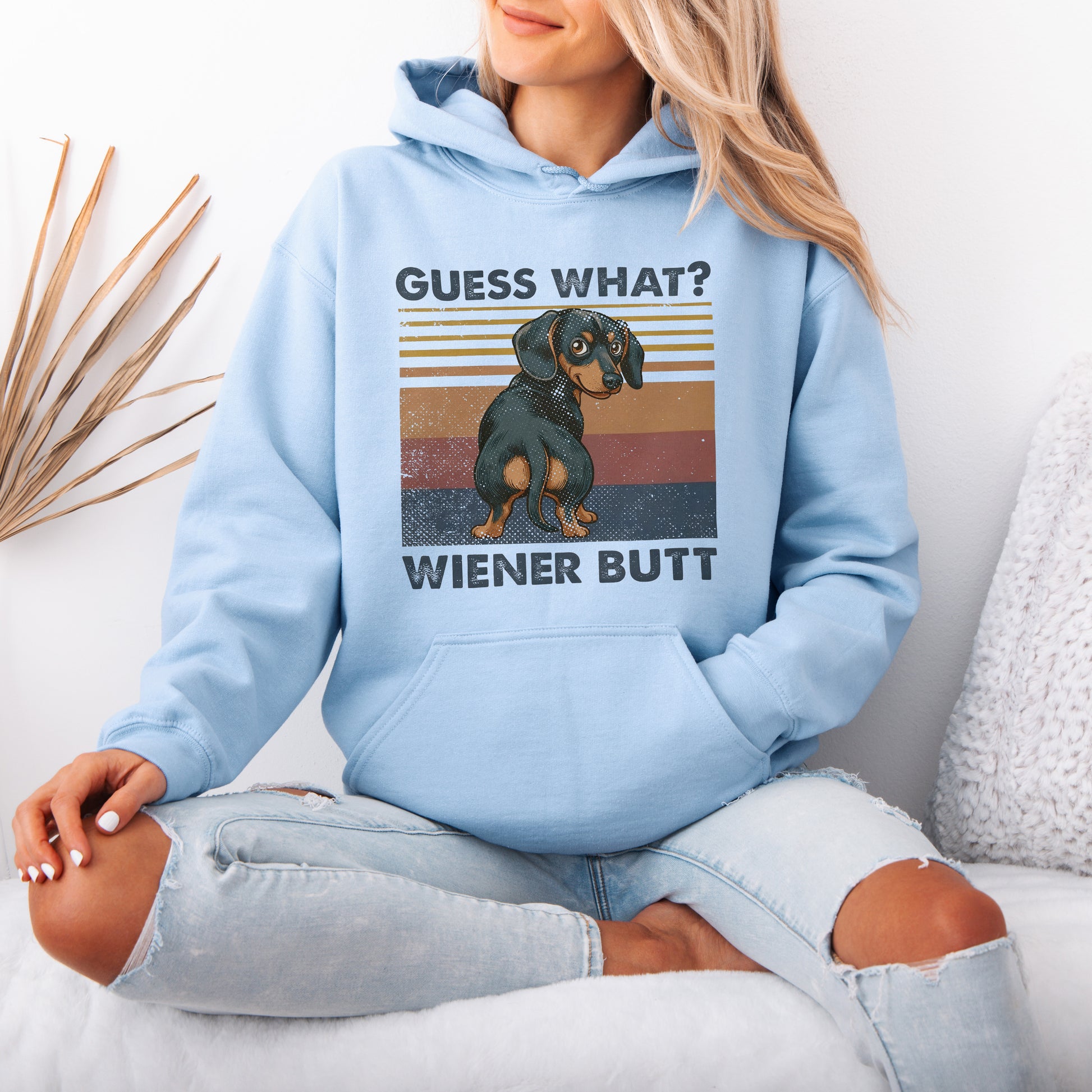Guess What Wiener Butt Dachshund Hoodie – Funny Dachshund Hooded Sweatshirt for Dog Lovers, Cute Doxie Gift