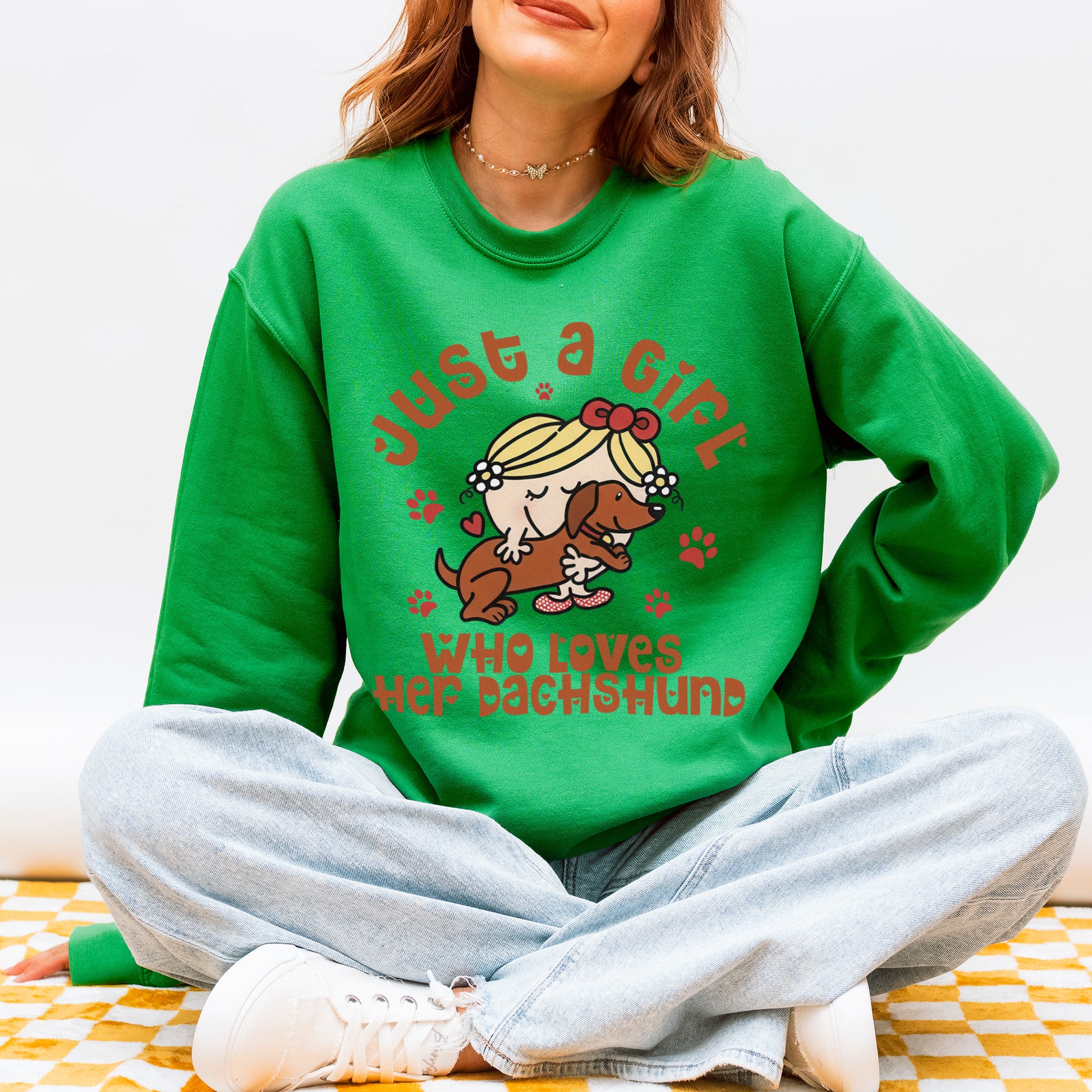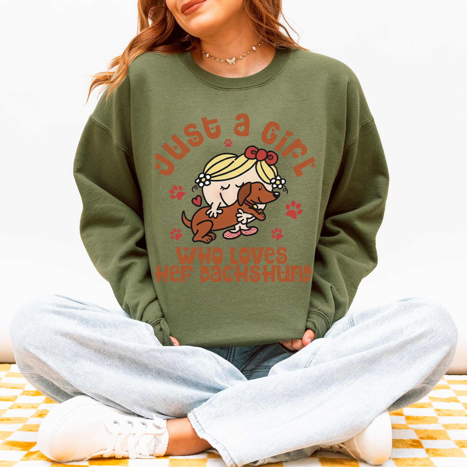Just a Girl Who Loves Her Dachshund Mom Sweatshirt – Cute Dachshund Pullover for Dog Moms, Pet Lover Gift
