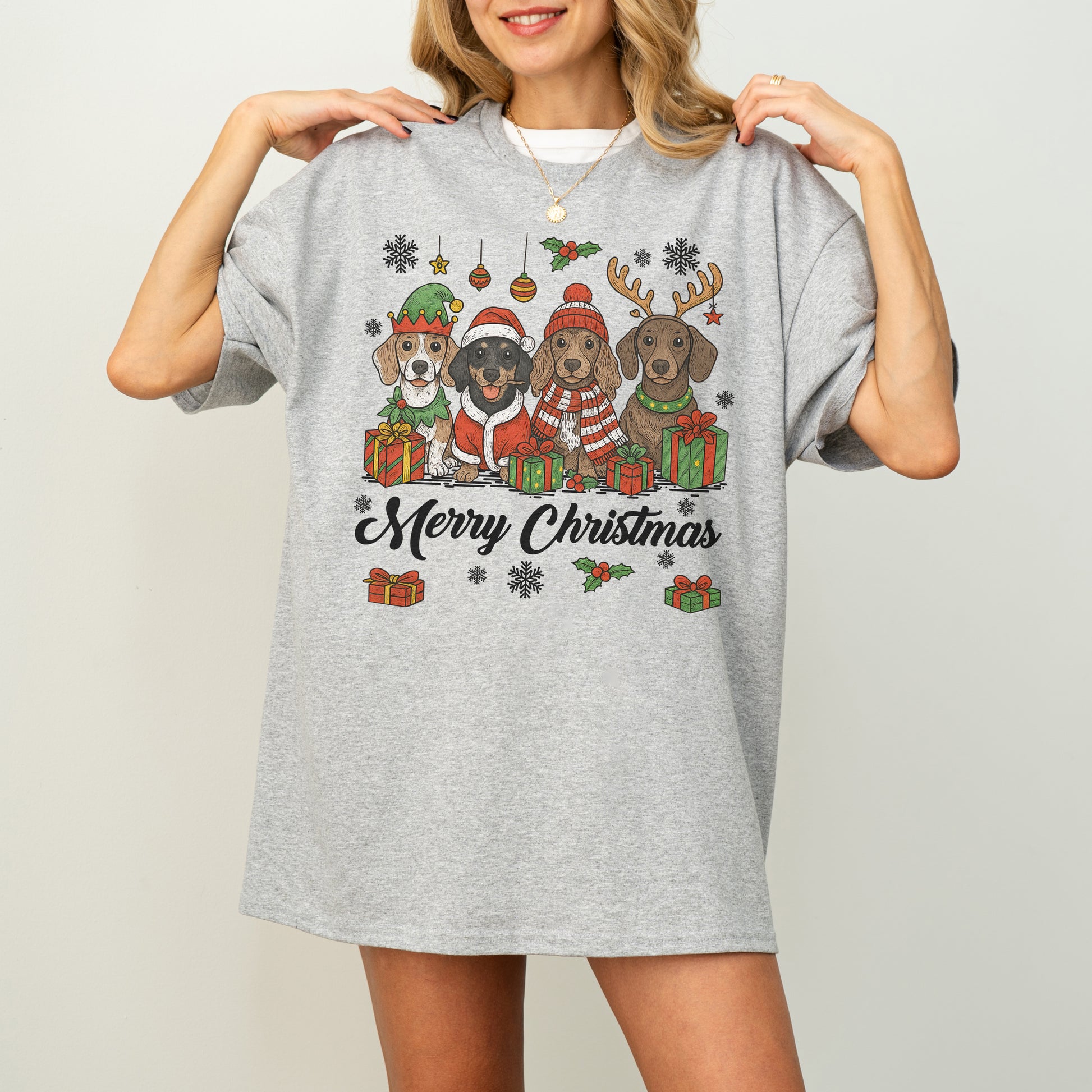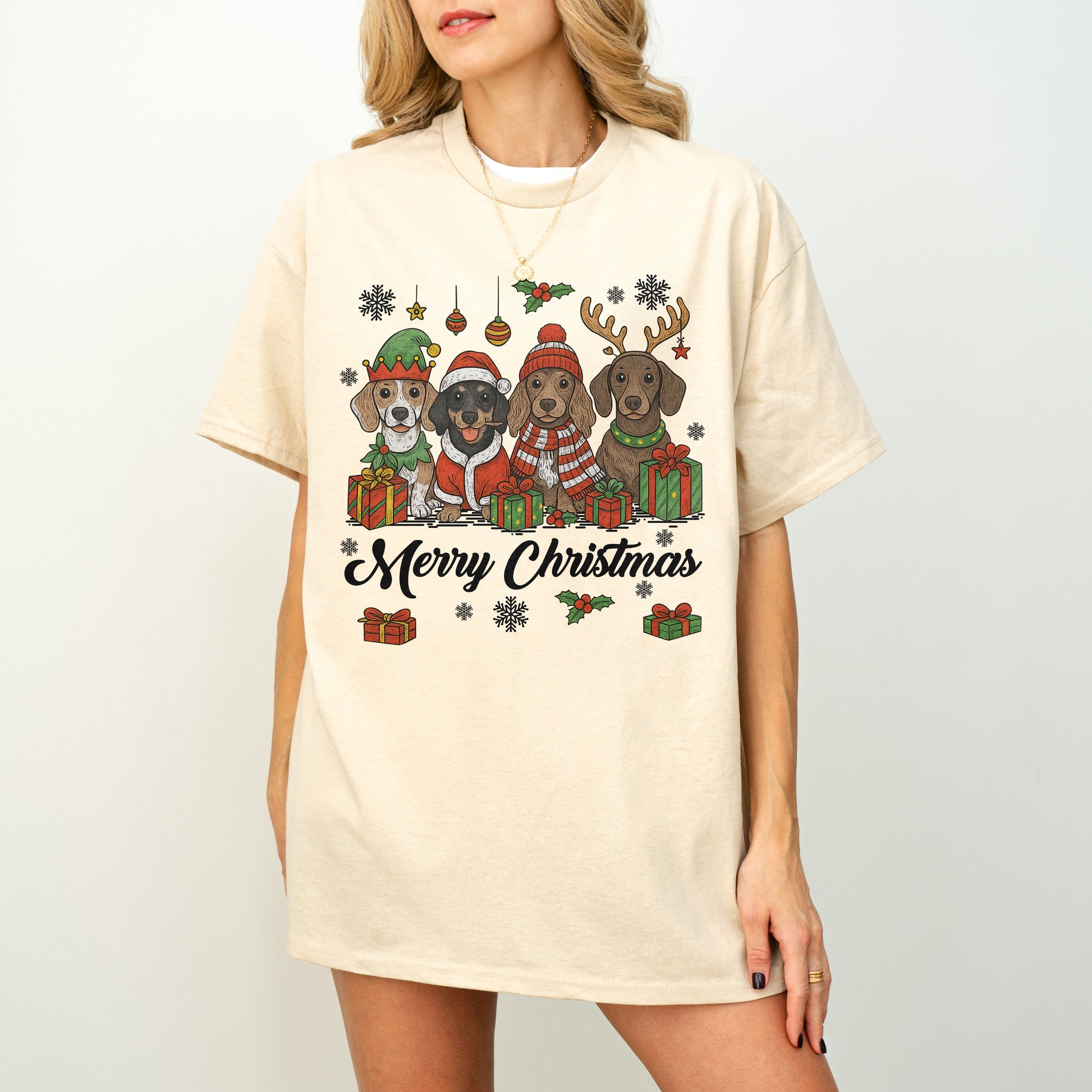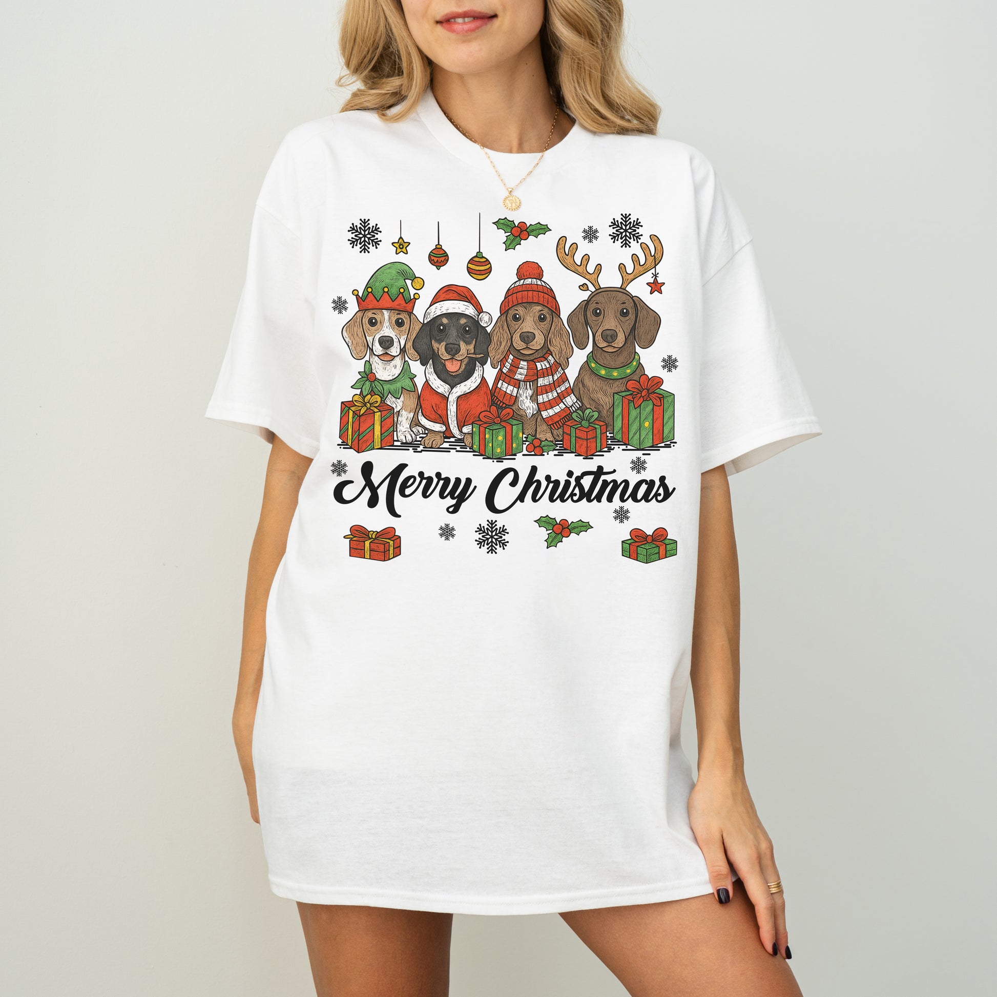 Merry Christmas Dachshund Dogs Cute Holiday Puppies T-shirt Design for Dog Lovers