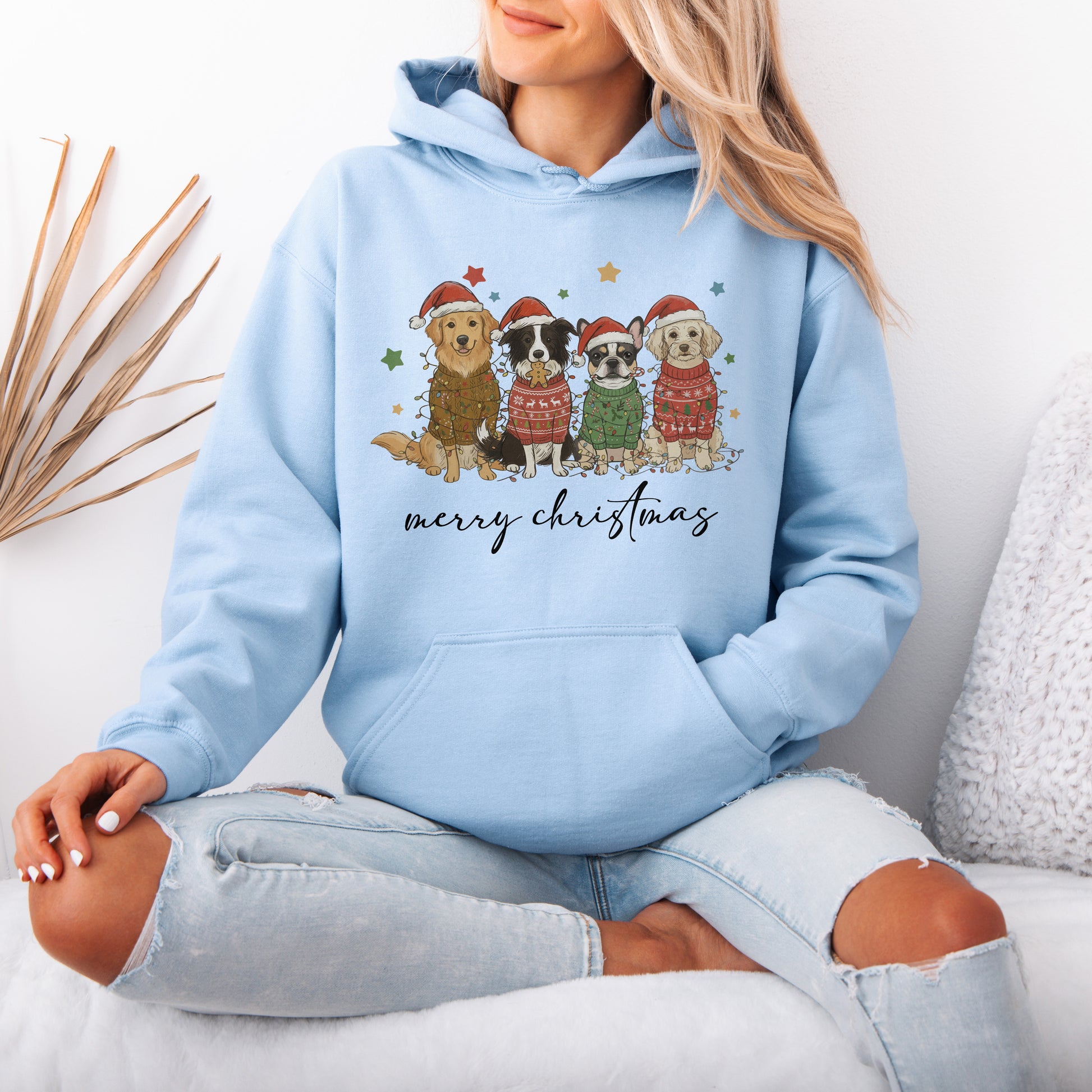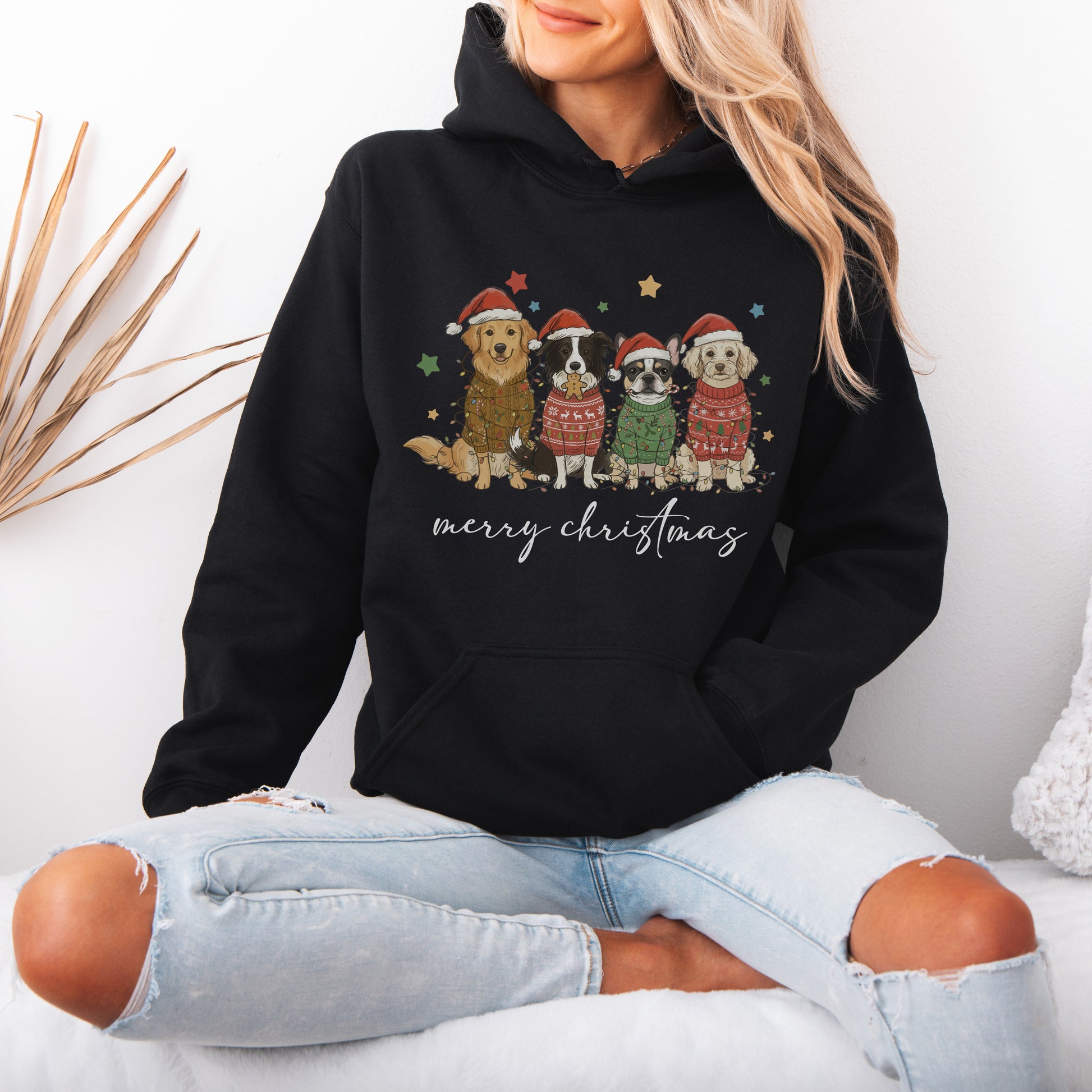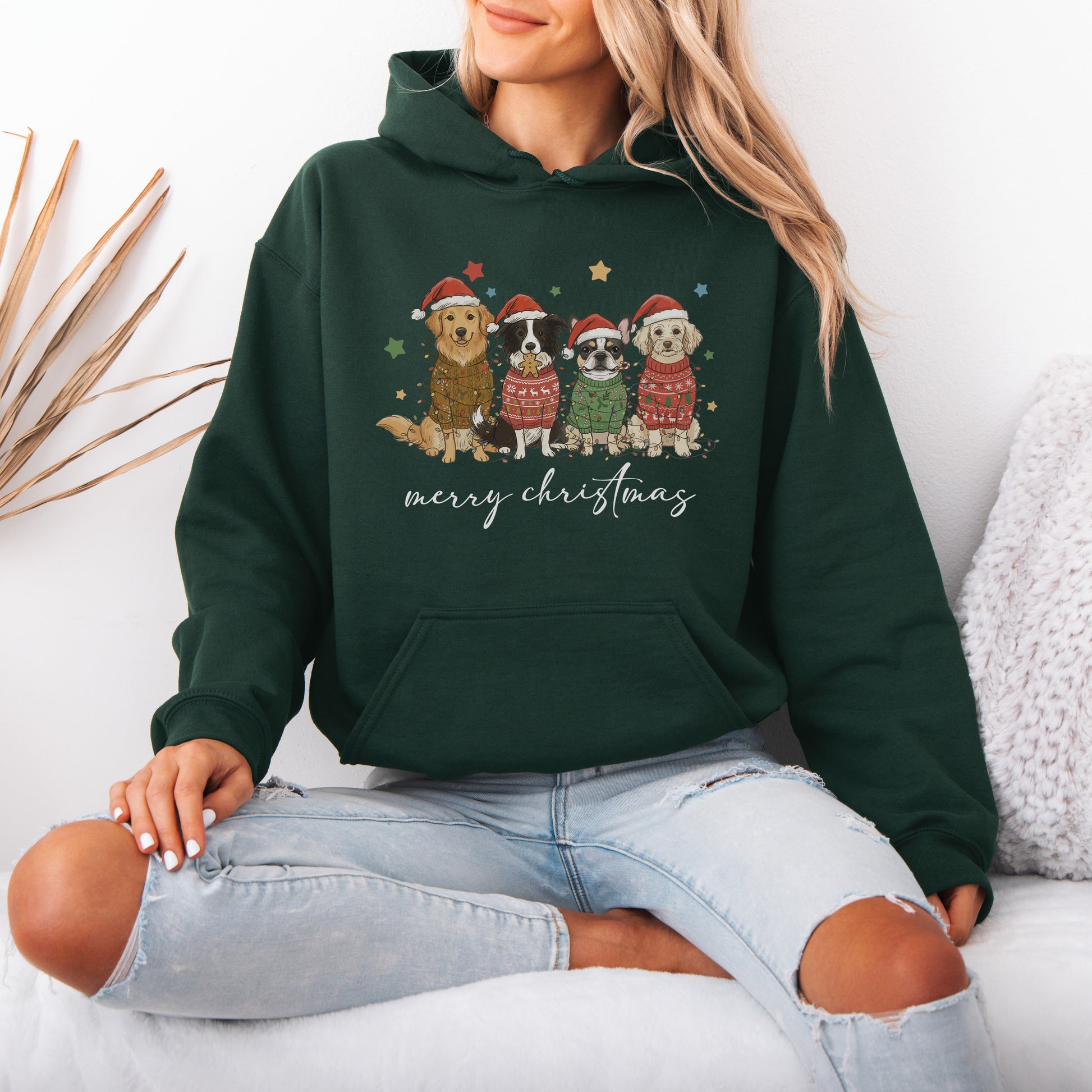 Merry Christmas Dogs Hoodie – Cute Holiday Puppy Hooded Sweatshirt for Dog Lovers