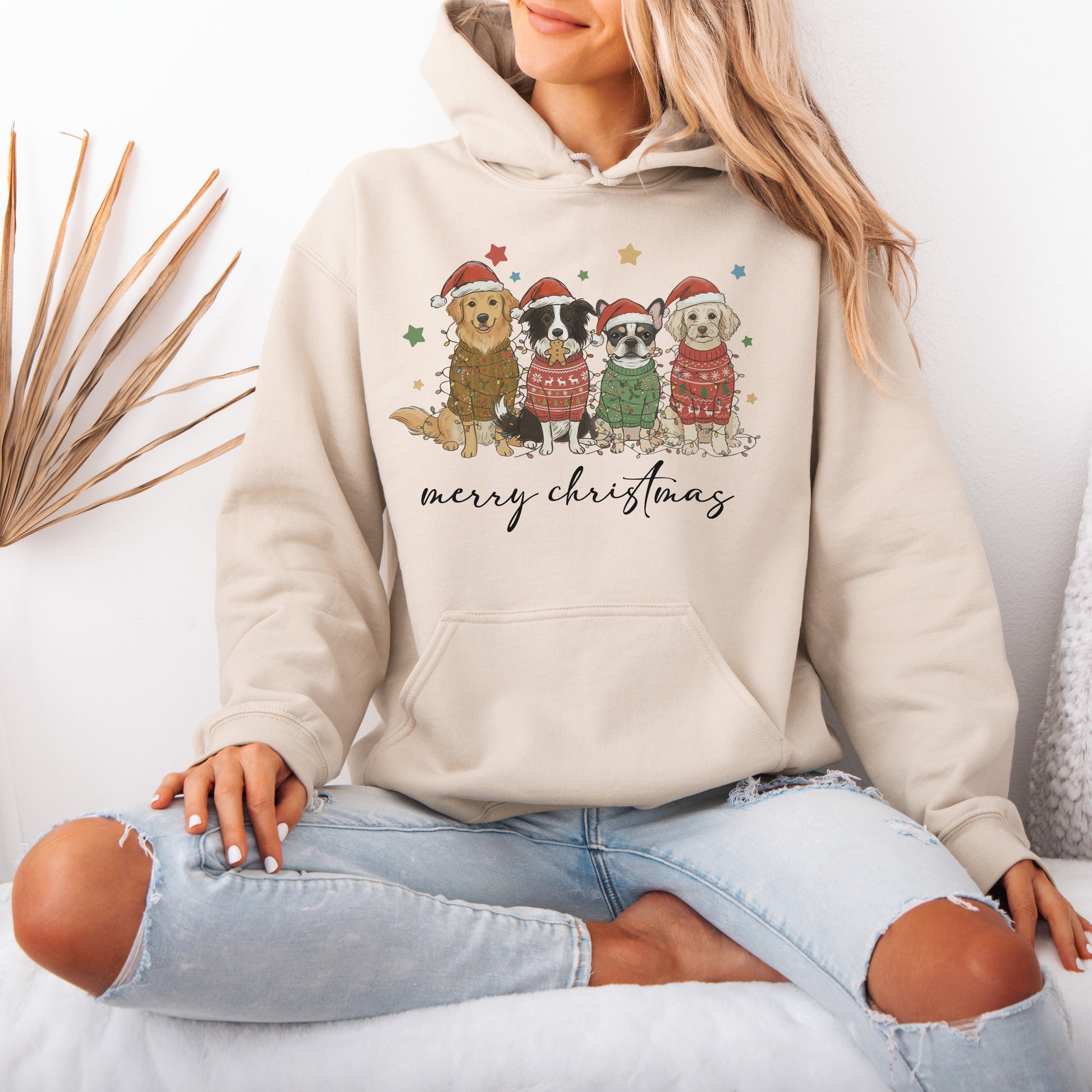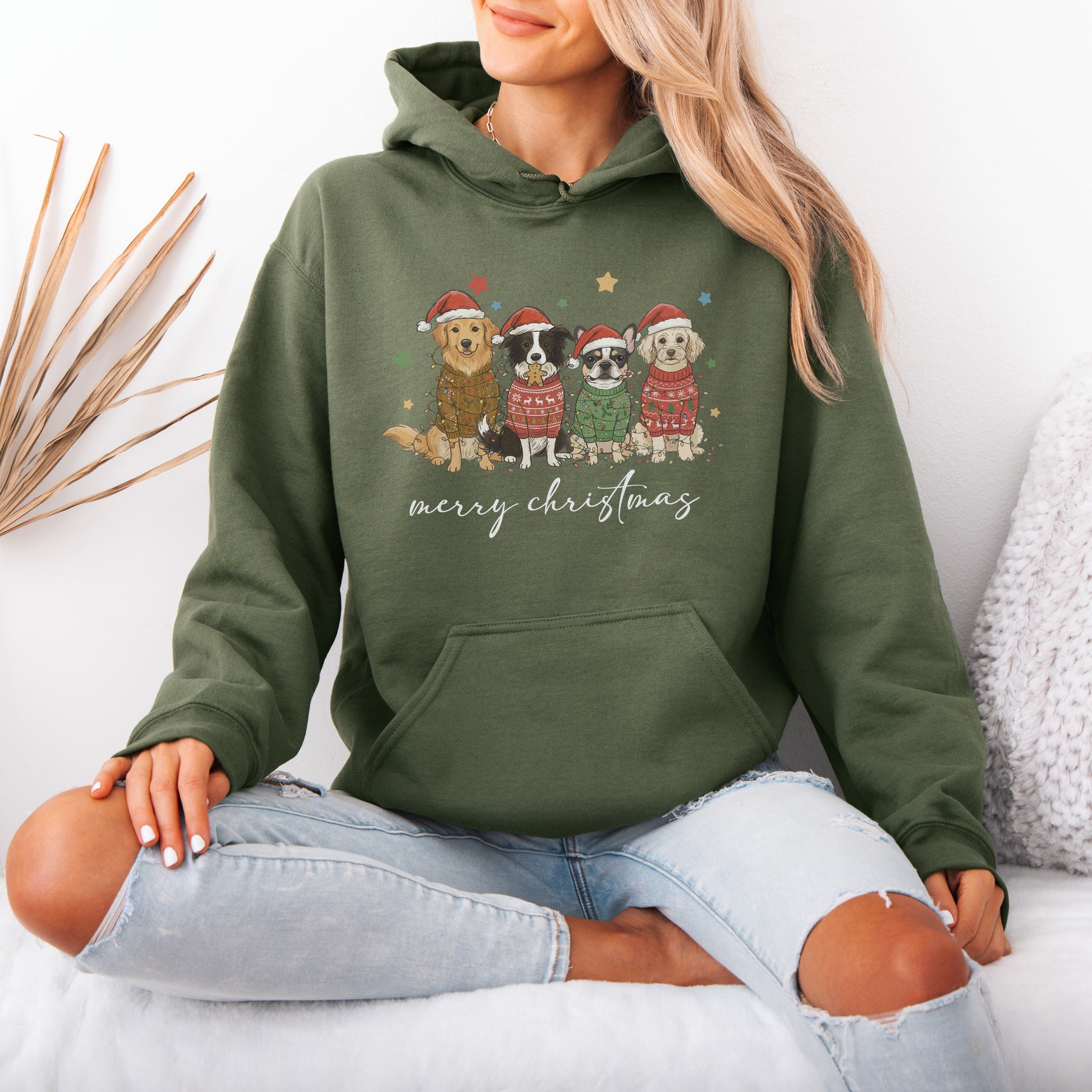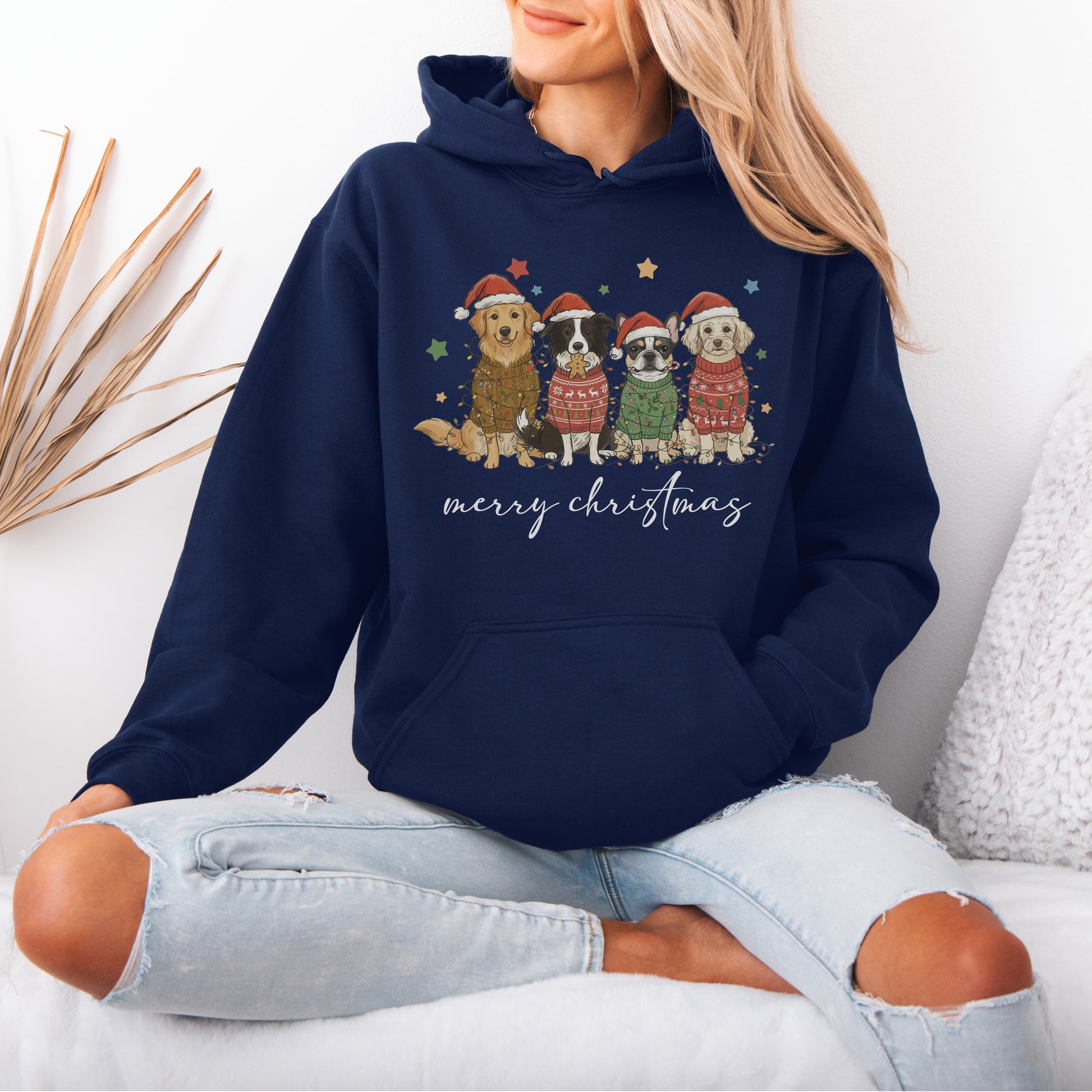 Merry Christmas Dogs Hoodie – Cute Holiday Puppy Hooded Sweatshirt for Dog Lovers