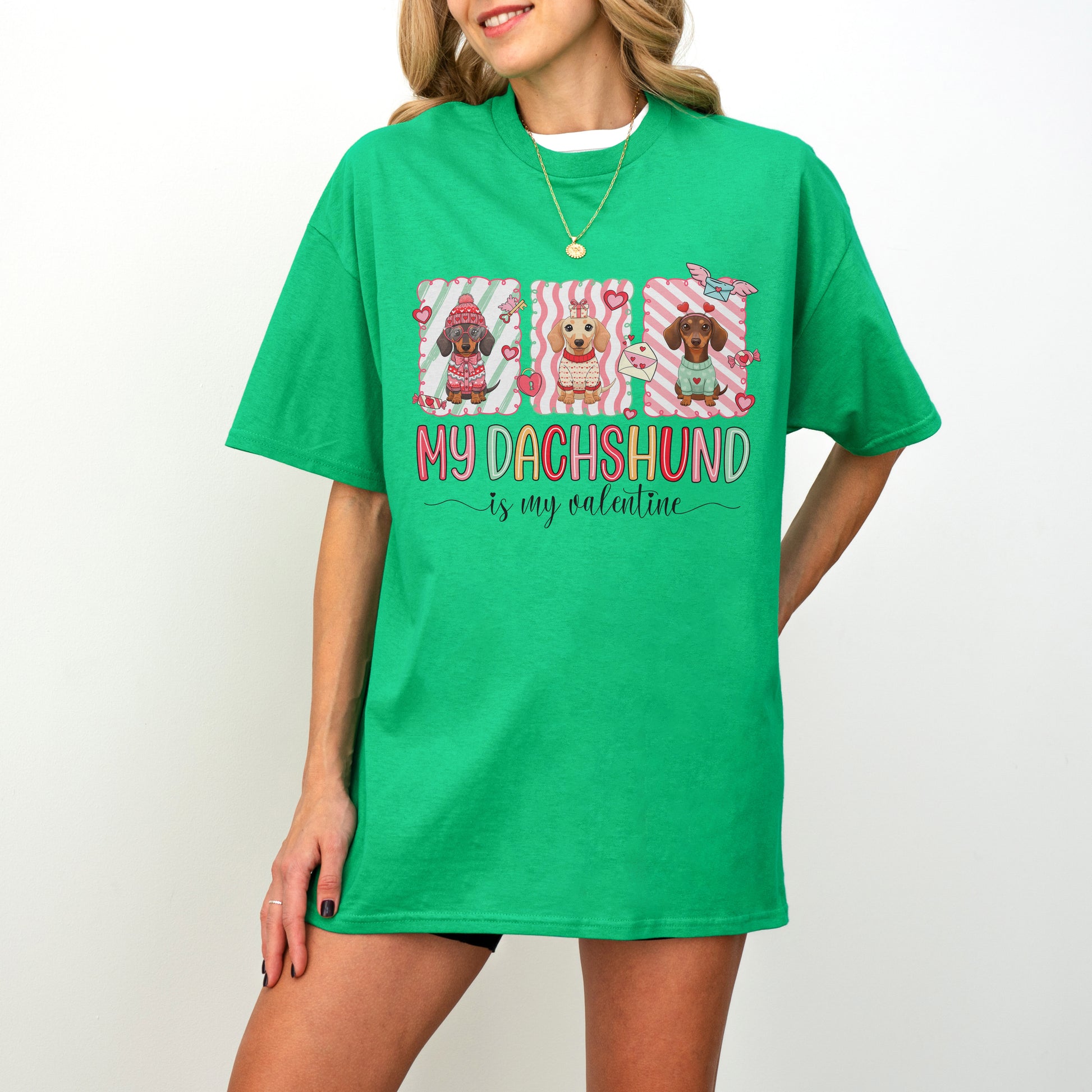 A must-have for anyone who can’t get enough of their Dachshund. Whether you're celebrating with your furry friend or just spreading the love, this cute tee is the perfect way to show off your Doxie pride. Grab yours now and let the Valentine’s Day fun begin!