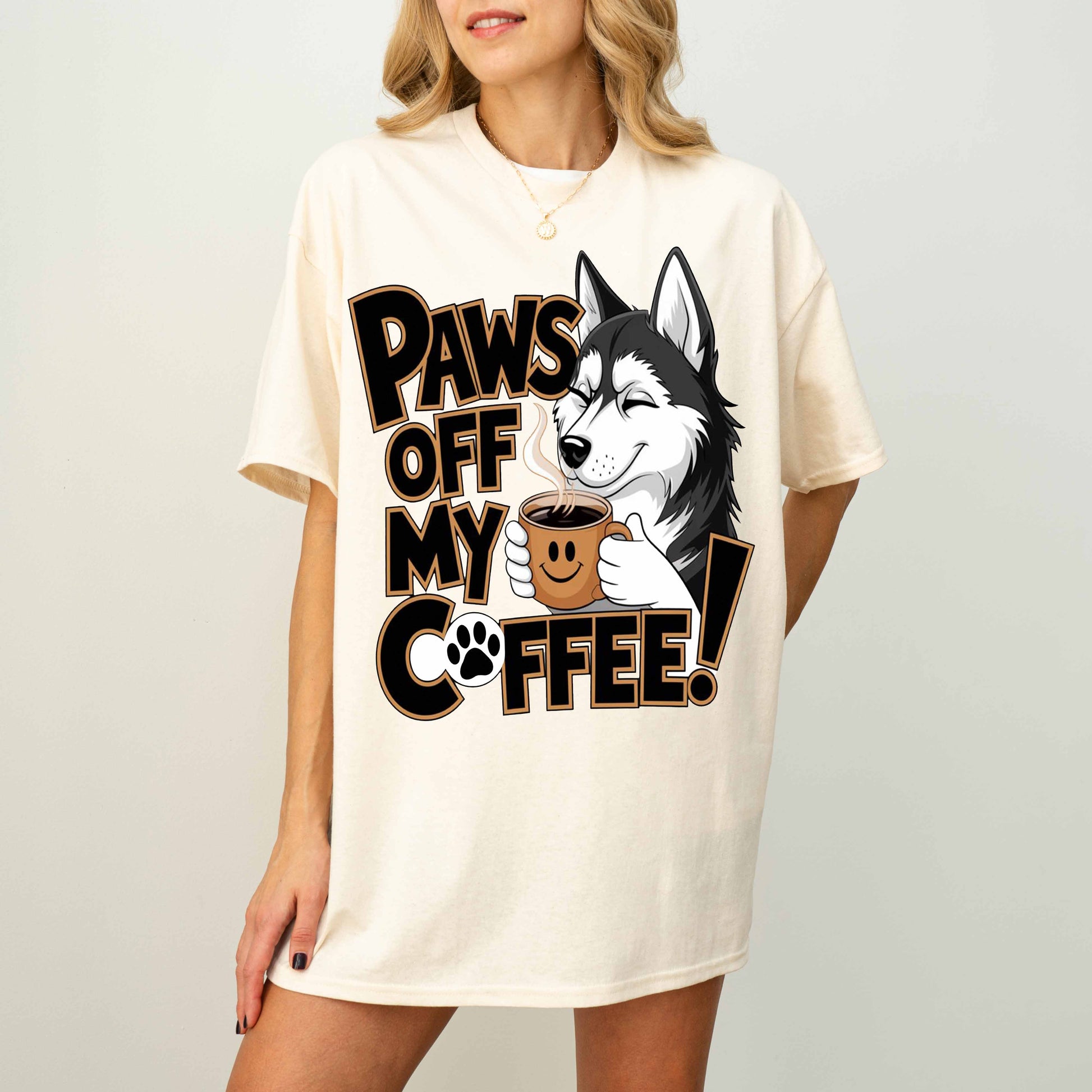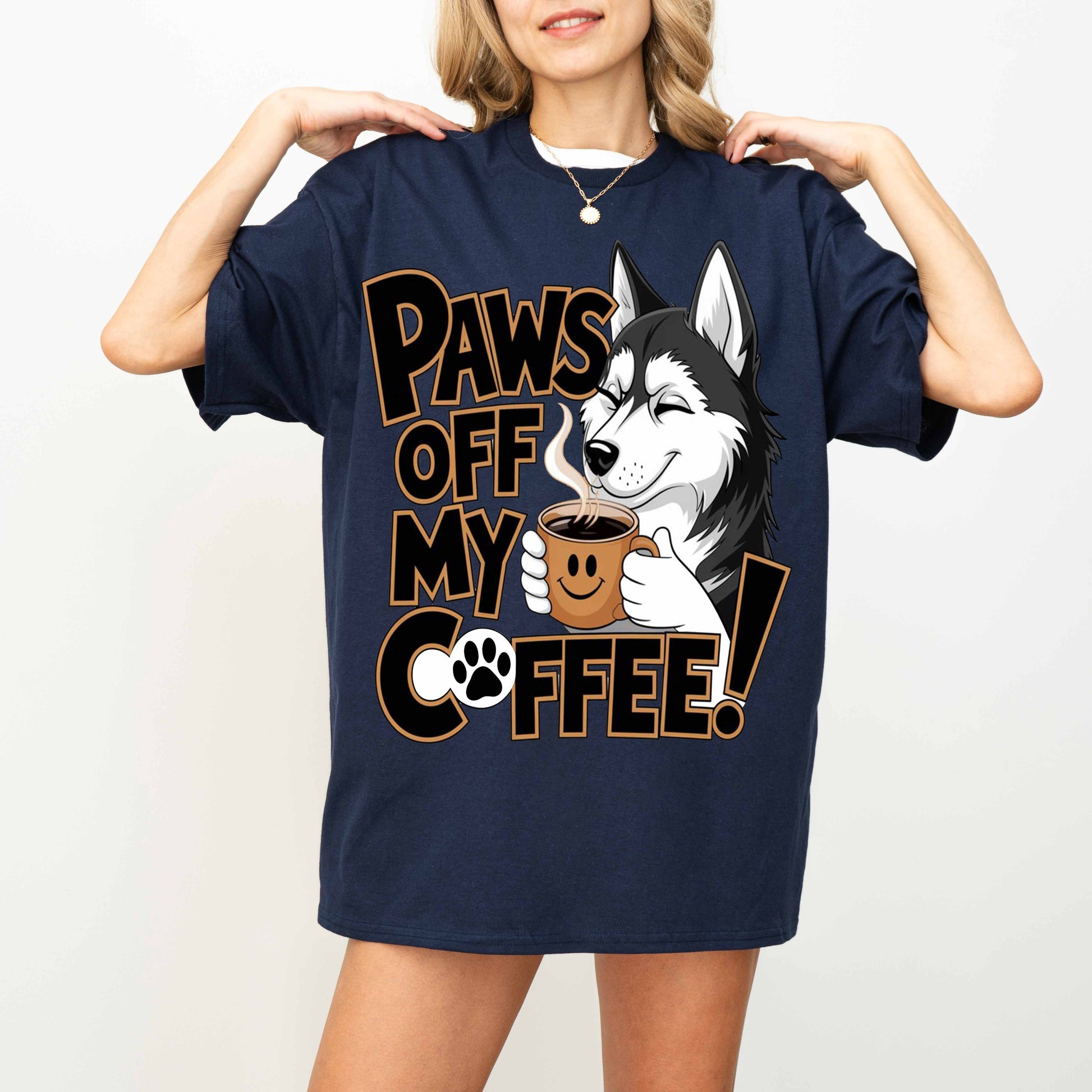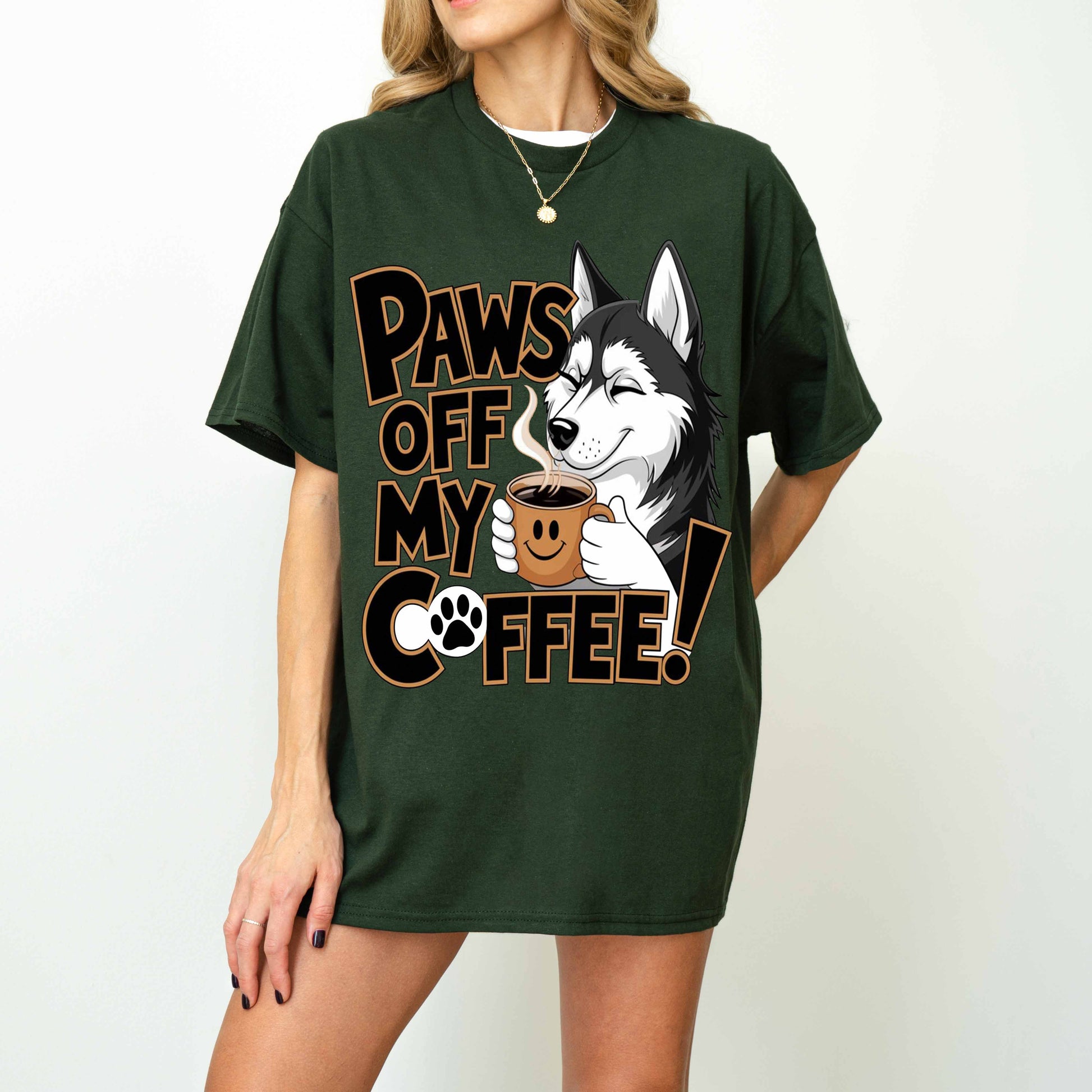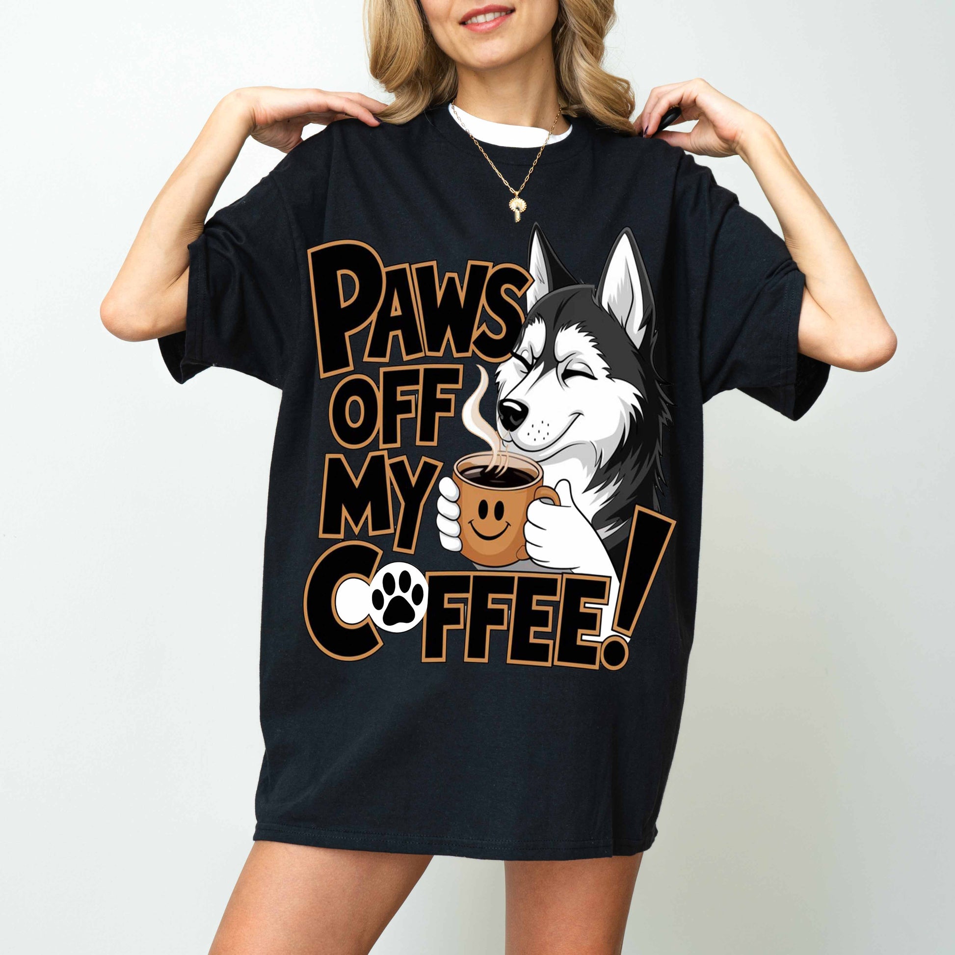 Paws Off My Coffee Funny Husky Dog T-Shirt
