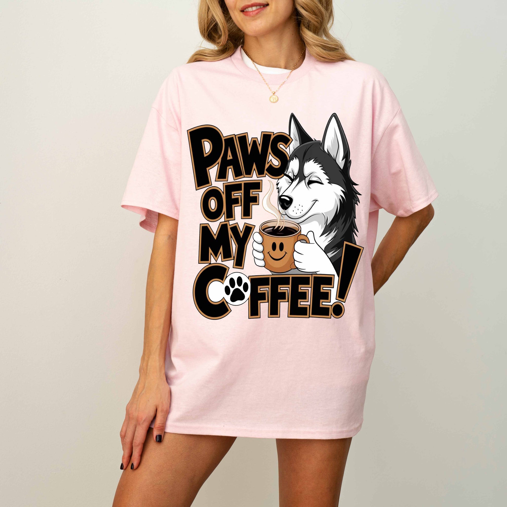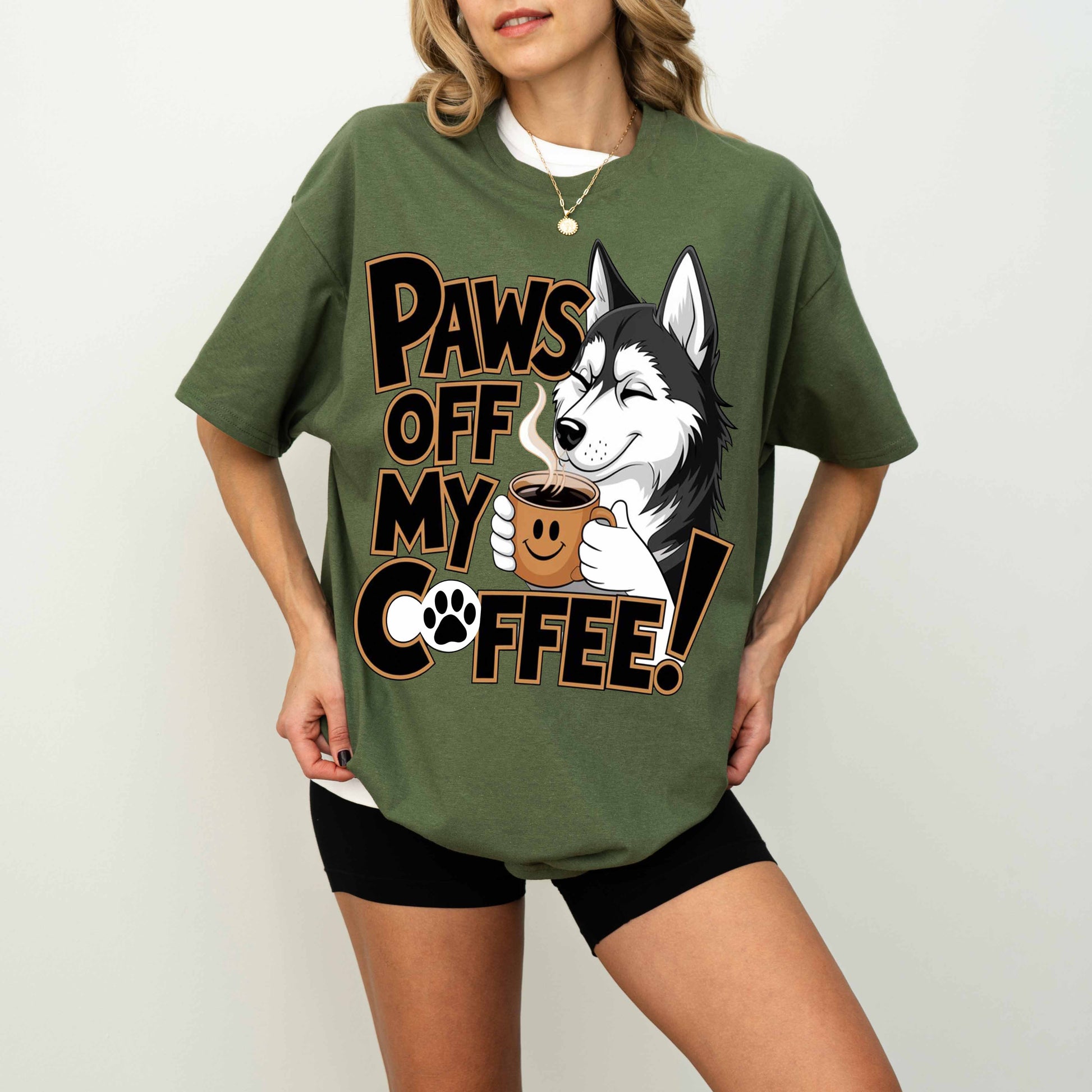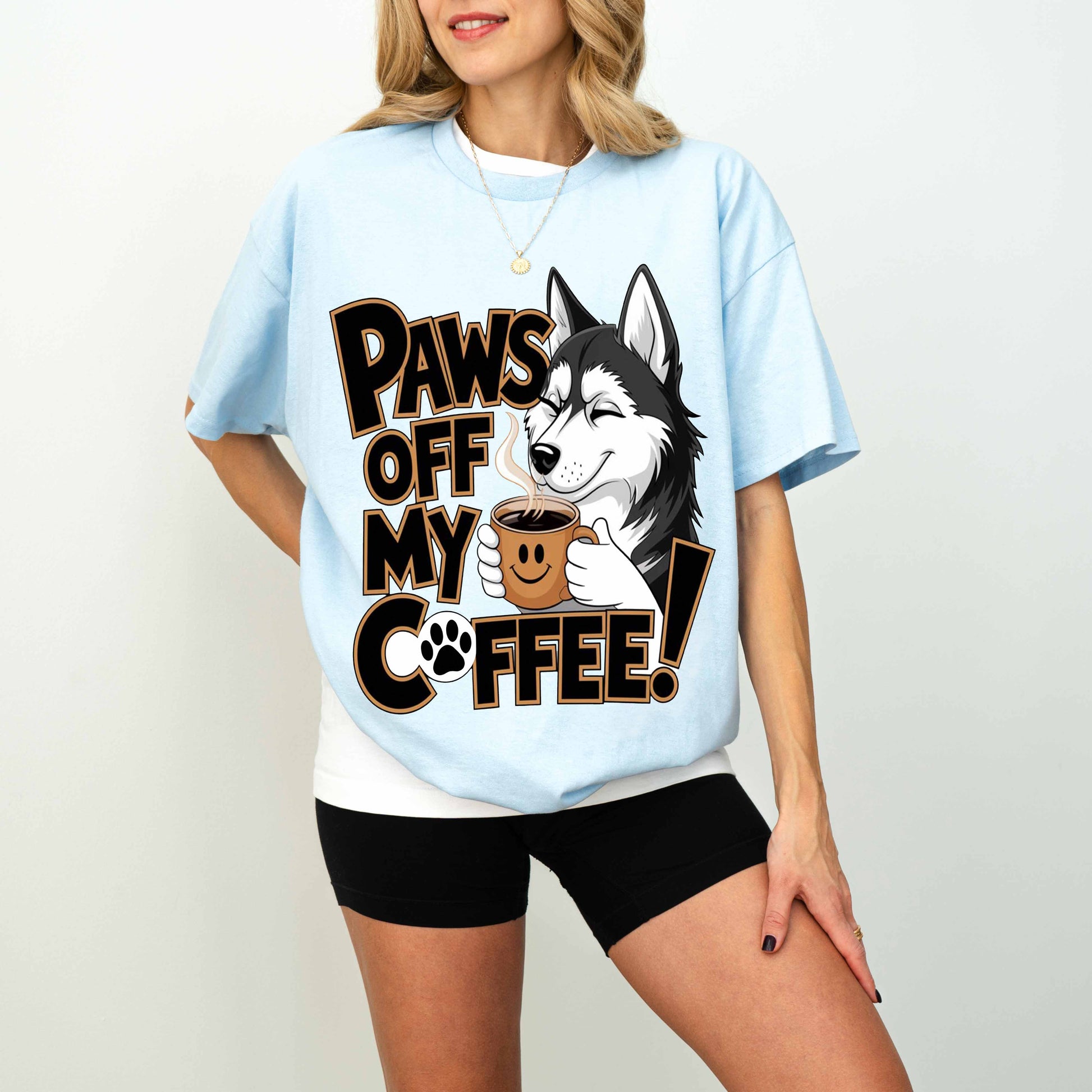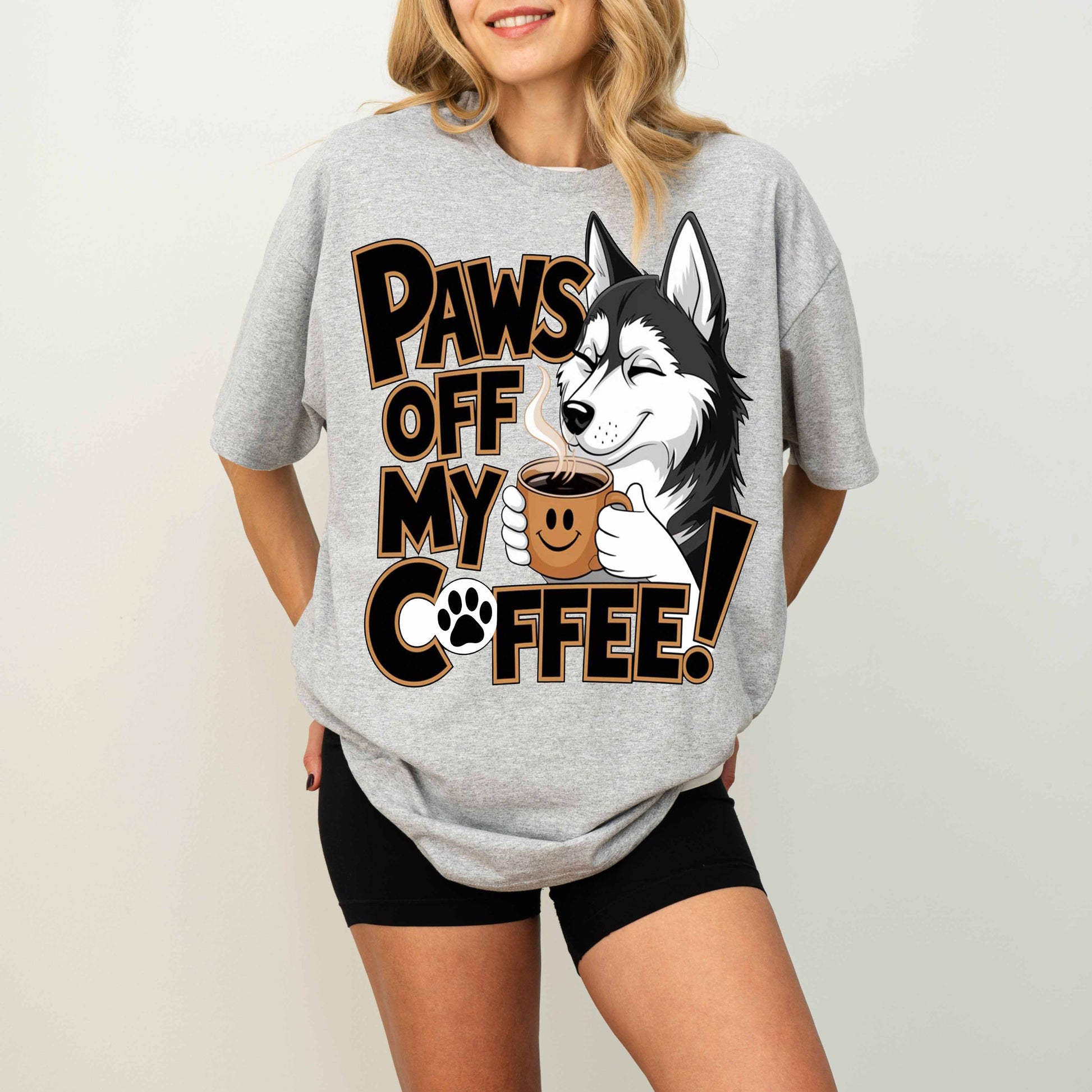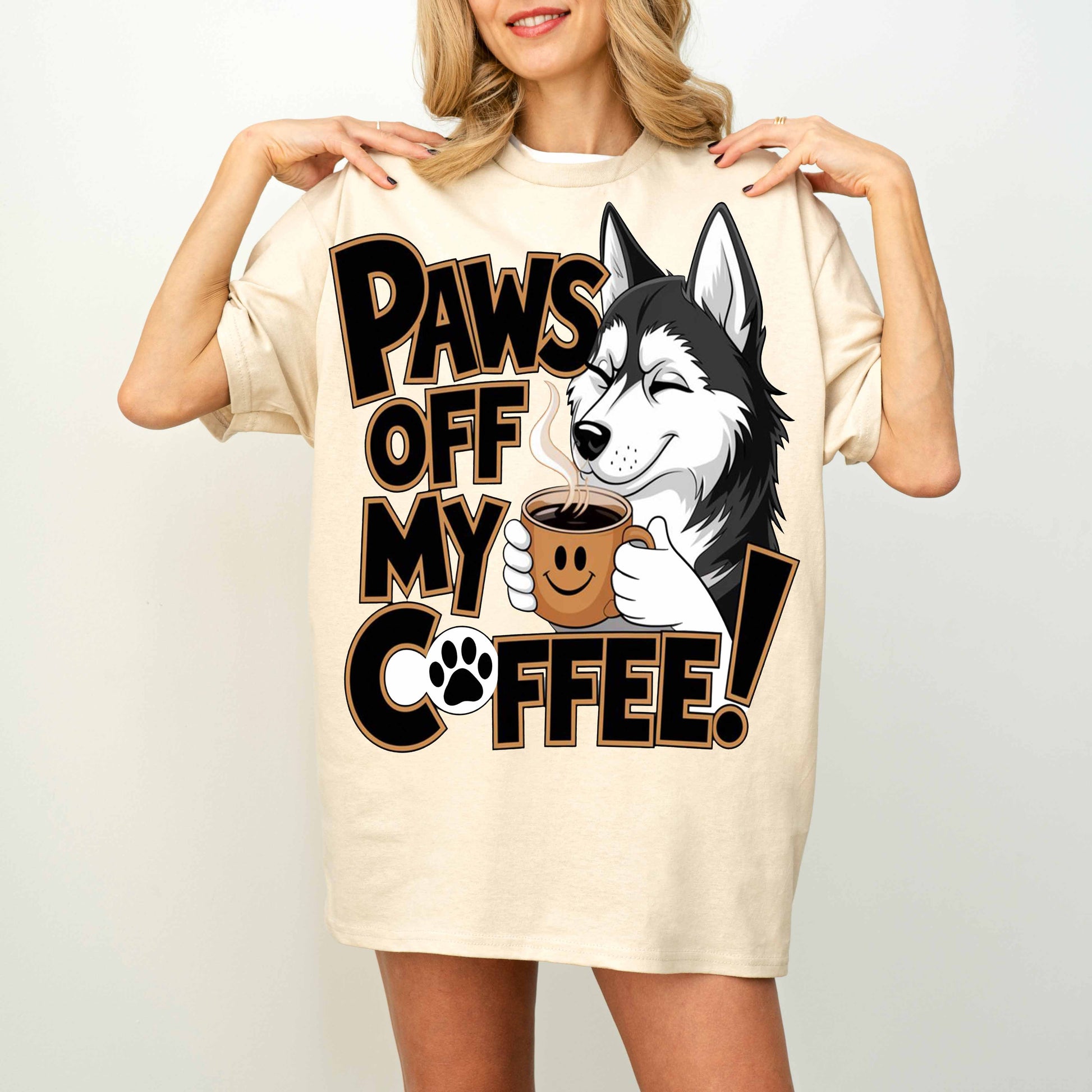 Paws Off My Coffee Funny Husky Dog T-Shirt
