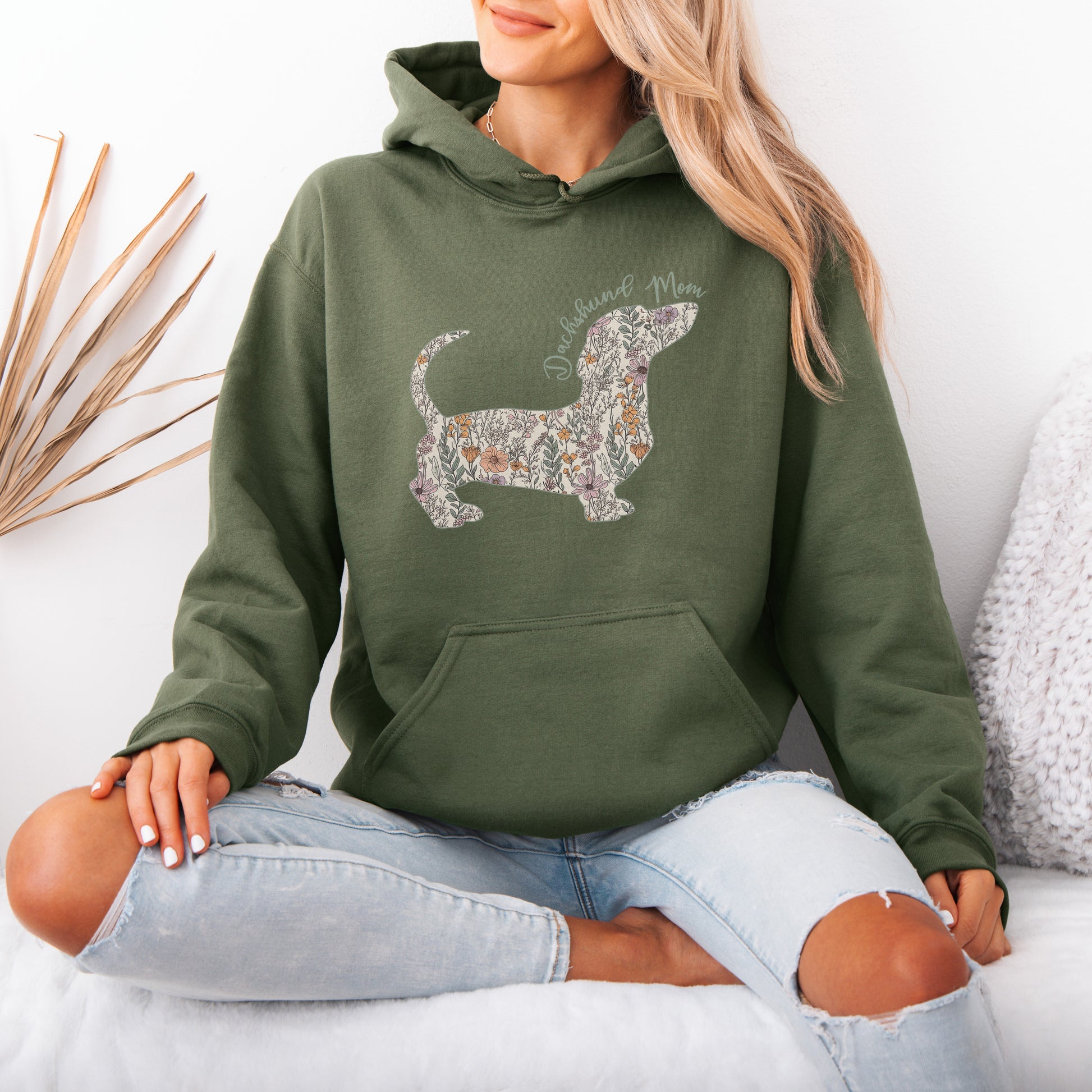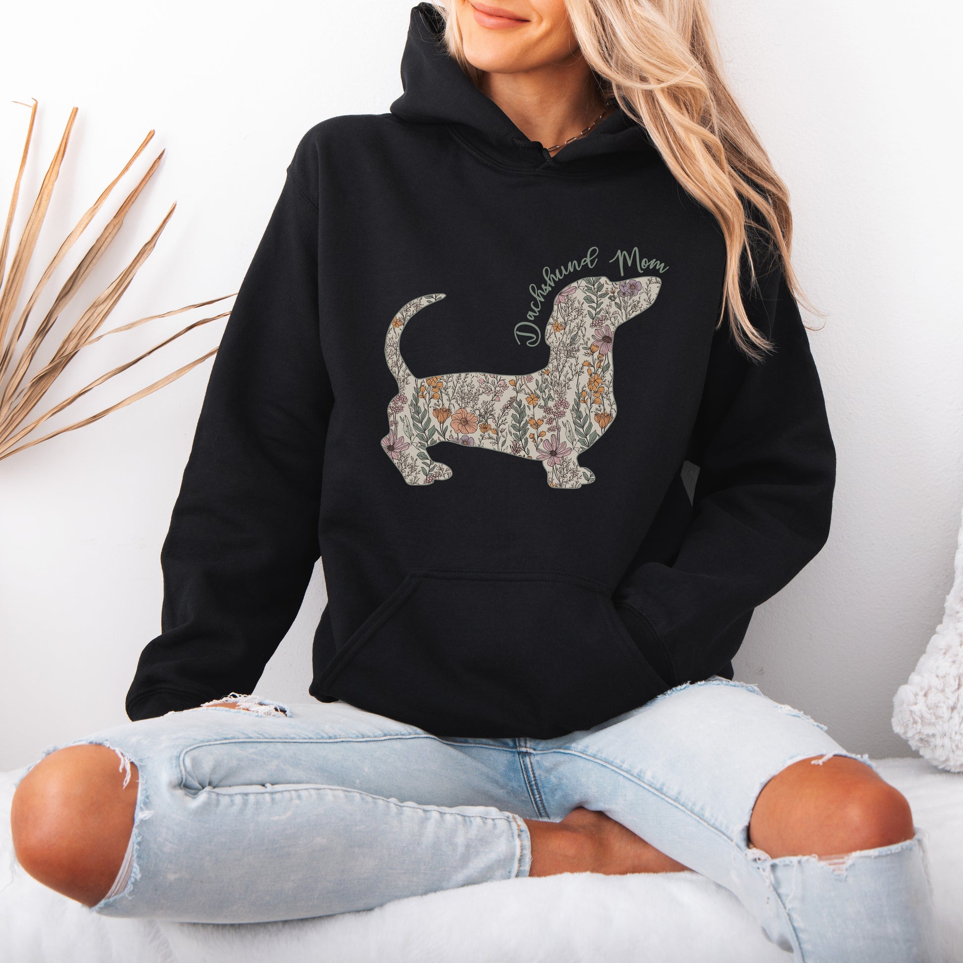 Personalized Dachshund Dog Mama Hoodie – Custom Floral Dog Mom