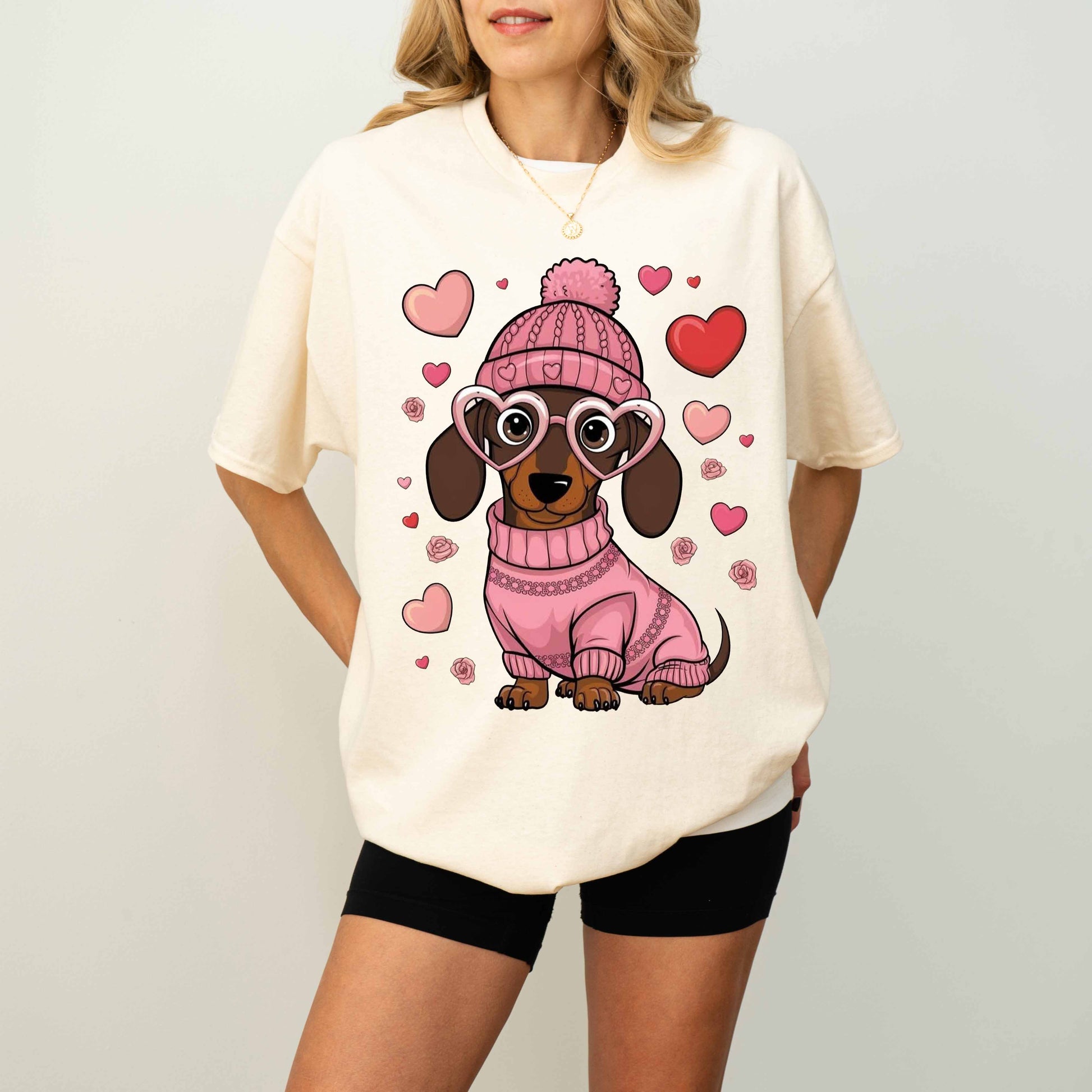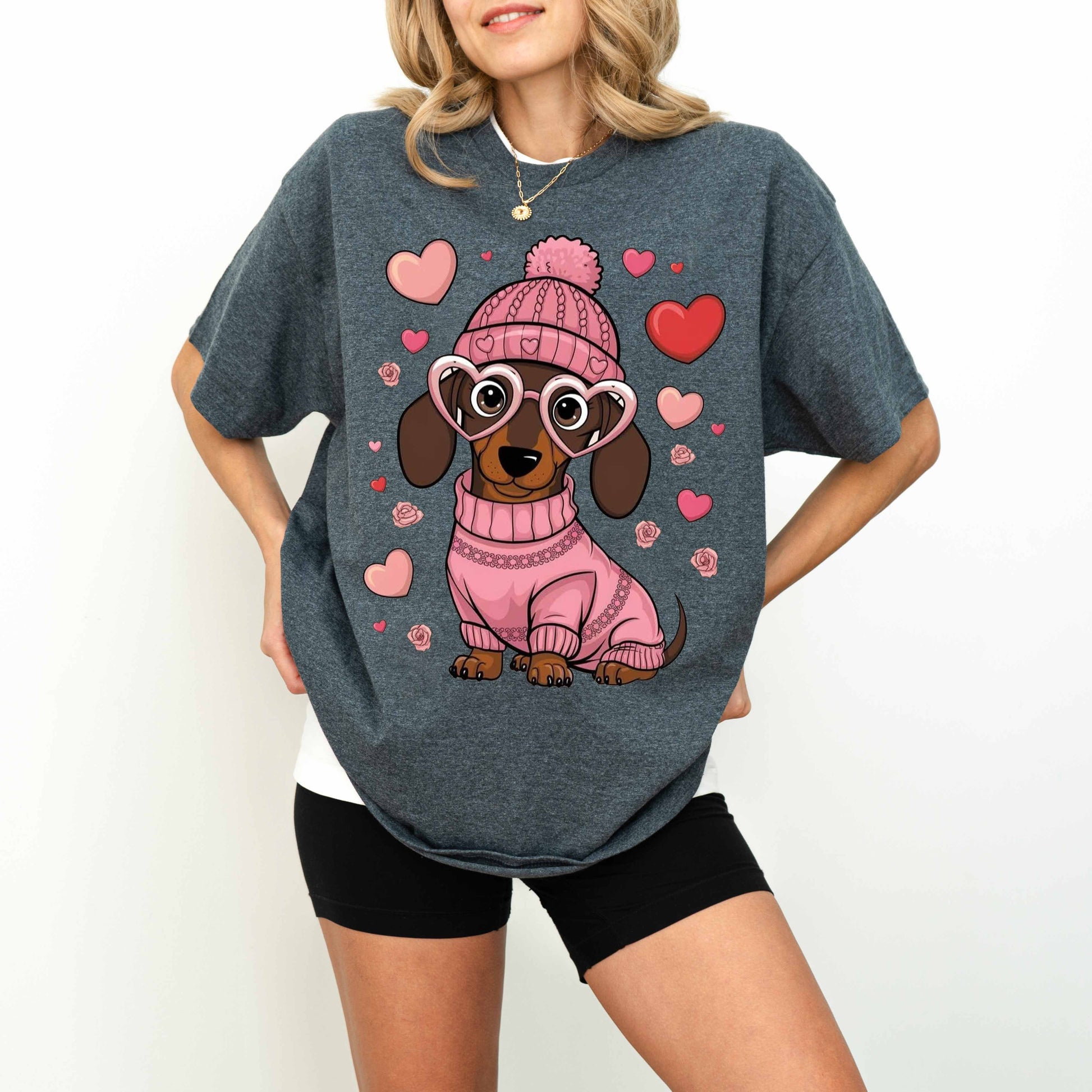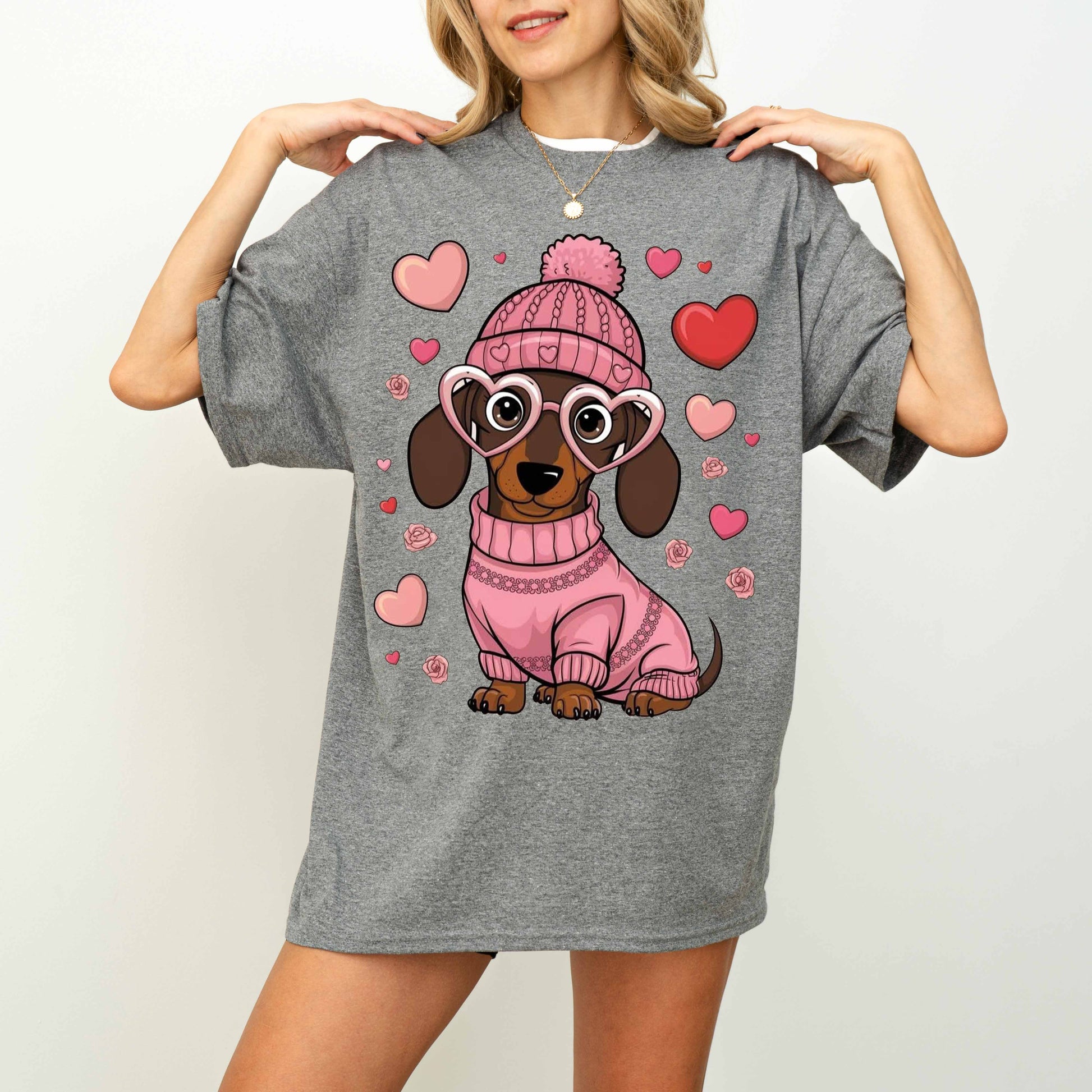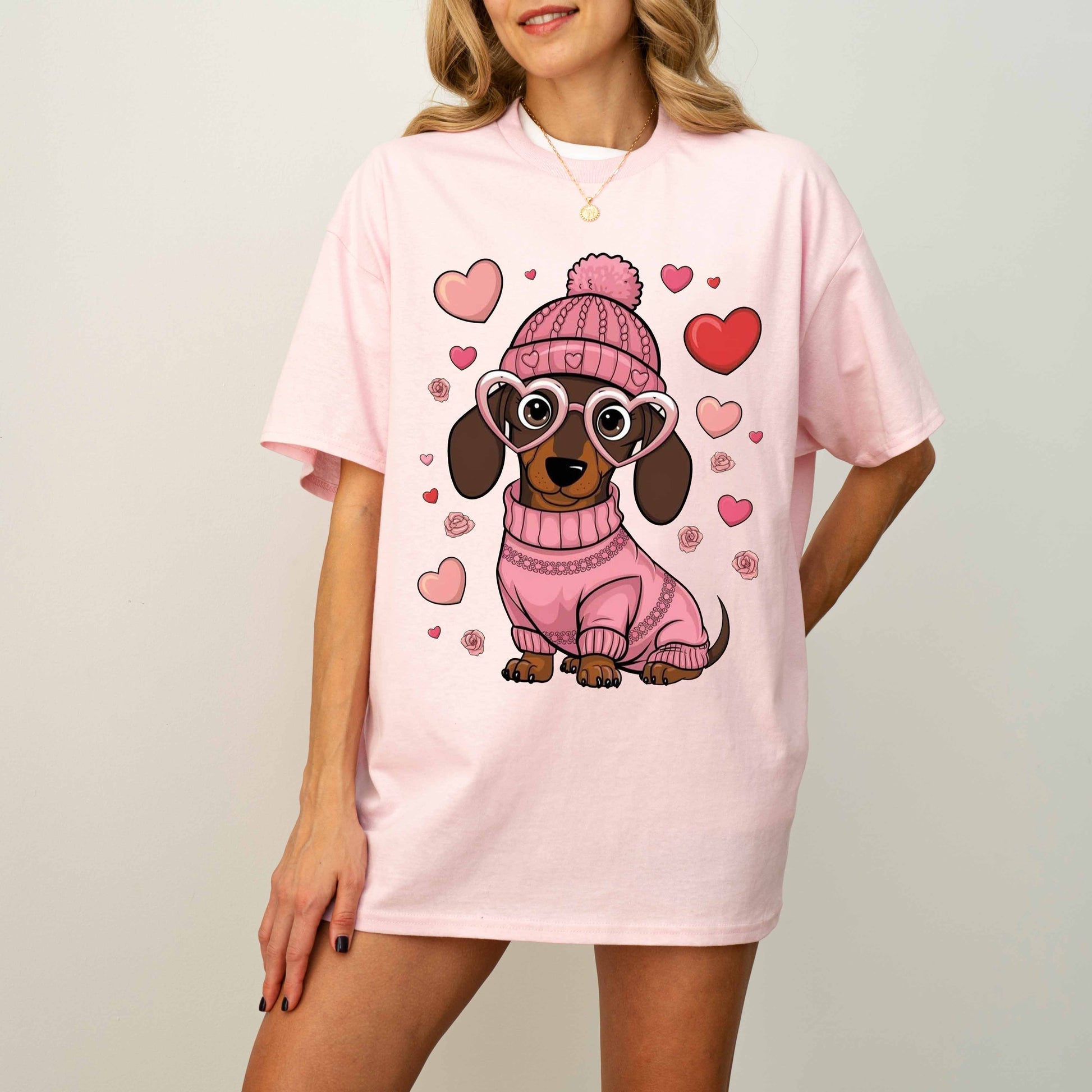 Pink Heart Glasses Dachshund Dog Mom T-Shirt