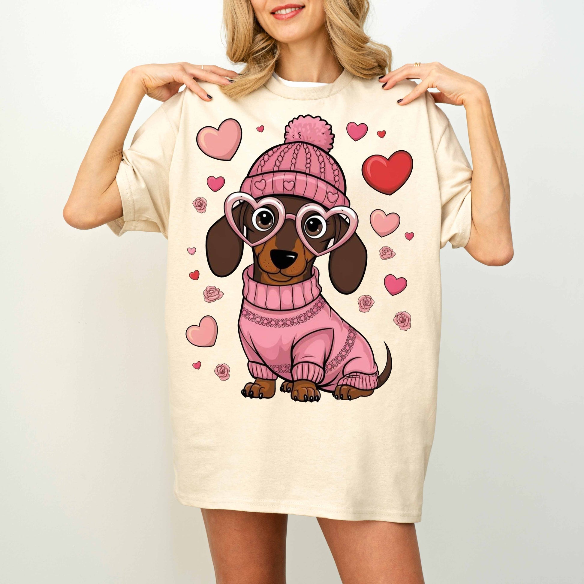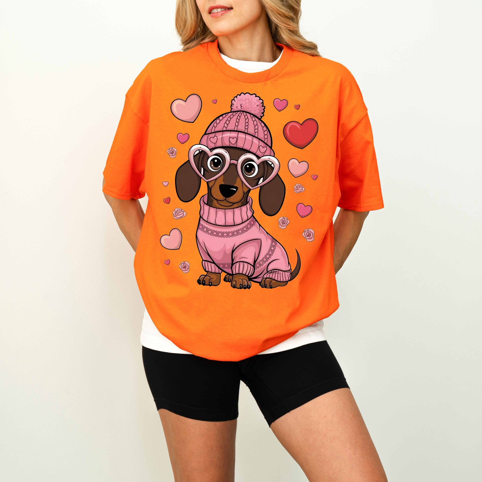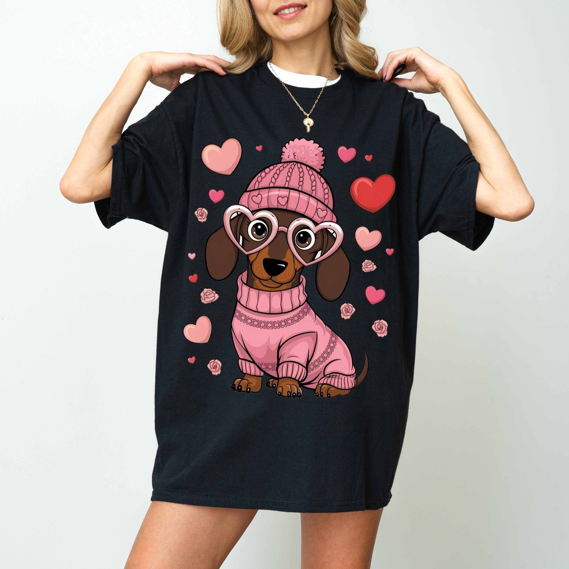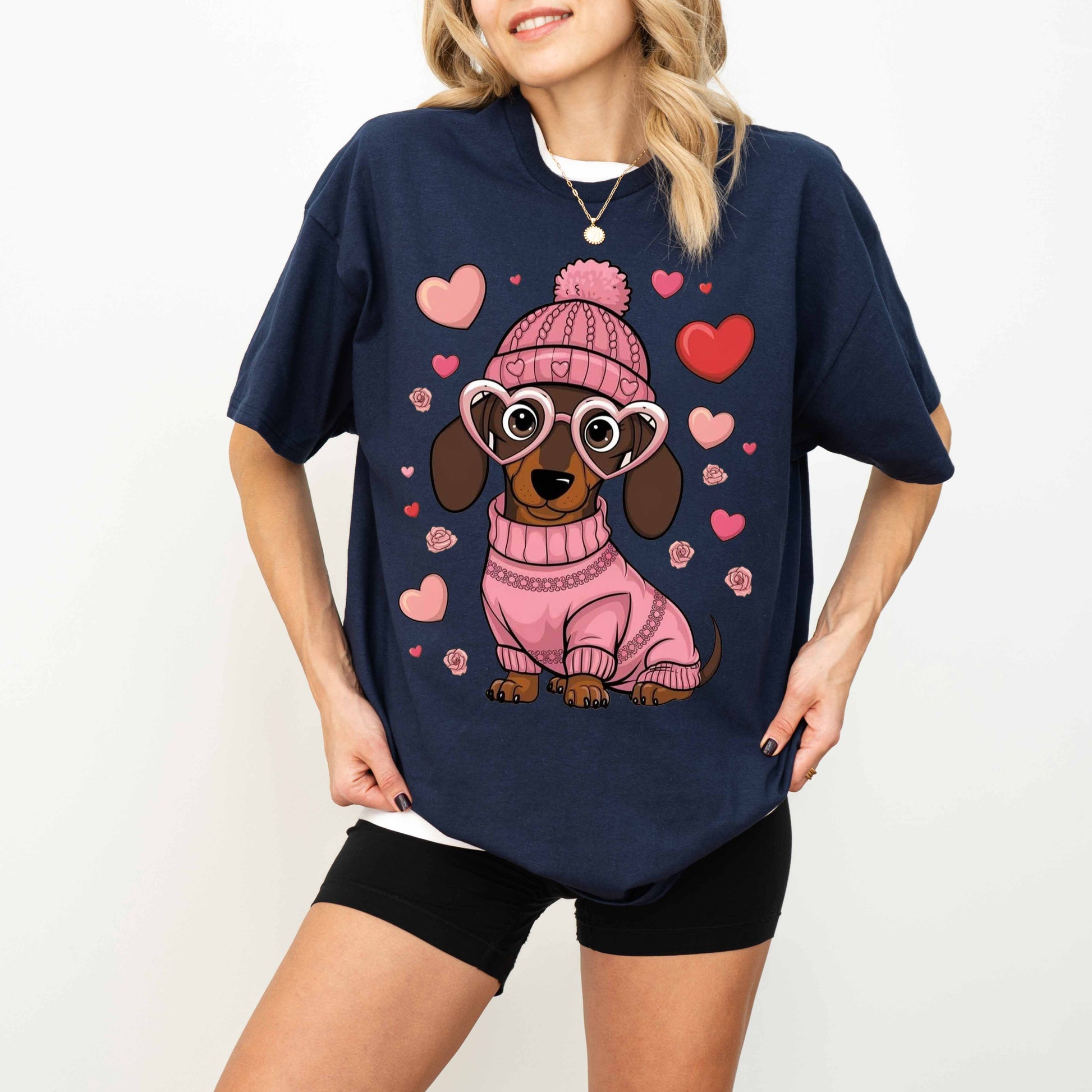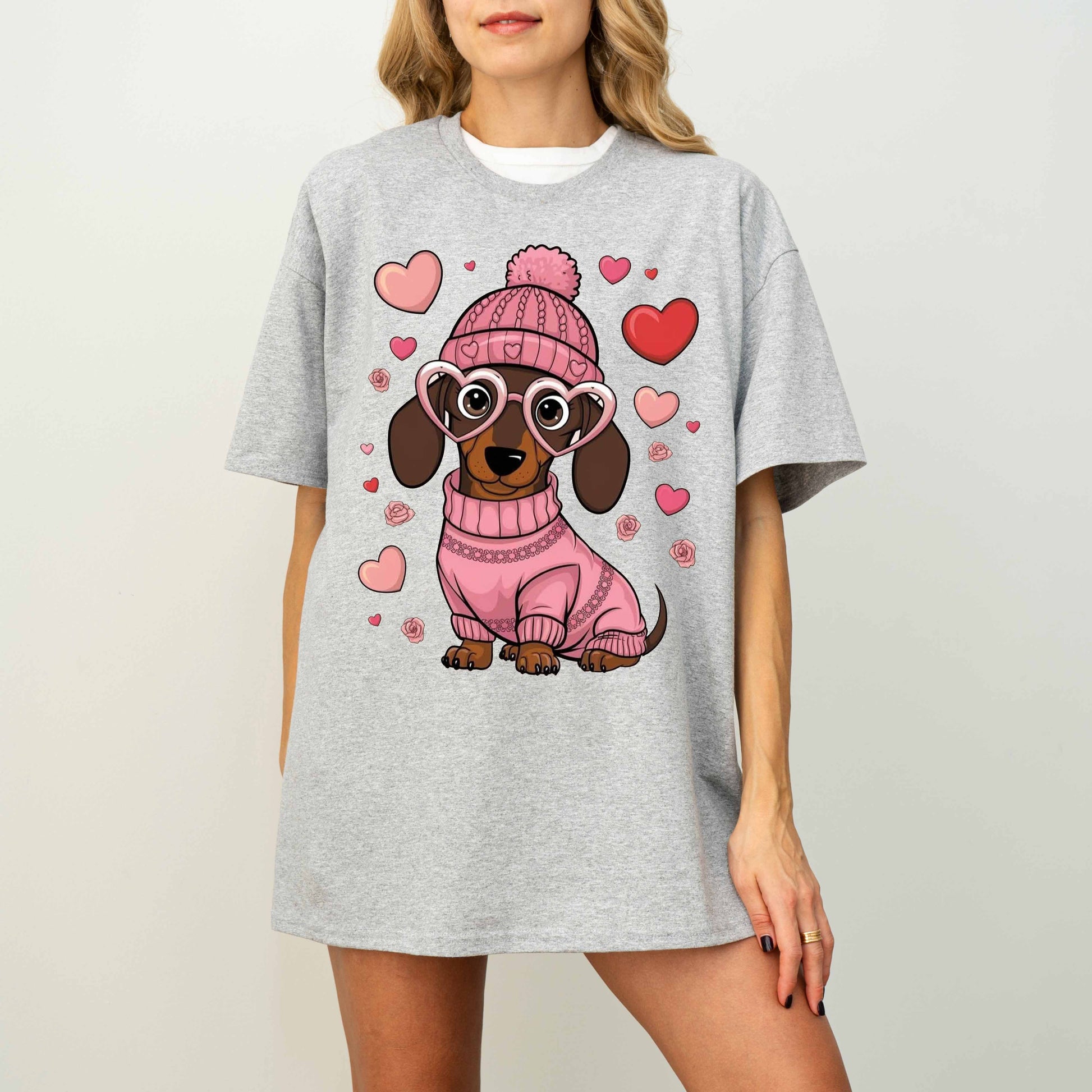 Pink Heart Glasses Dachshund Dog Mom T-Shirt