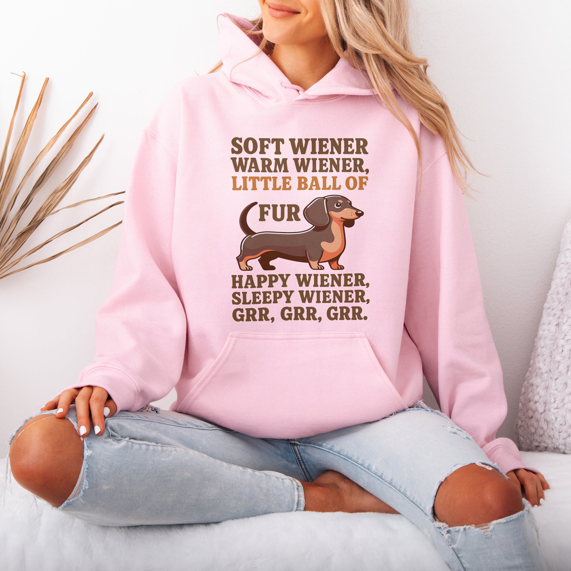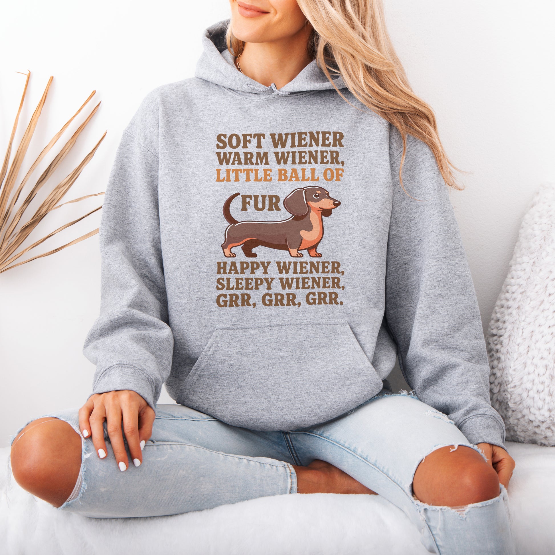 Soft Wiener Warm Wiener Dachshund Hoodie – Funny Wiener Dog Parody Hooded Sweatshirt for Dog Lovers