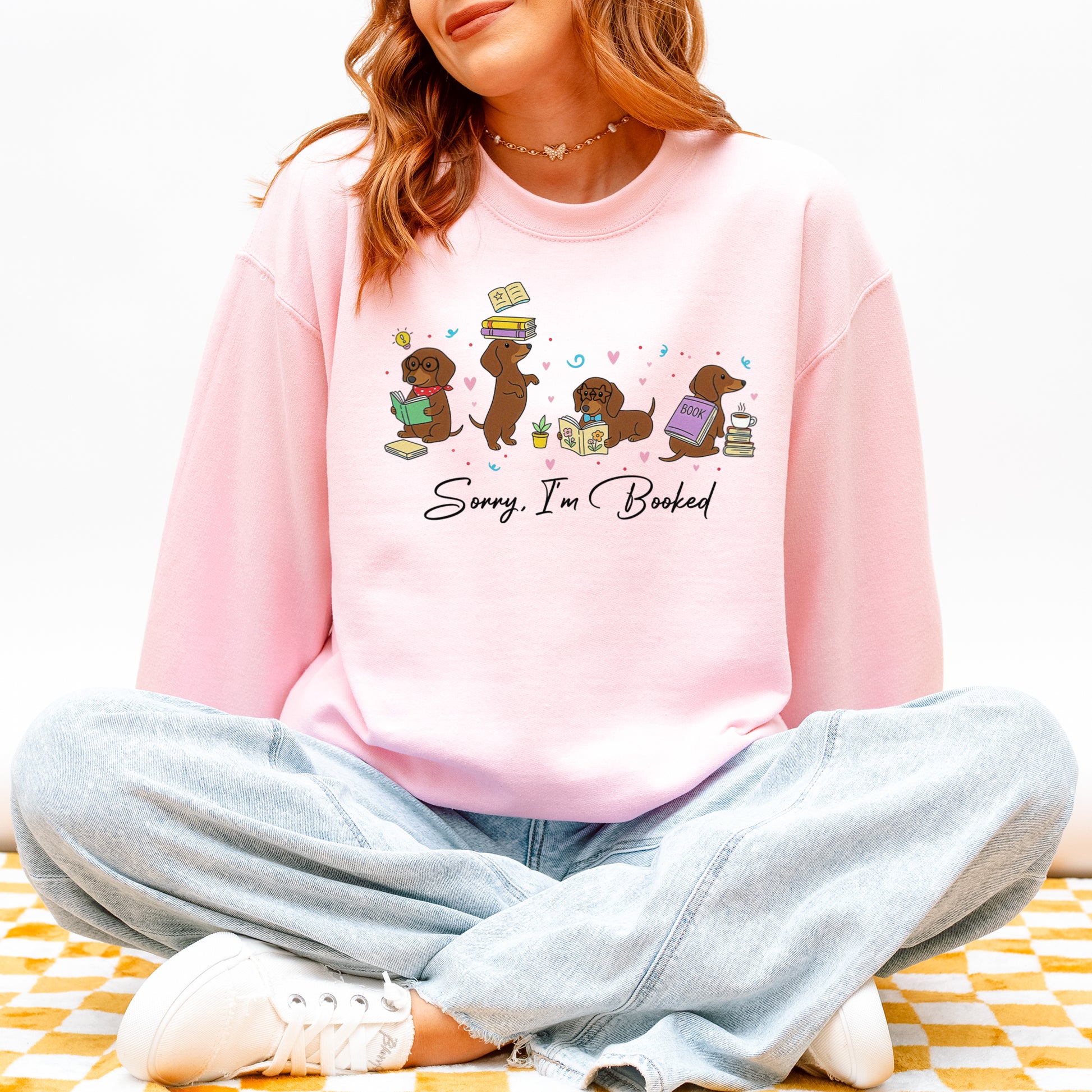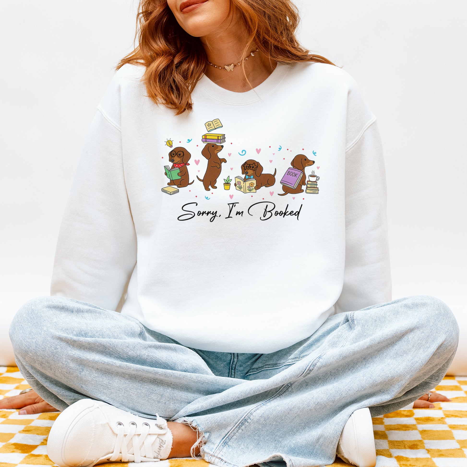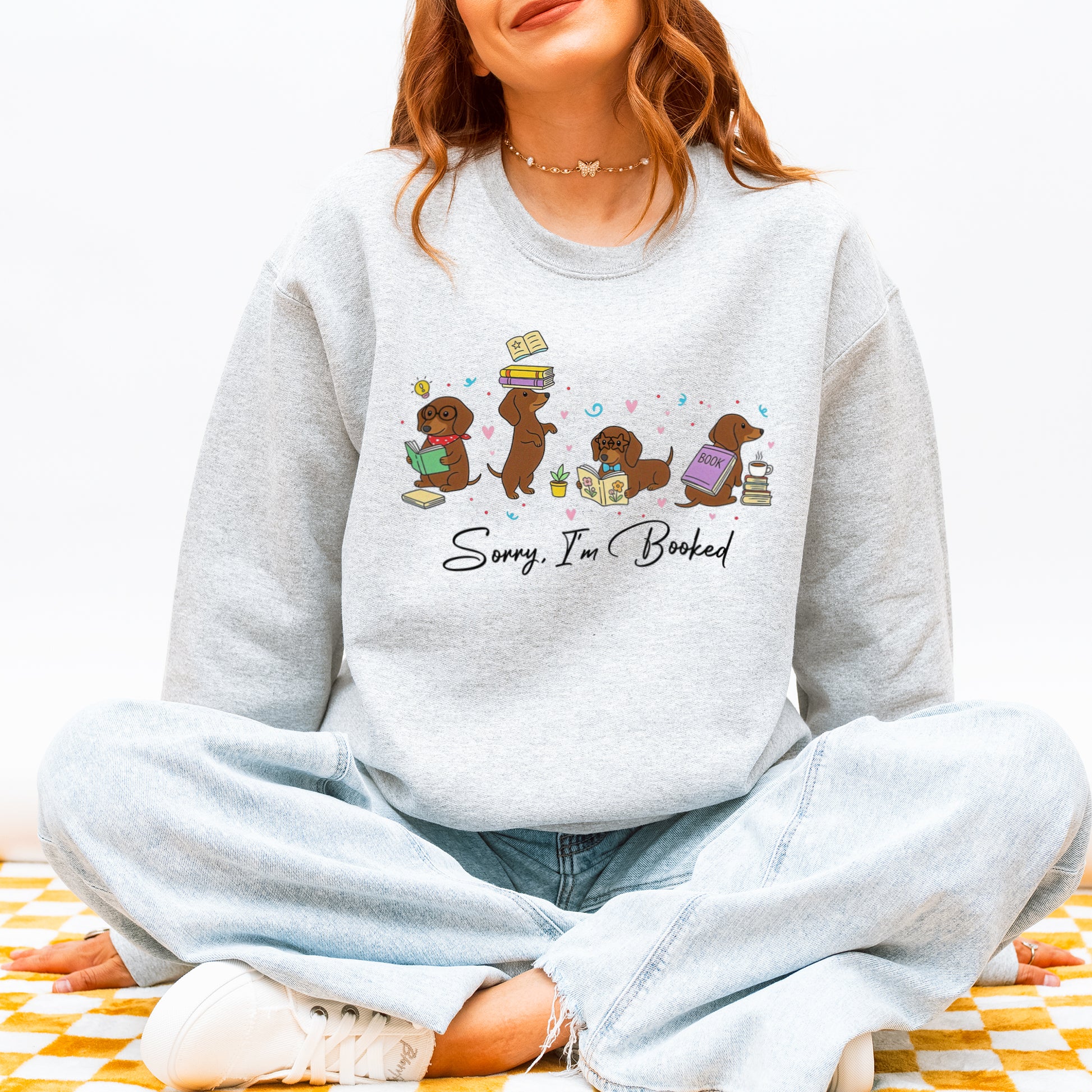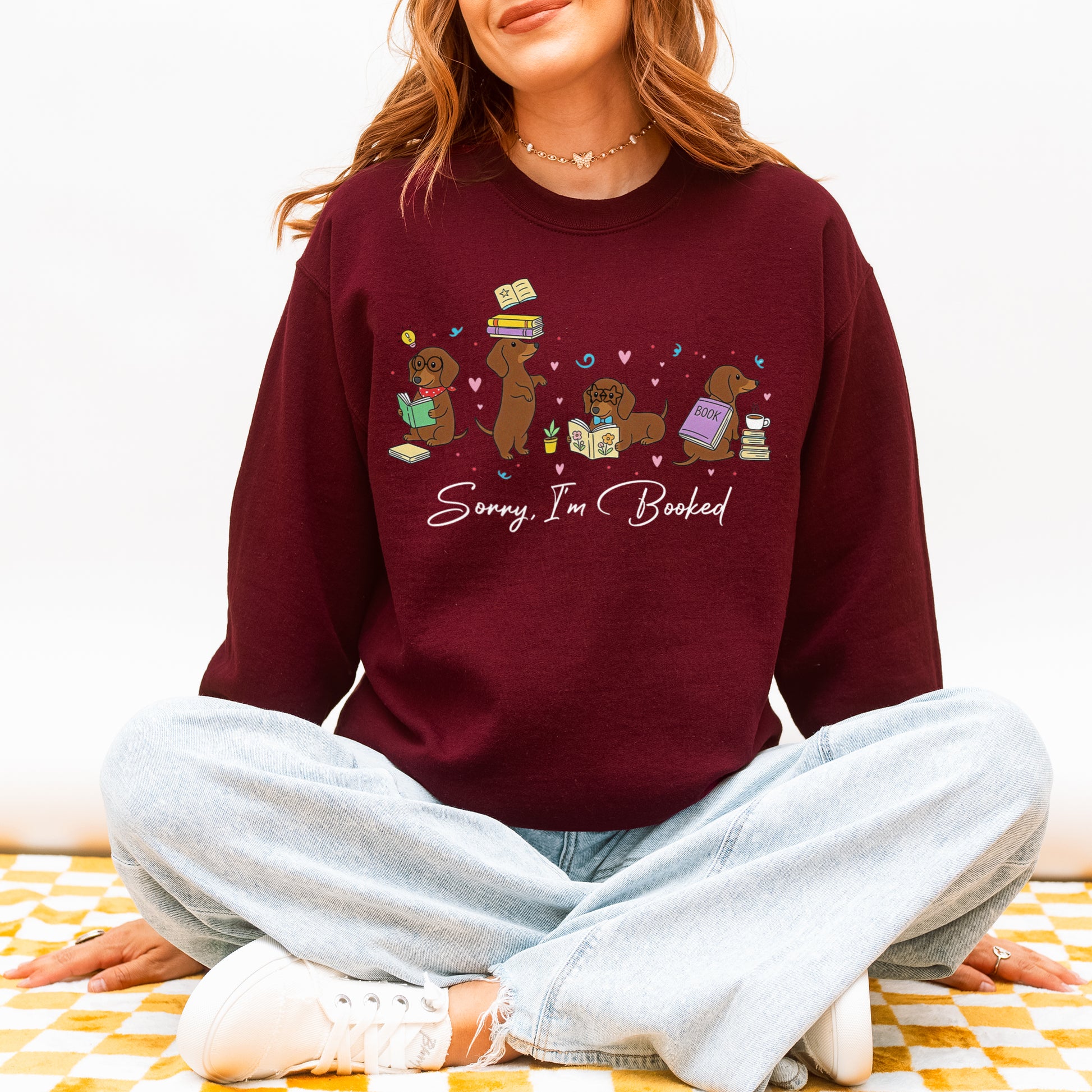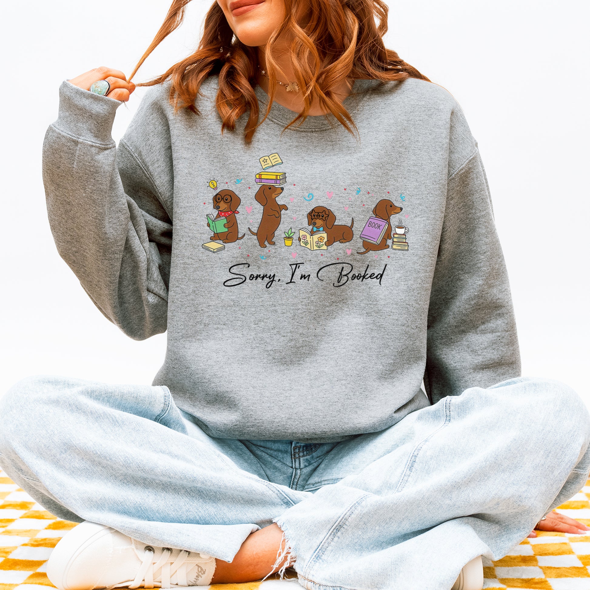 Sorry I’m Booked Dachshund Sweatshirt – Cute Reading Wiener Dog Sweatshirt for Book Lovers