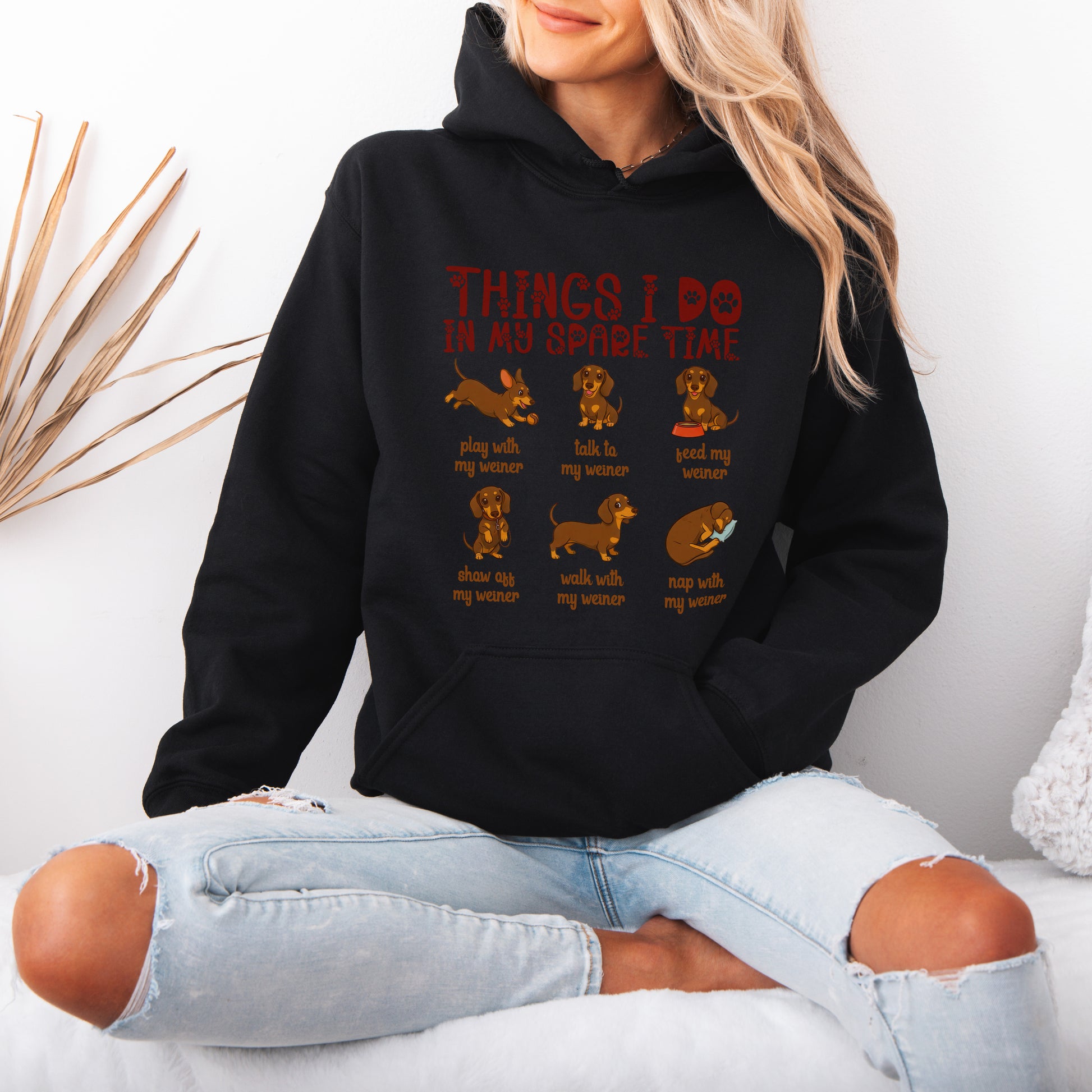 Things I Do In My Spare Time Dachshund Hoodie – Cute Wiener Dog Hoodie for Doxie Lovers