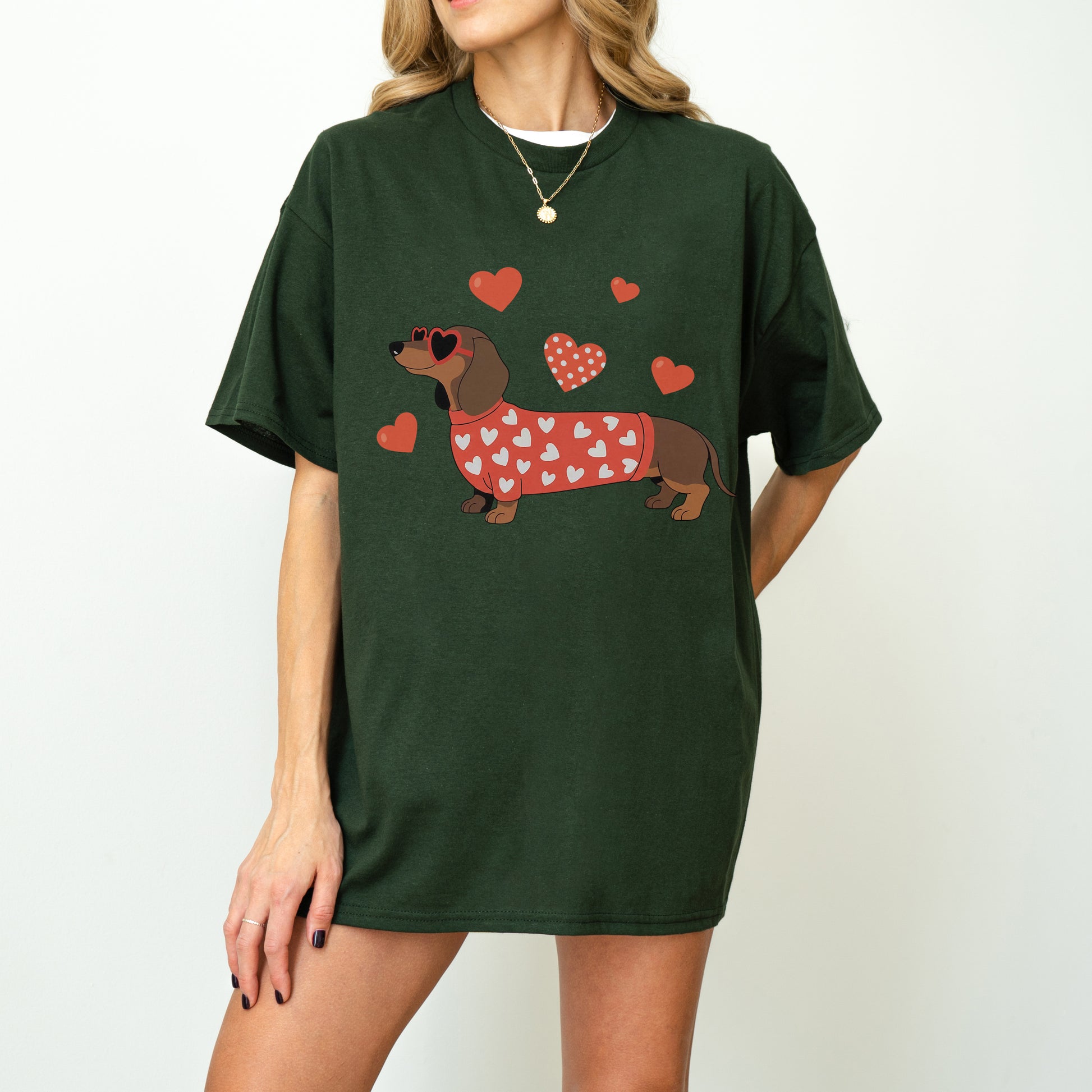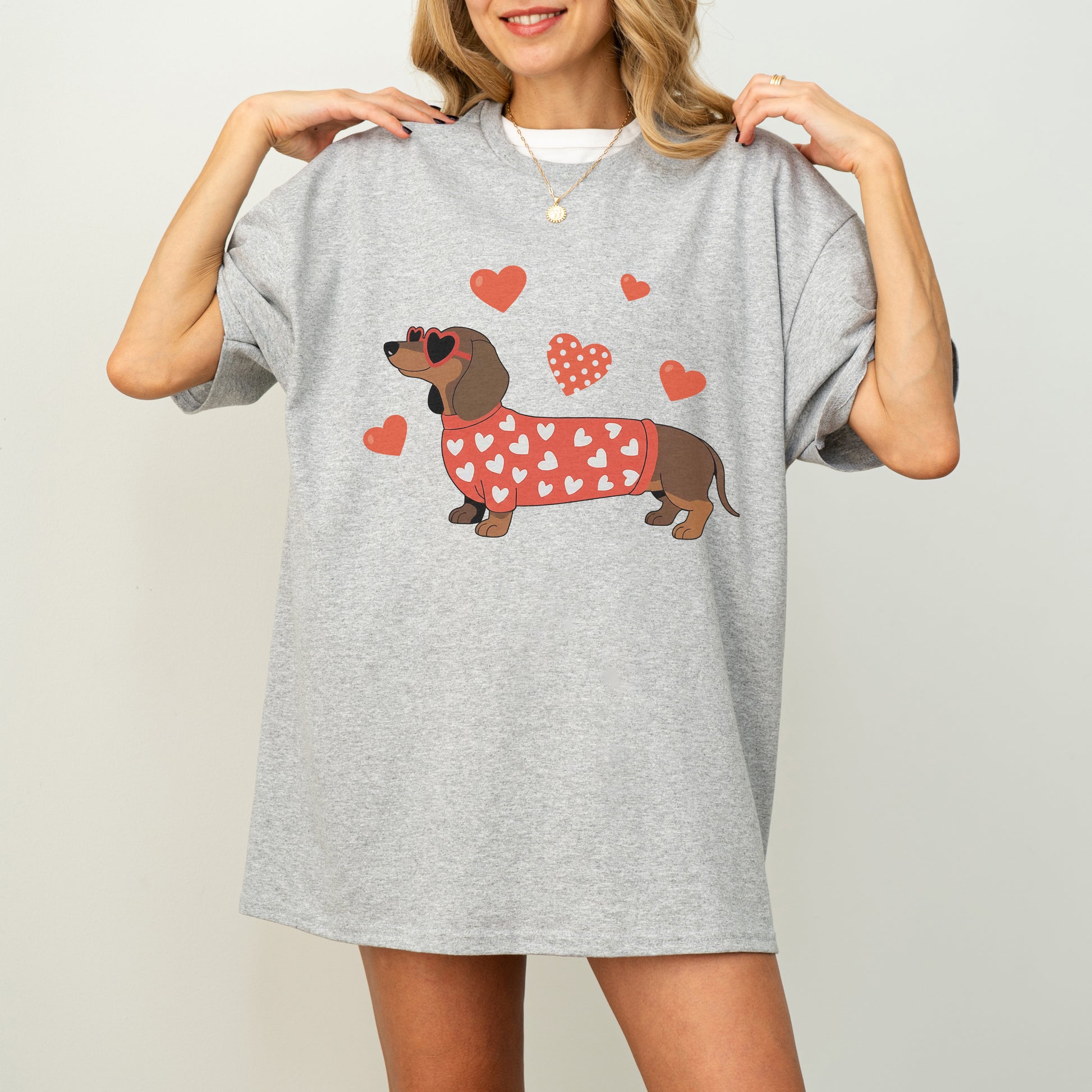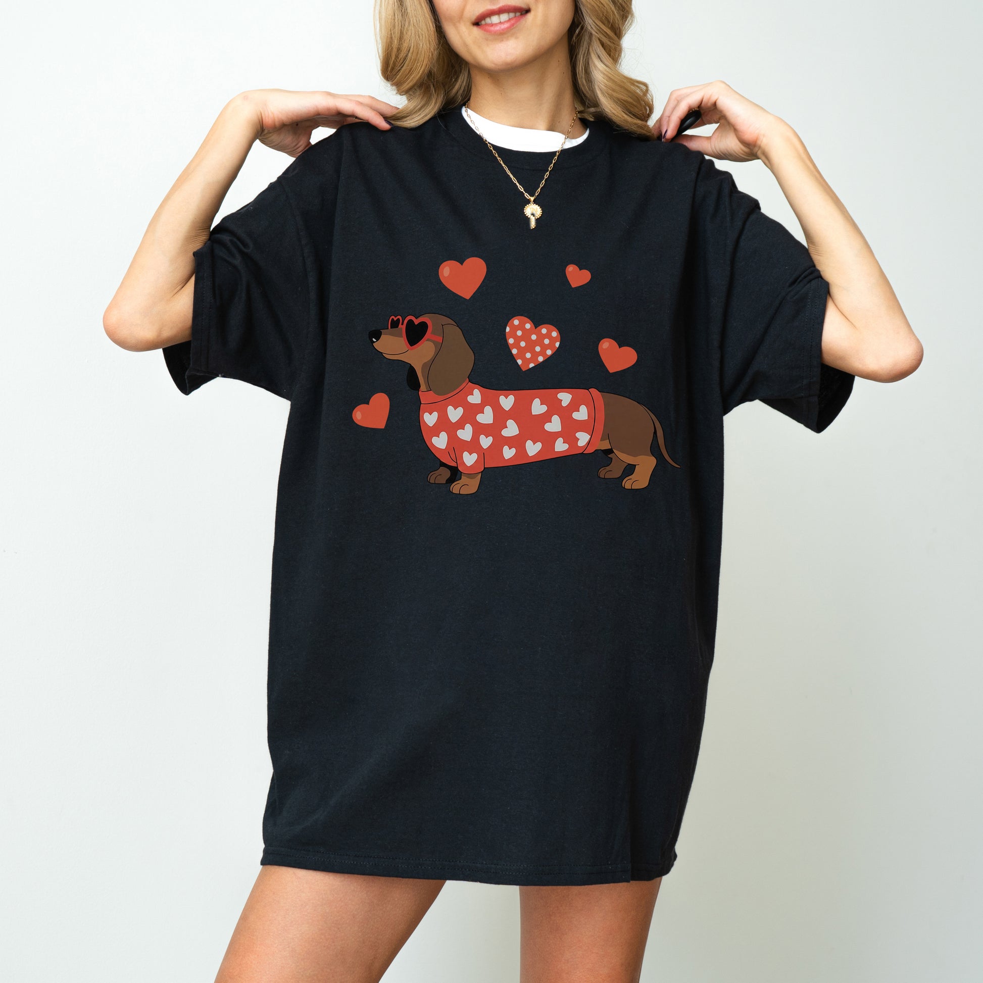 Valentine Dachshund Love Shirt – Cute Wiener Dog Heart Sweater Tee for Dog Moms, Doxie Lover Gift