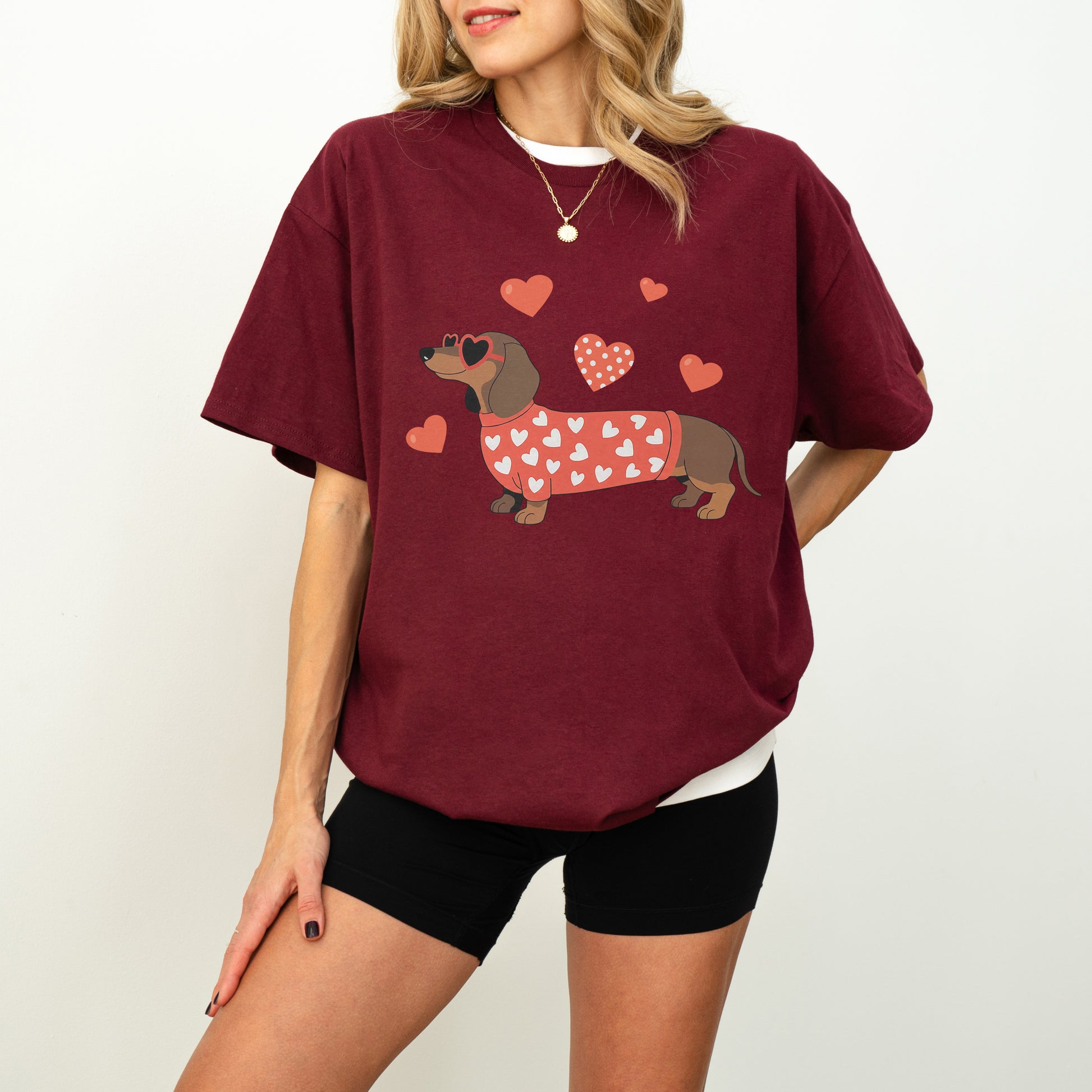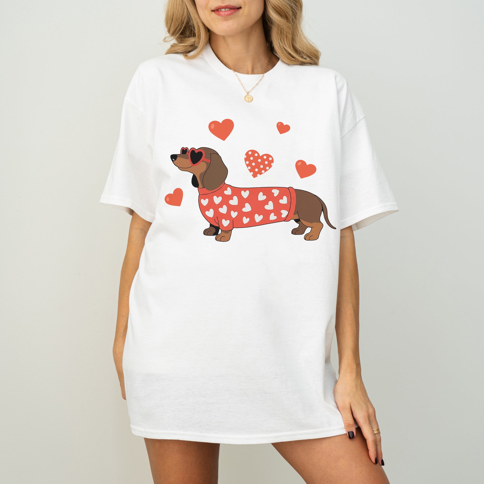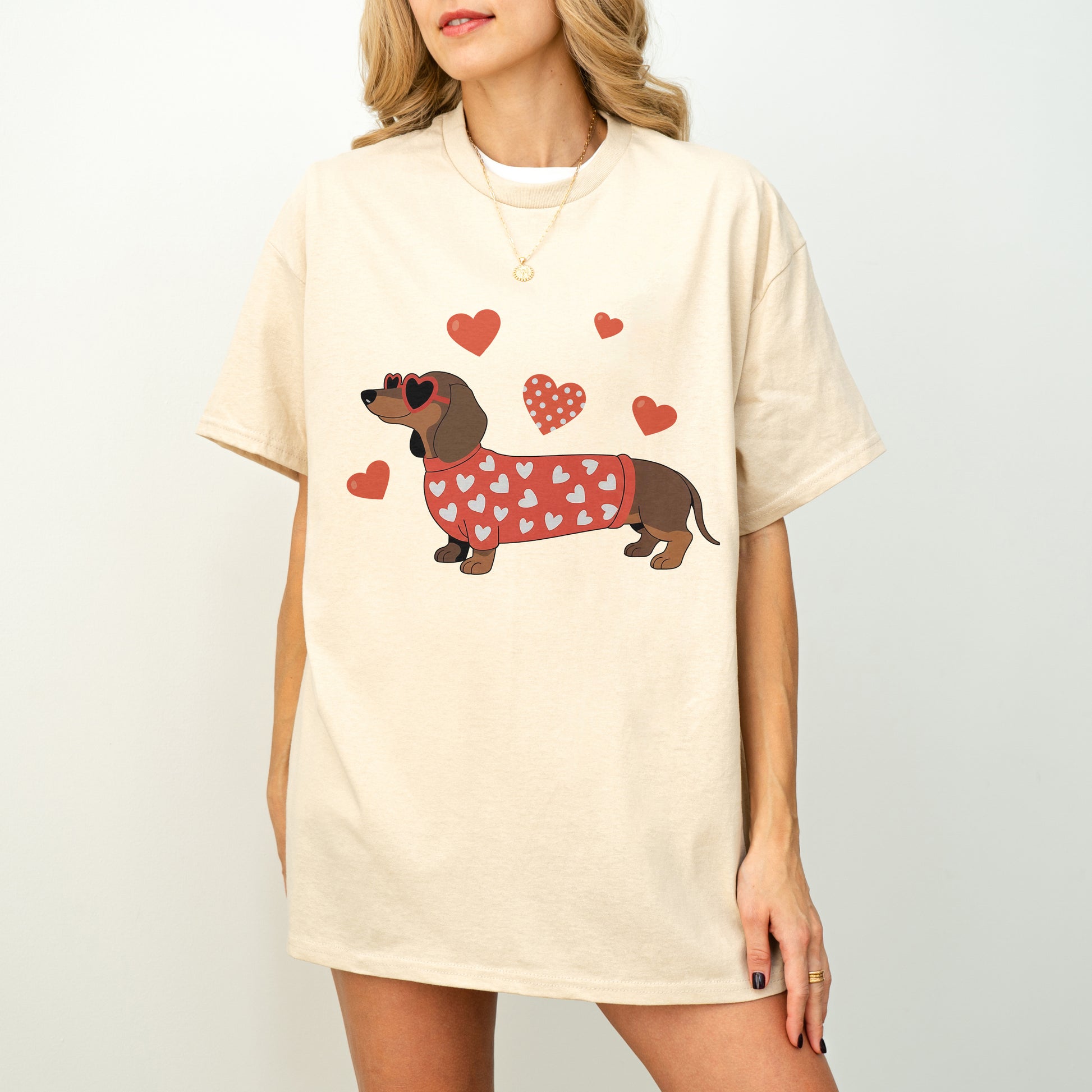 Valentine Dachshund Love Shirt – Cute Wiener Dog Heart Sweater Tee for Dog Moms, Doxie Lover Gift