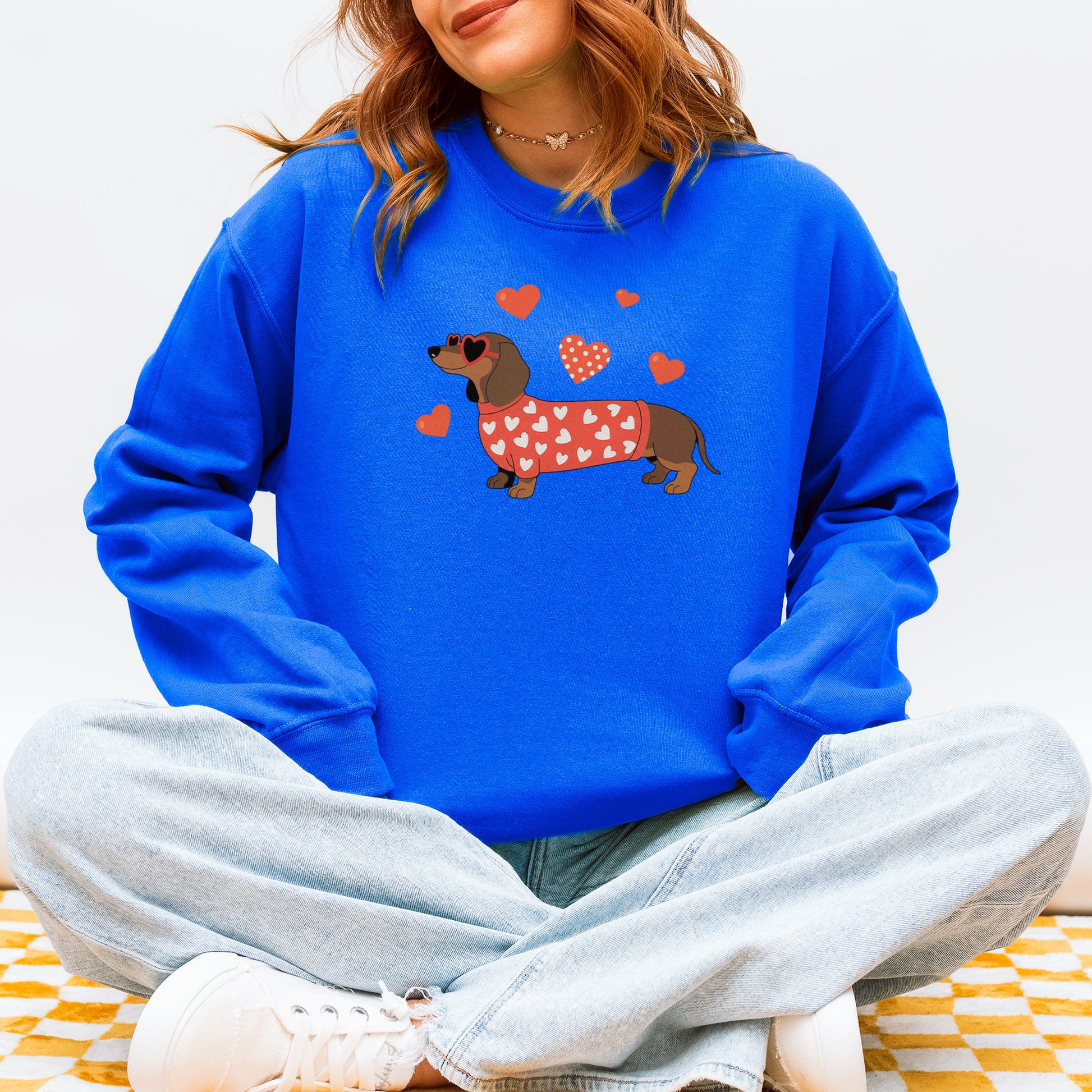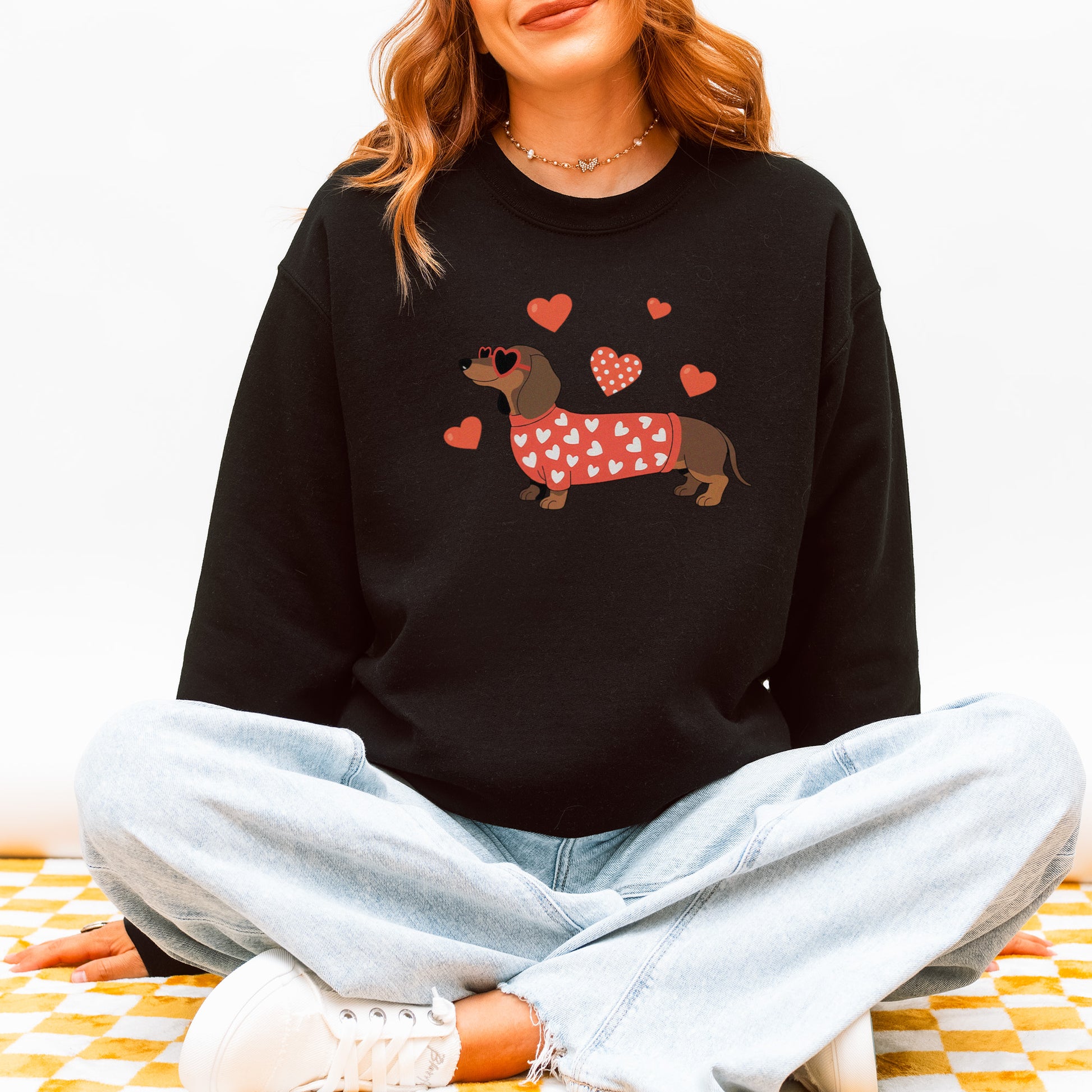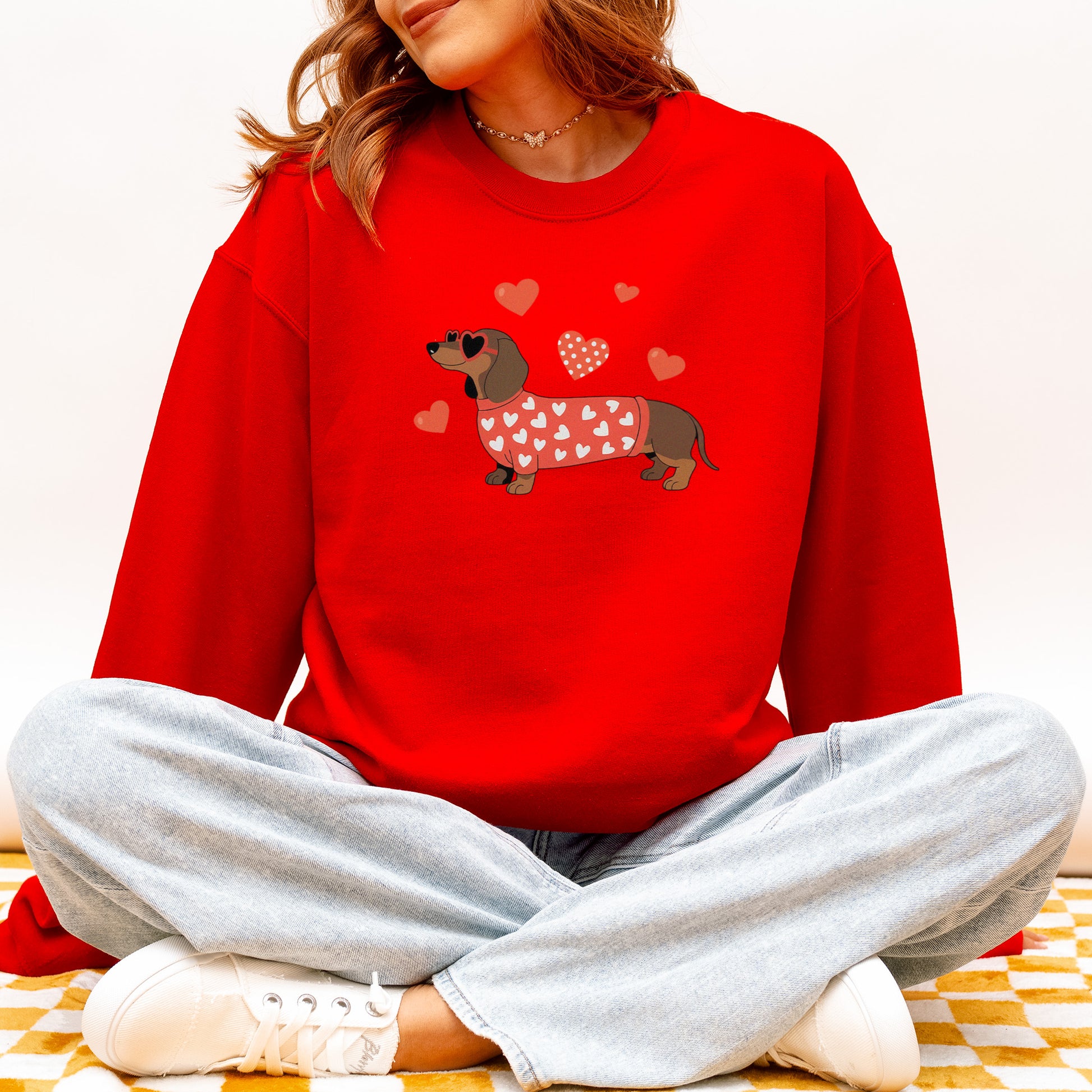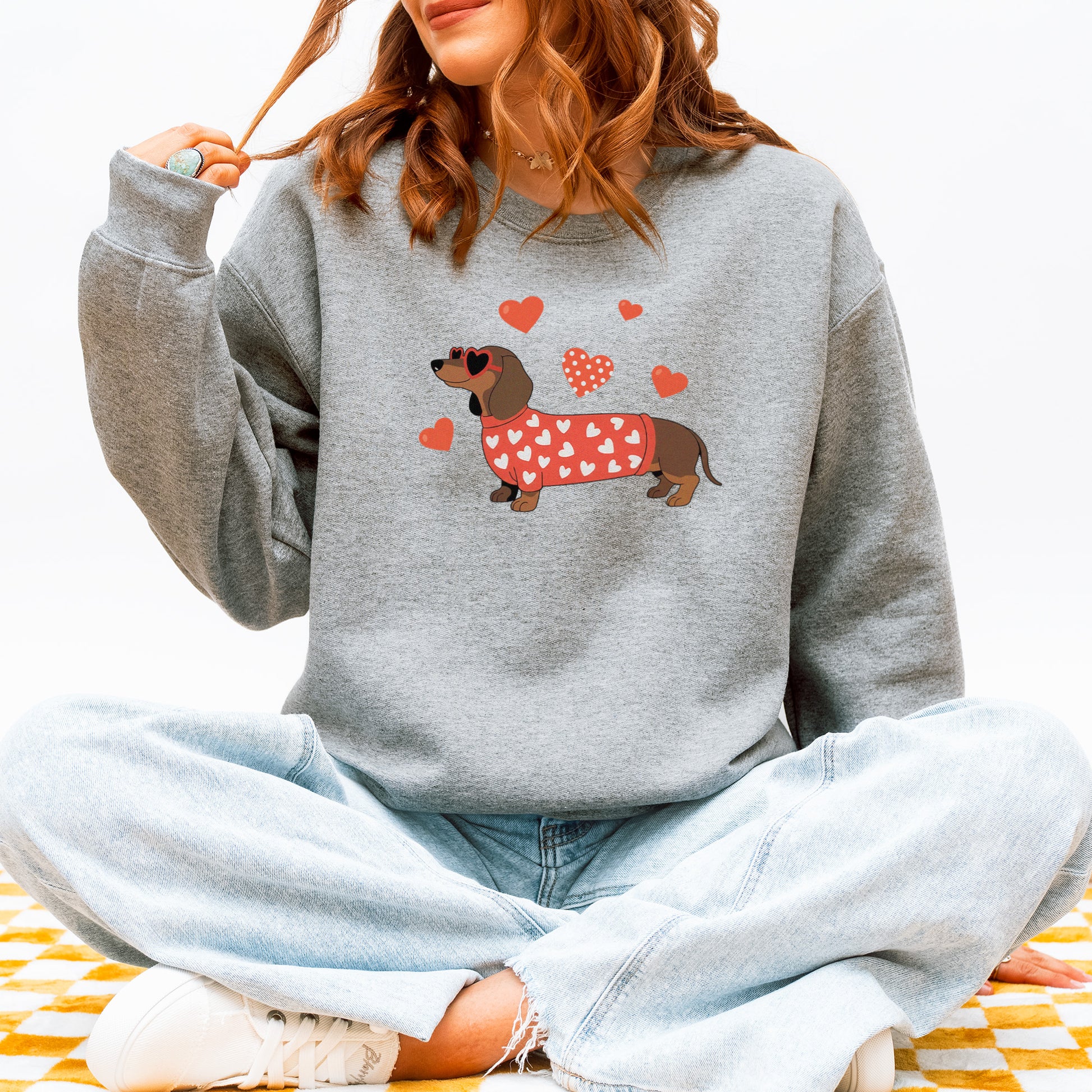 Valentine Dachshund Love Sweatshirt – Cute Wiener Dog Heart Sweater Pullover for Dog Moms, Doxie Lover Gift