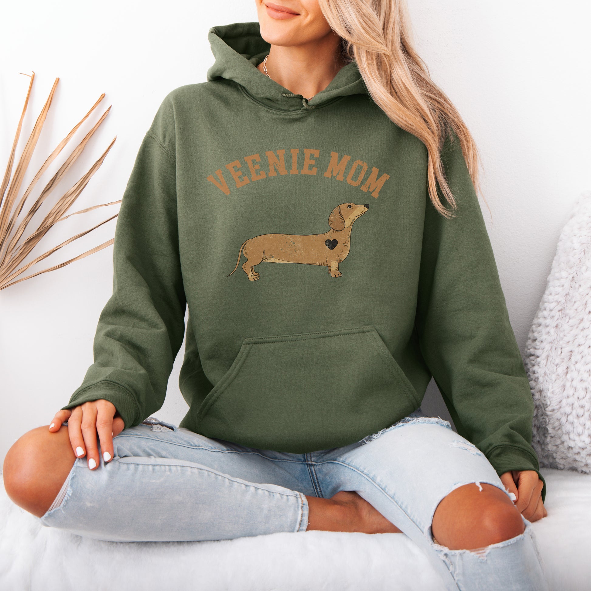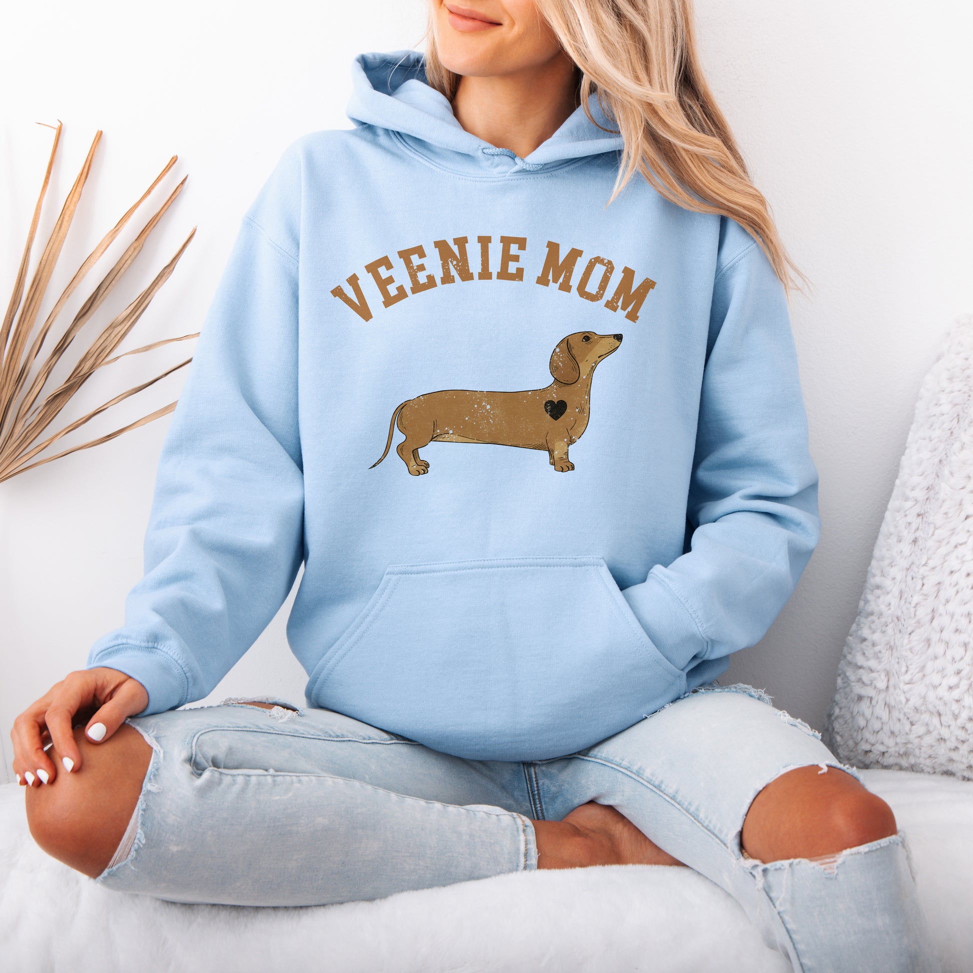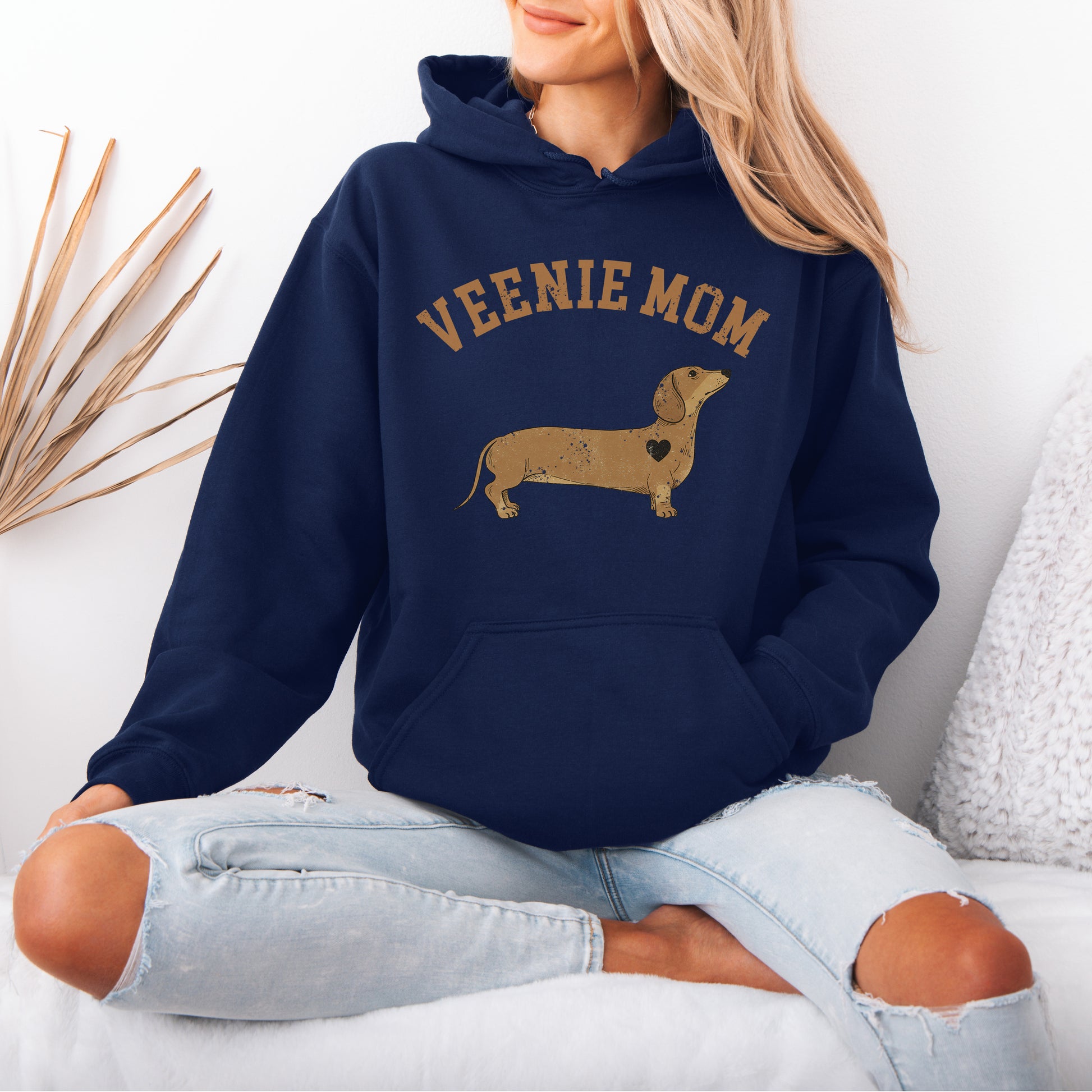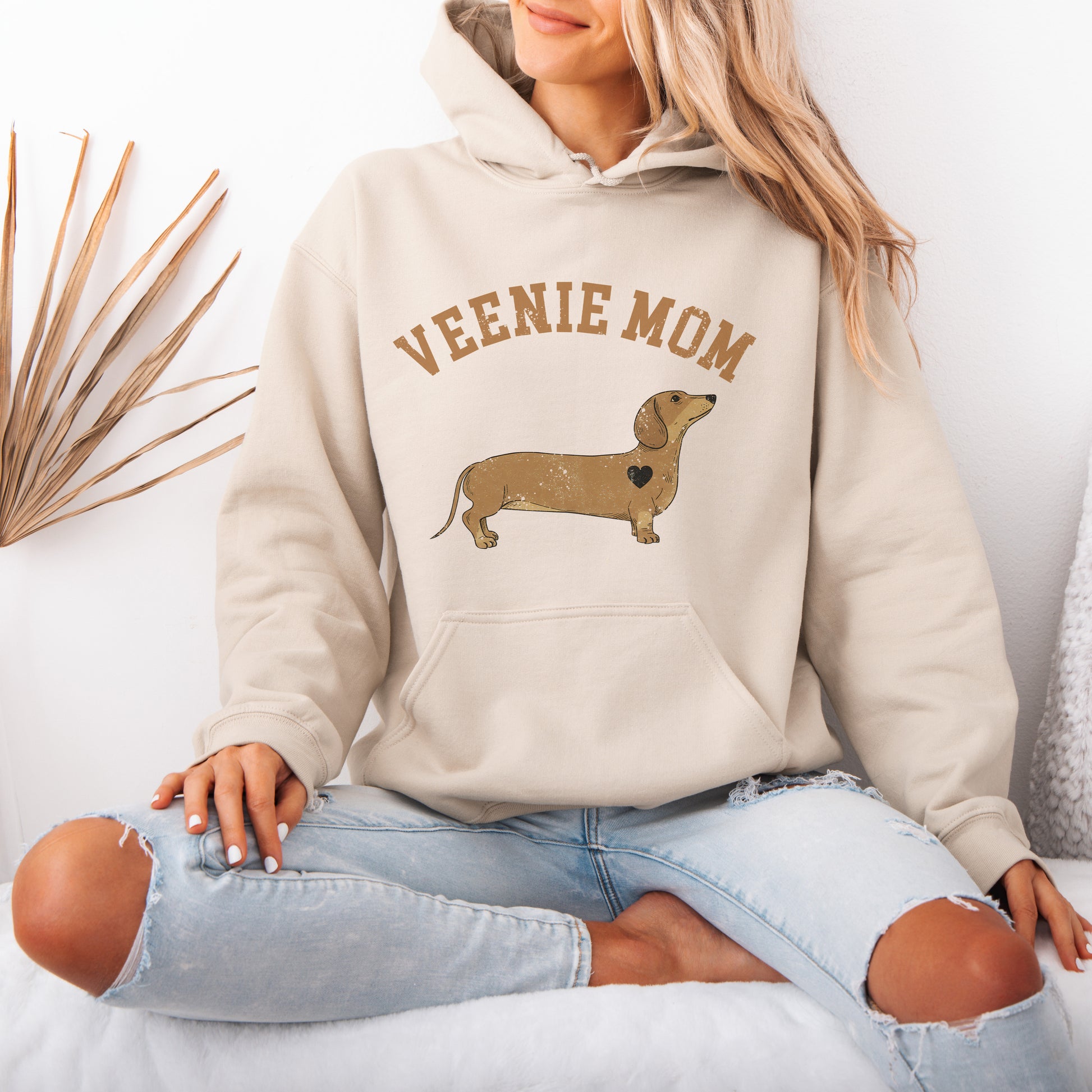 Veenie Mom Dachshund Mom Hoodie – Cute Wiener Dog Hooded Sweatshirt for Dog Moms, Pet Lover Gift