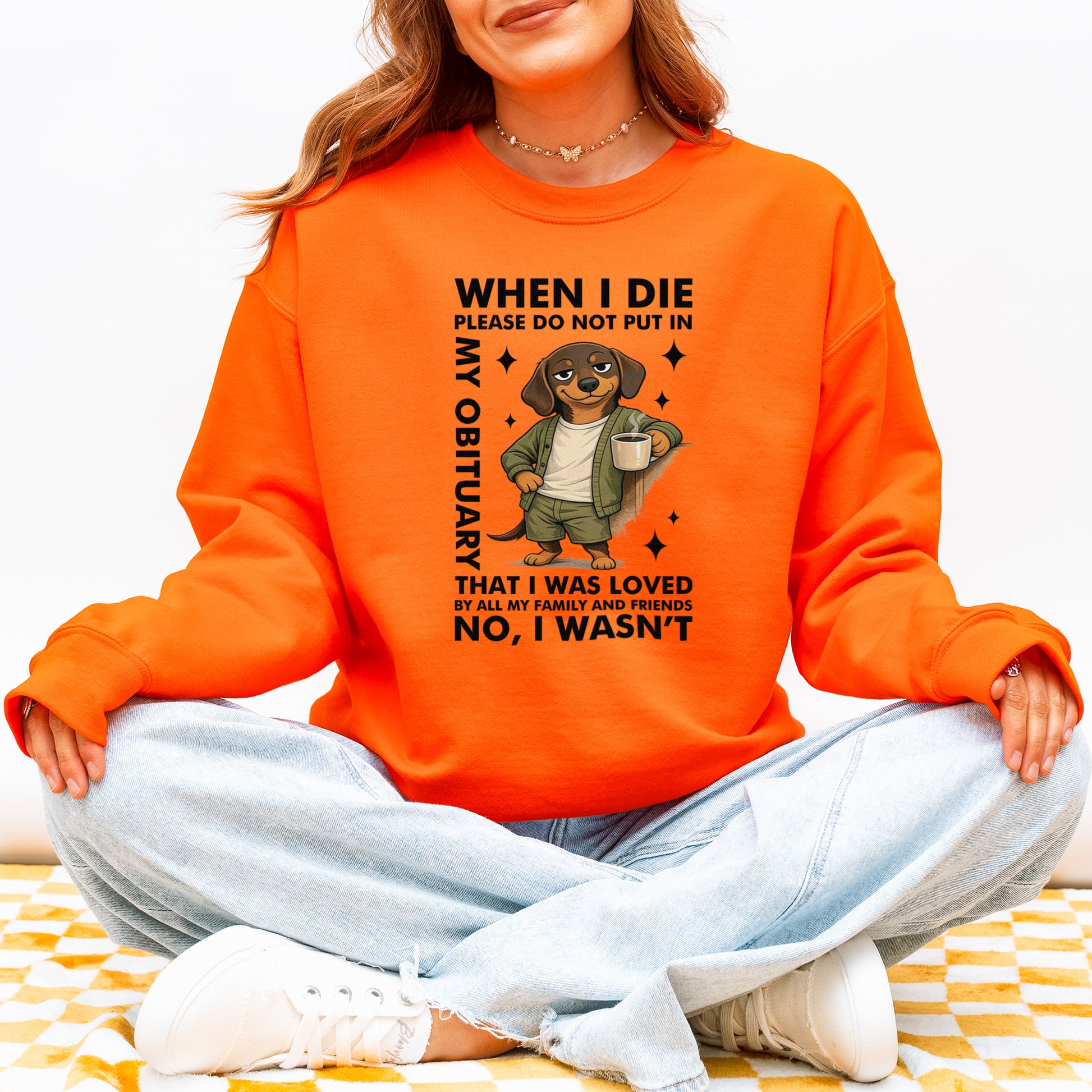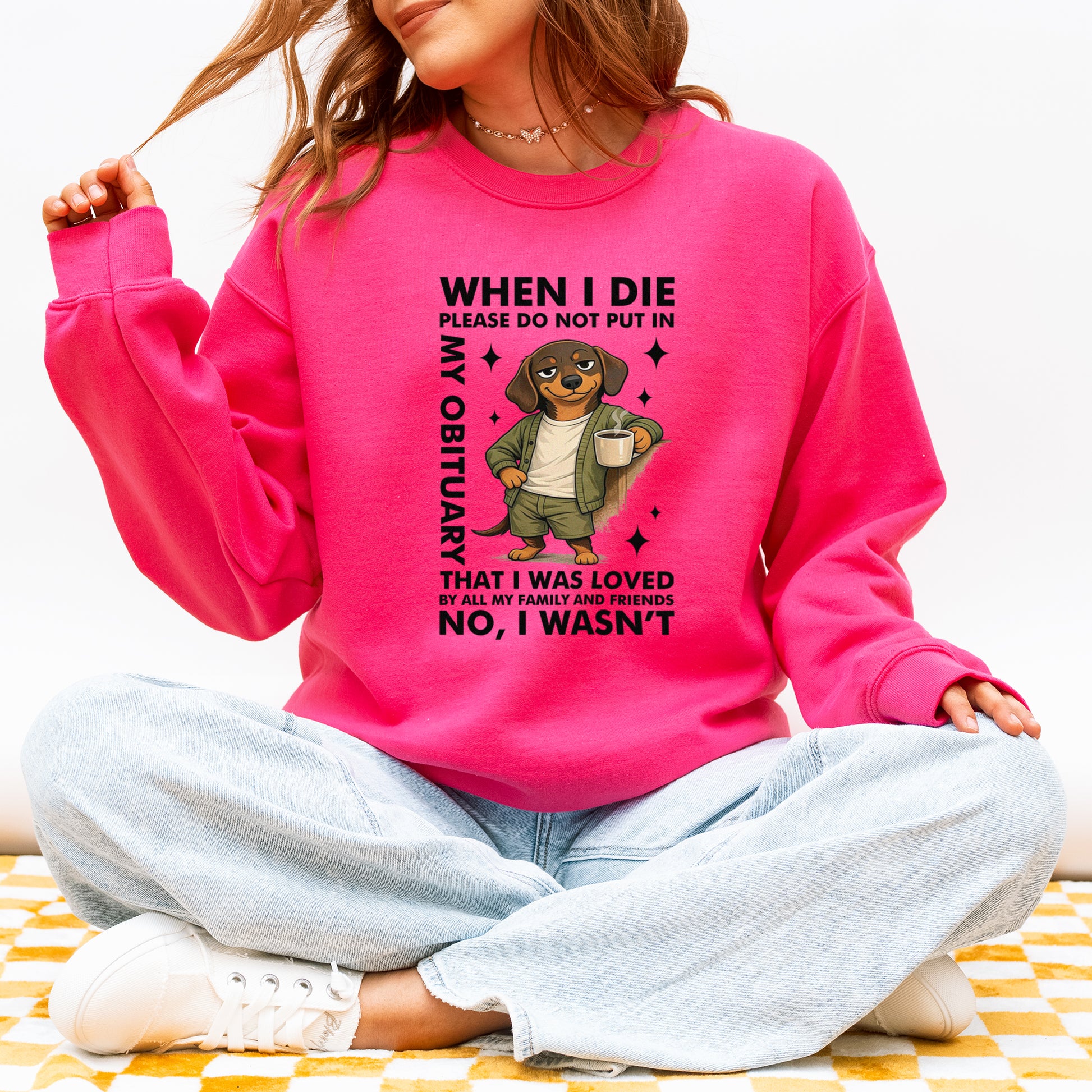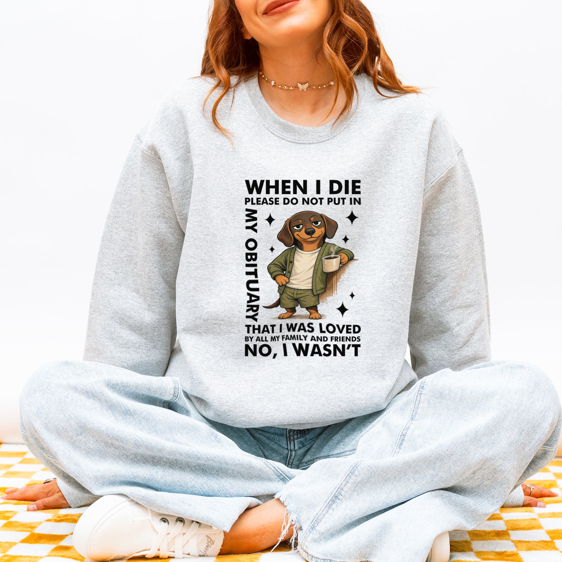 When I Die Dachshund Sweatshirt – Funny Dog Lover Sarcastic Humor